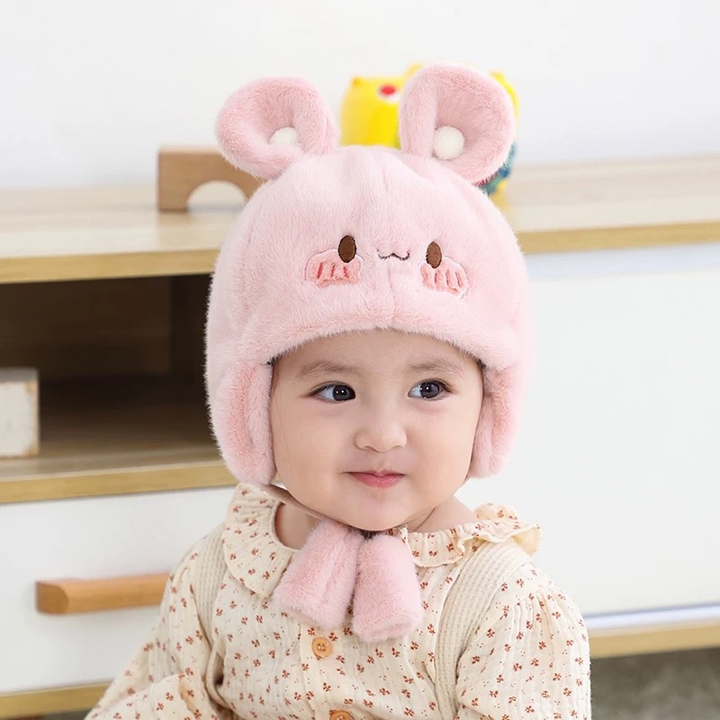 婴儿帽子秋冬毛绒加厚护耳帽韩版新款3-12个月可爱超萌宝宝保暖帽