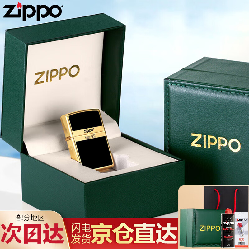 ZIPPO 打火机 美国之宝防风煤油商标起源 珍藏 生日礼物送男友 常规版商标起源黑(高档绿色盒+礼袋+133ml油+火石)Y