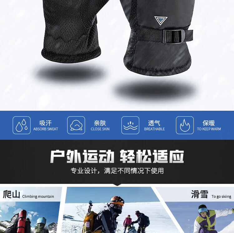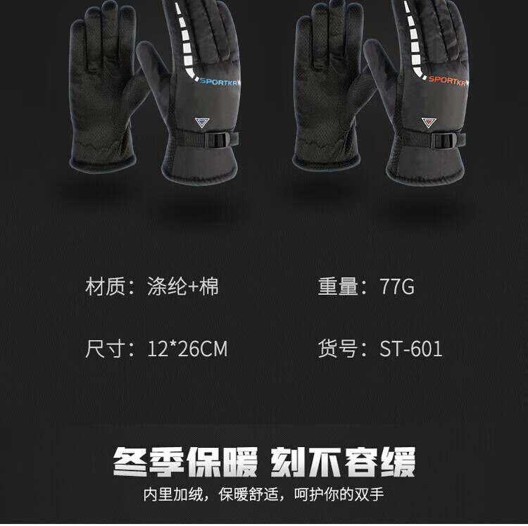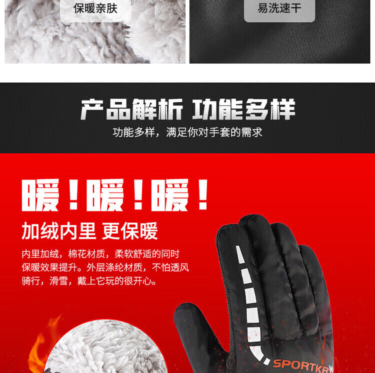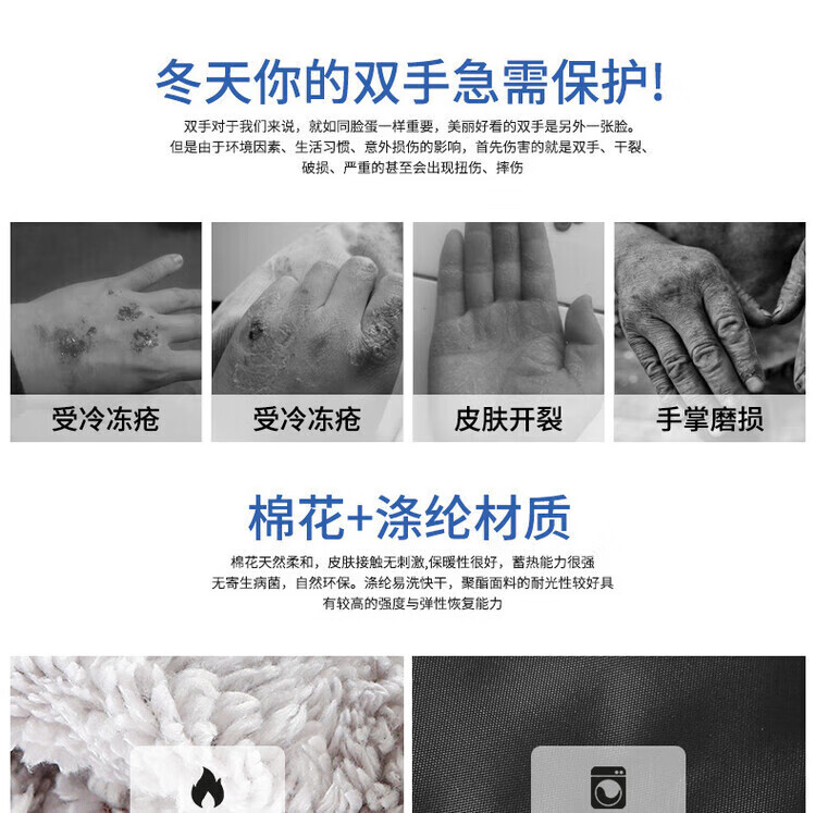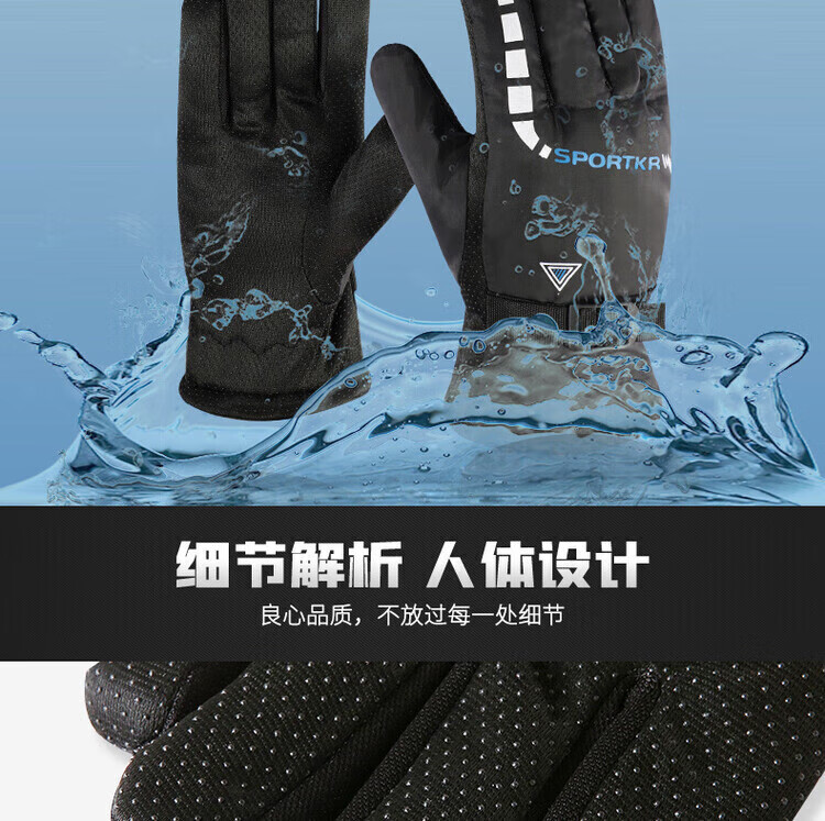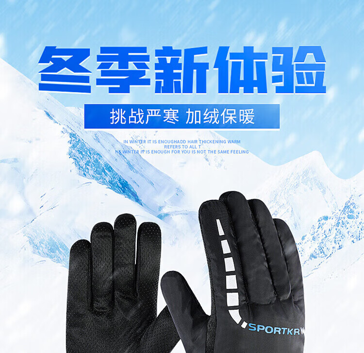 简尚恩骑车手套男冬季加绒加厚防风保暖环卫工人户外滑雪棉手套JTT (蓝色字母款)加厚手套 均码(布料升级)