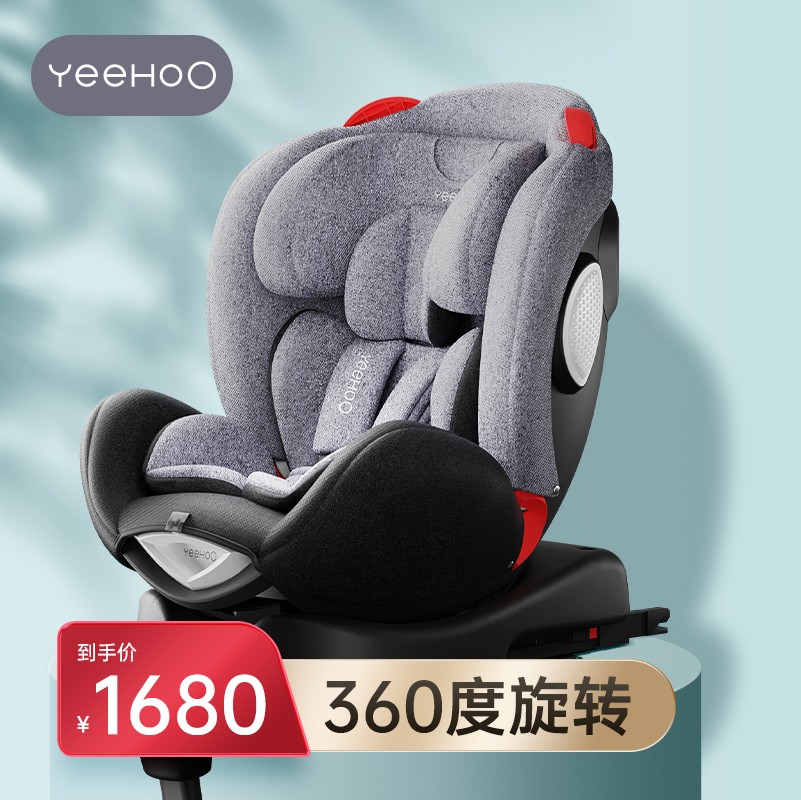 英氏(YEEHOO)婴儿汽车安全座椅宝宝可坐可躺360度旋转座椅车载通用儿童0-7岁 儿童安全座椅(芭比粉)