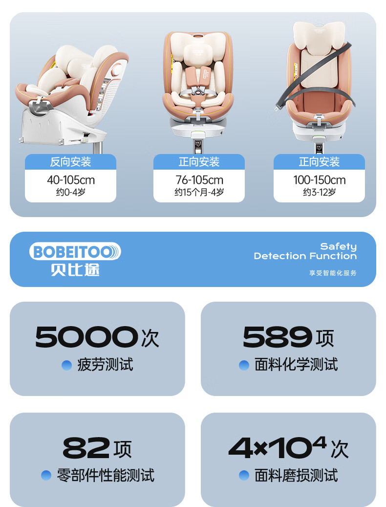 贝比途(BOBEITOO)贝畅儿童安全座椅汽车用0-12岁婴儿宝宝车载可坐可躺i-Size认证 旗舰灰【通风加热+一体注塑】