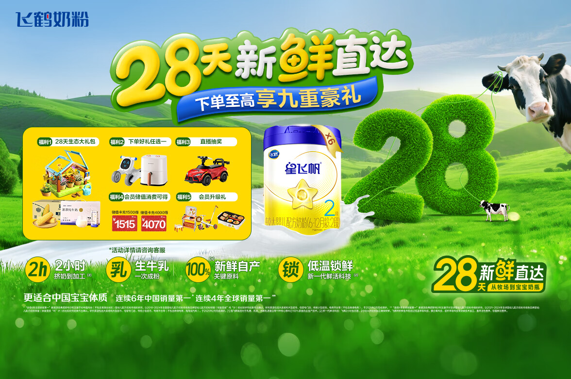 飞鹤星飞帆 婴幼儿奶粉2段(6-12个月) 700g*6【28天新鲜直达】 5HMOs