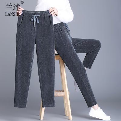 长裤/九分 初春穿搭春款雪尼尔高腰显瘦小脚裤宽松休闲女士哈伦裤