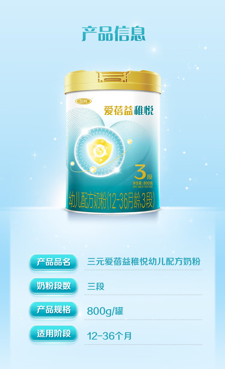 三元【A2奶源】爱蓓益稚悦幼儿配方奶粉3段(12-36月)800g/乳铁蛋白