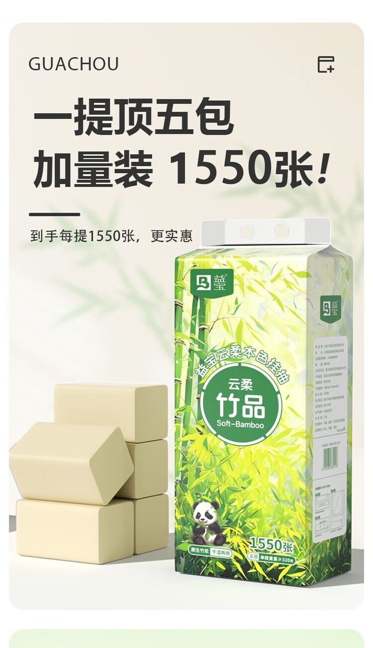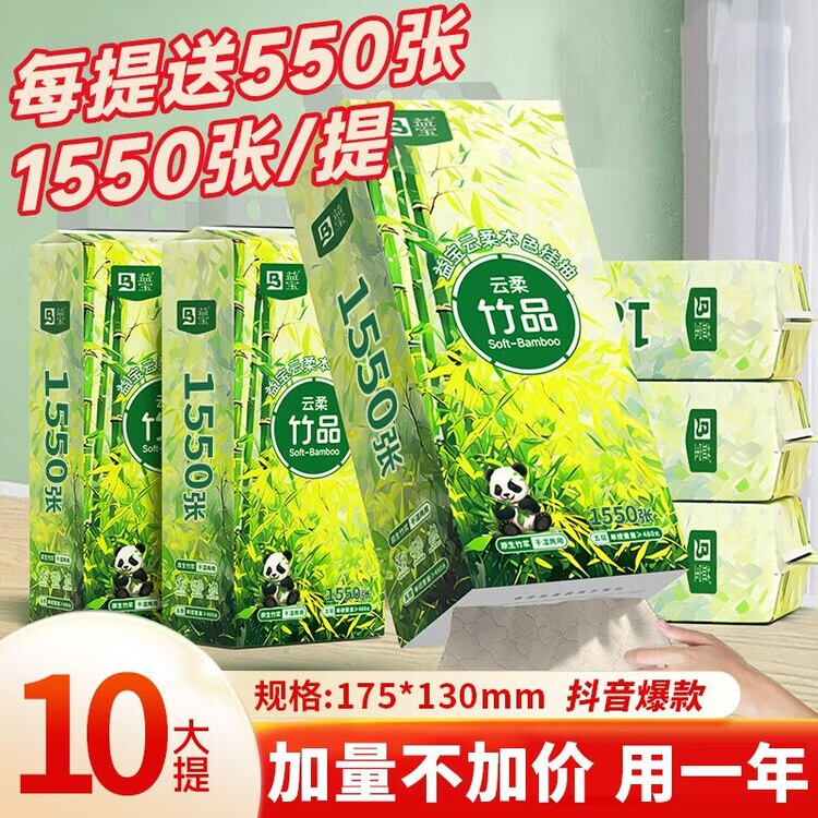益宝【整箱15500张】悬挂式抽纸大包餐巾纸可湿水擦手纸平板卫生纸巾 活动速抢【1550张/提】 5层 310抽*1提 活动【10大提/15500张整箱】送挂钩