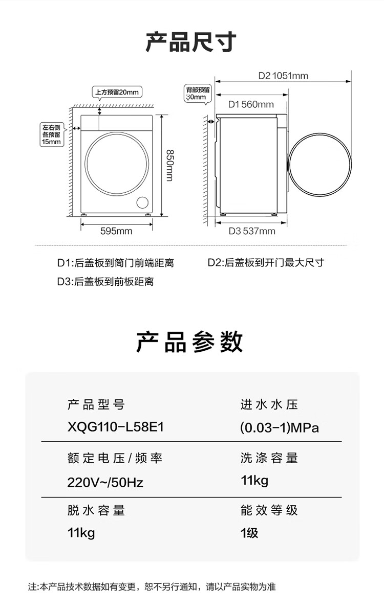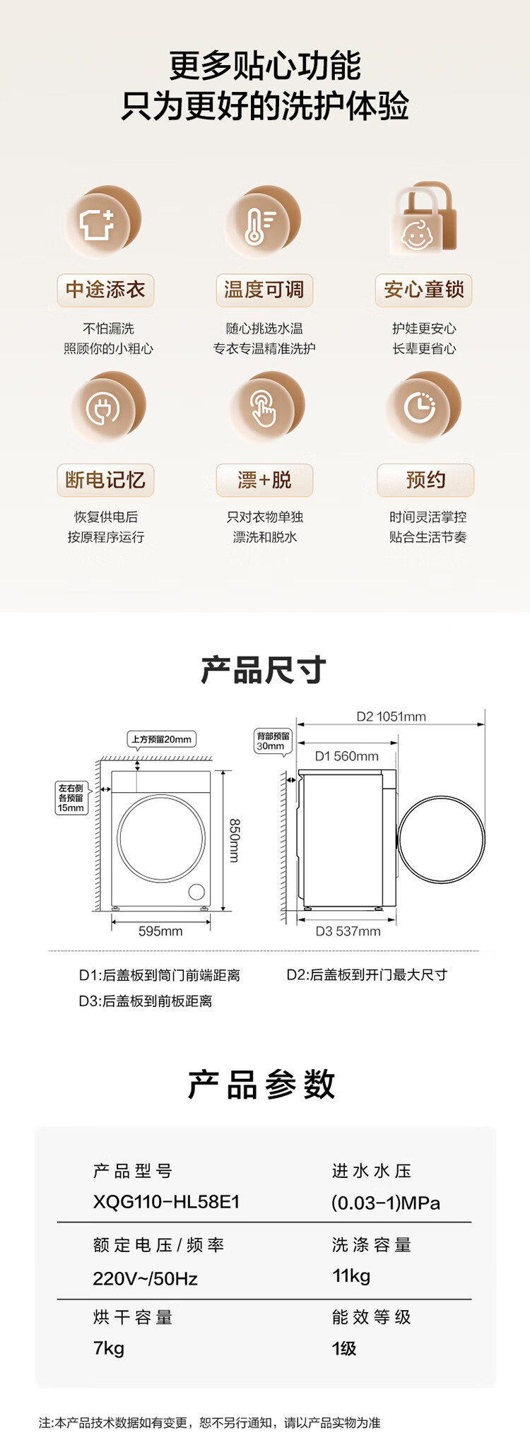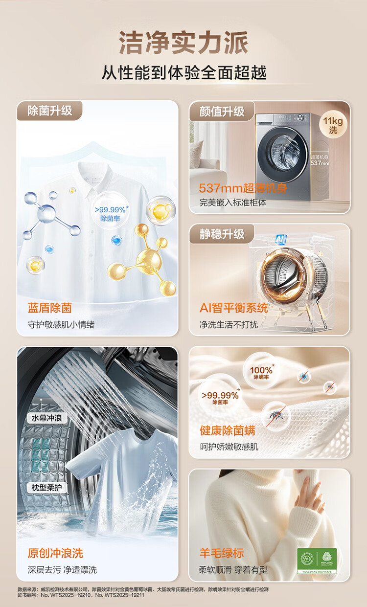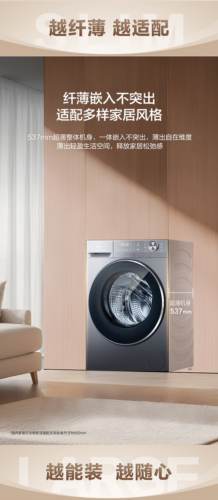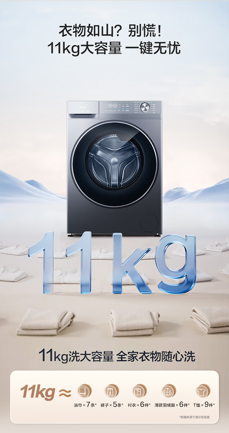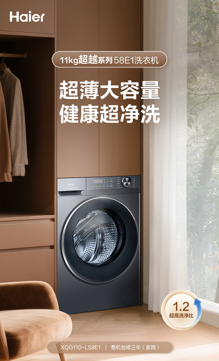 海尔(Haier)超越4.0新品超薄滚筒洗衣机全自动国家补贴11公斤变频带烘干洗烘一体58E1家用一级能效静音大容量 11KG洗烘一体|冲浪洗高净比1.2+羽绒洗空气洗