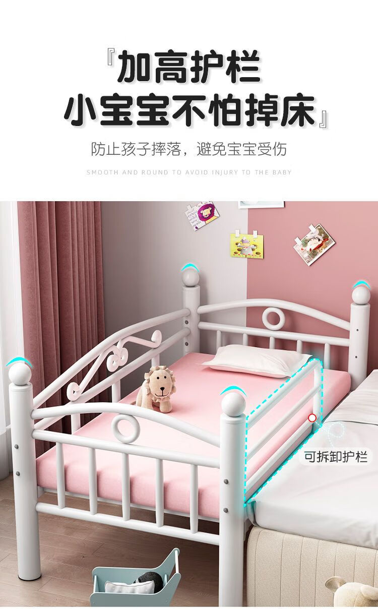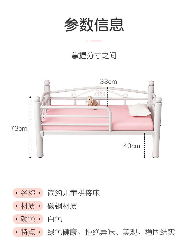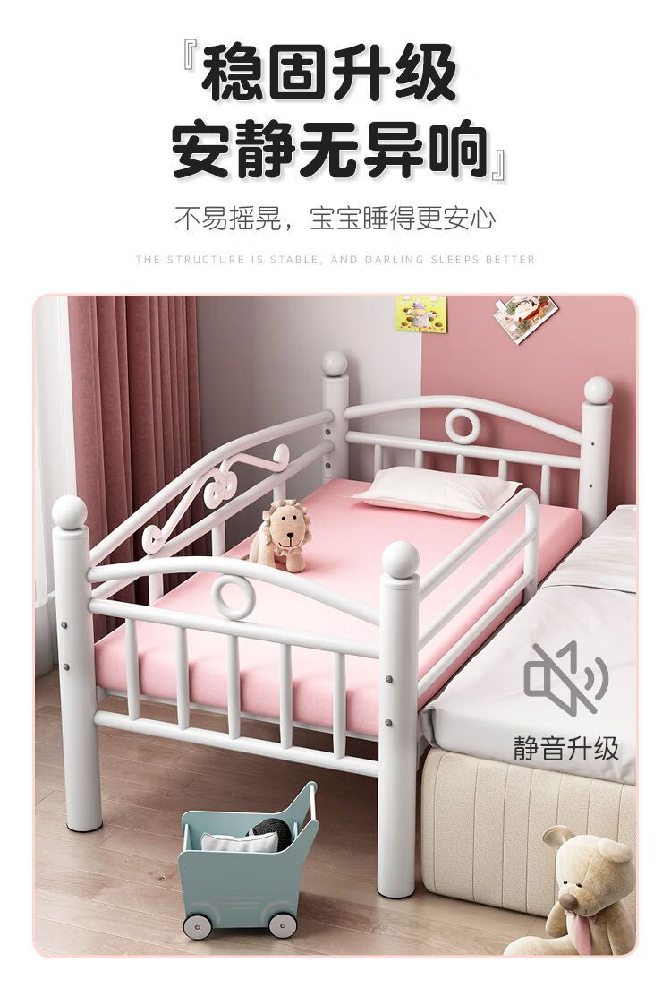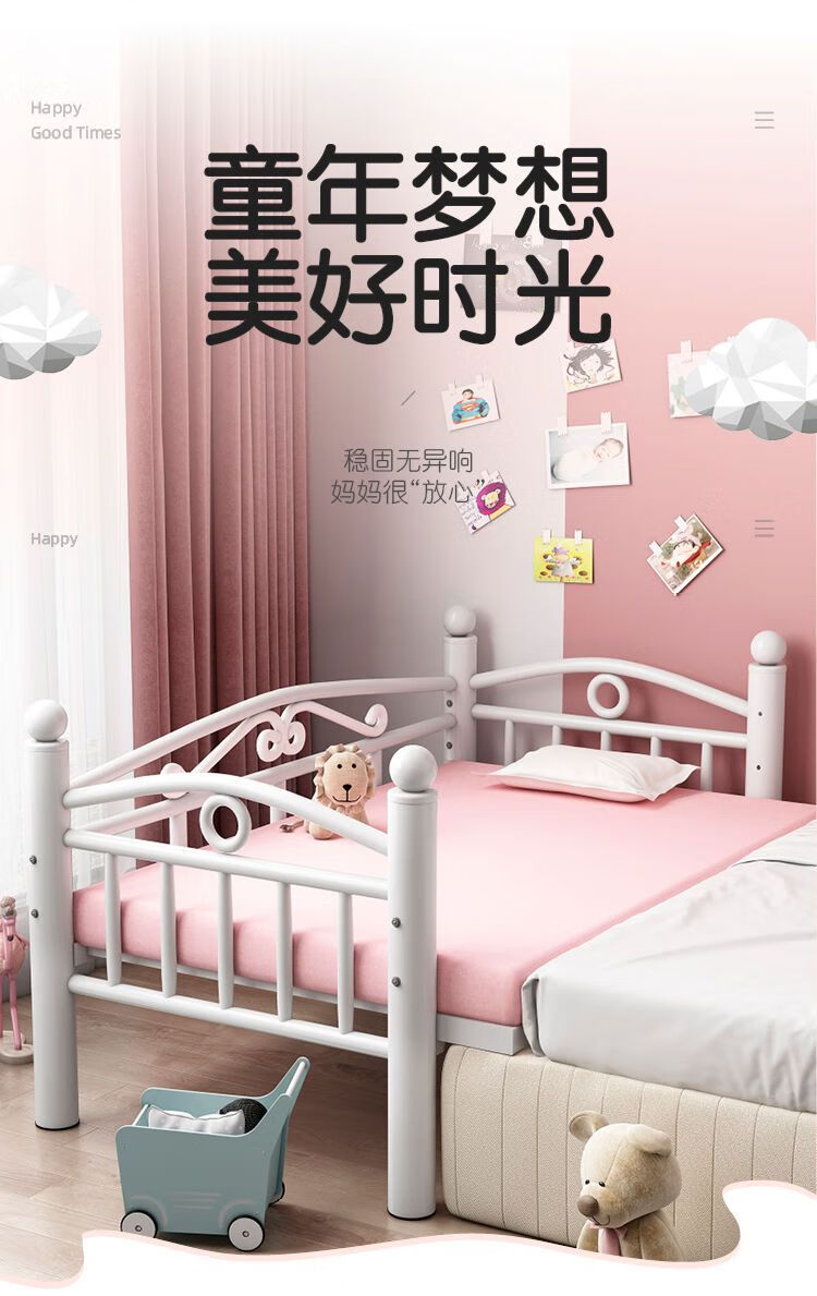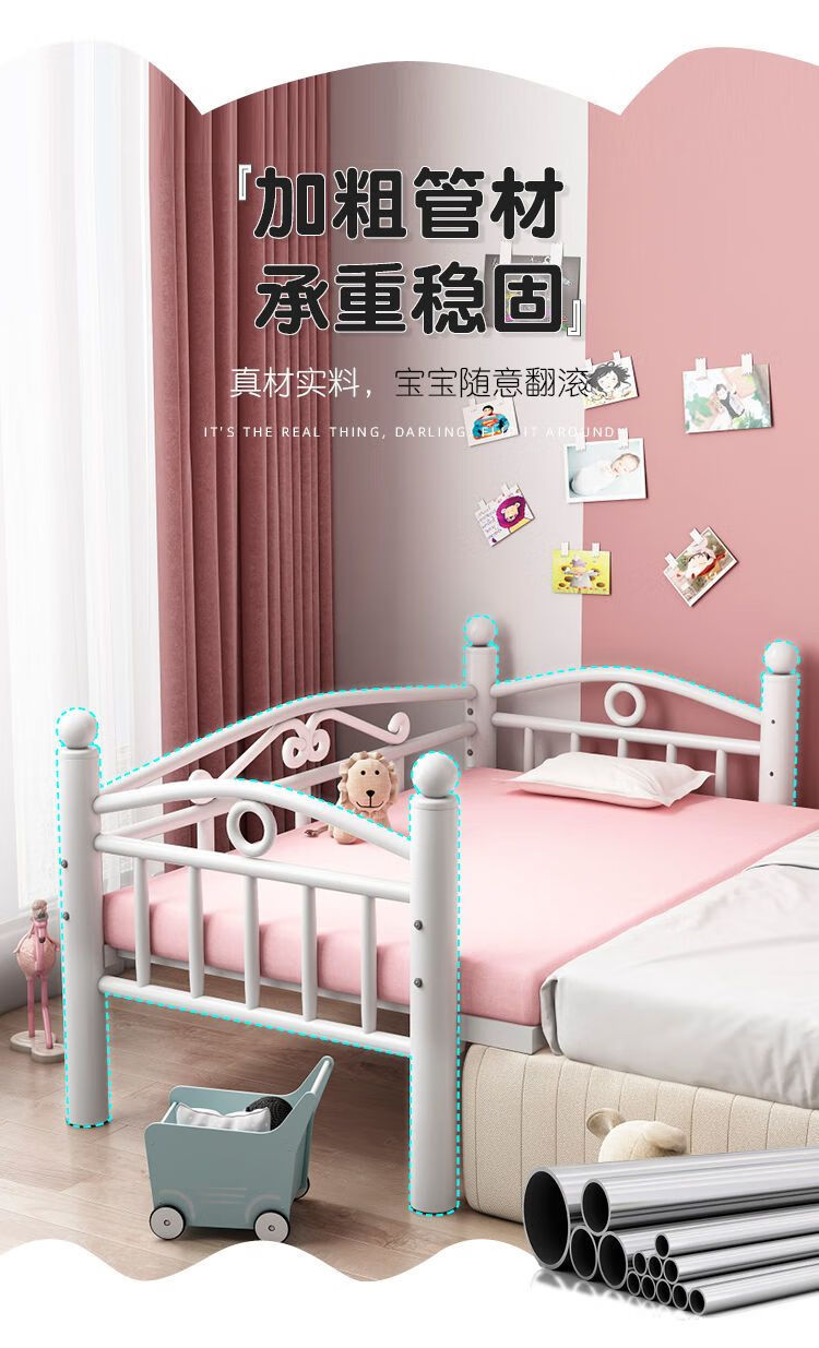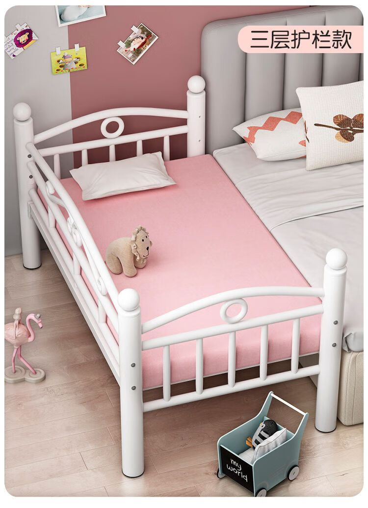 弘星隆铁艺拼接床儿童床带护栏单人婴儿床男孩女孩边床加宽小床公主床 加厚龙骨三面护栏(裸床) 120*60