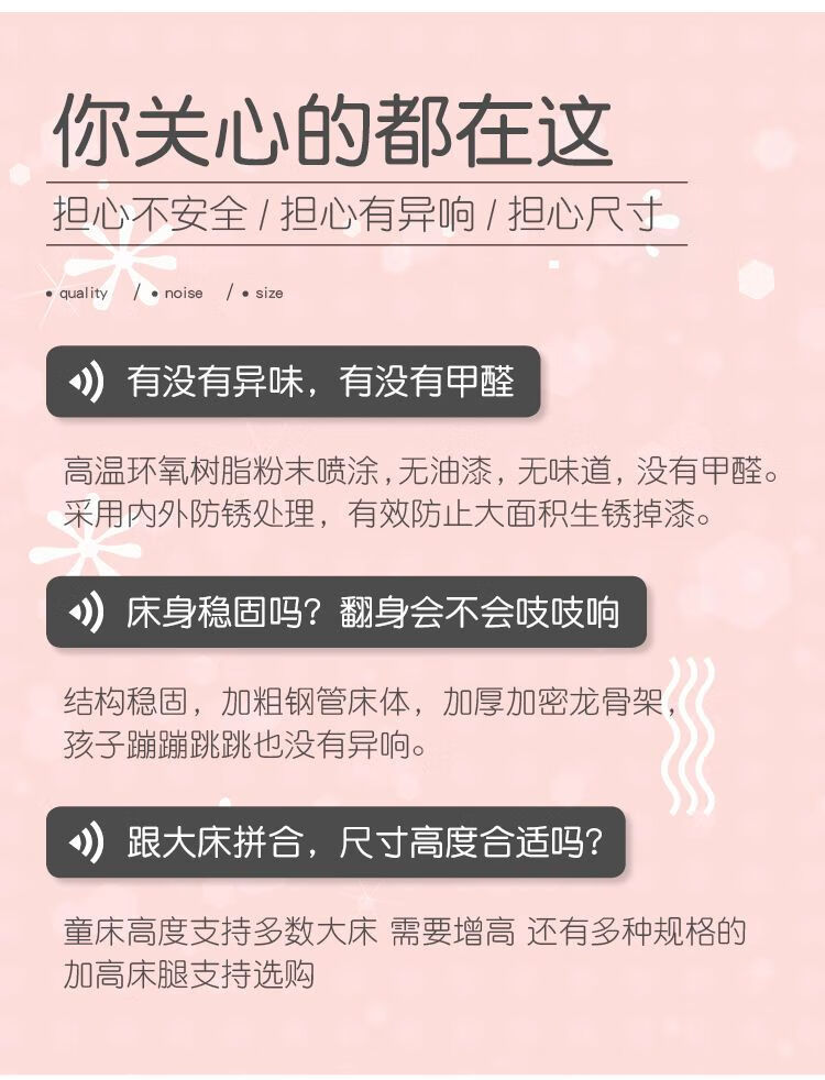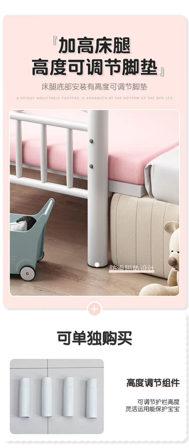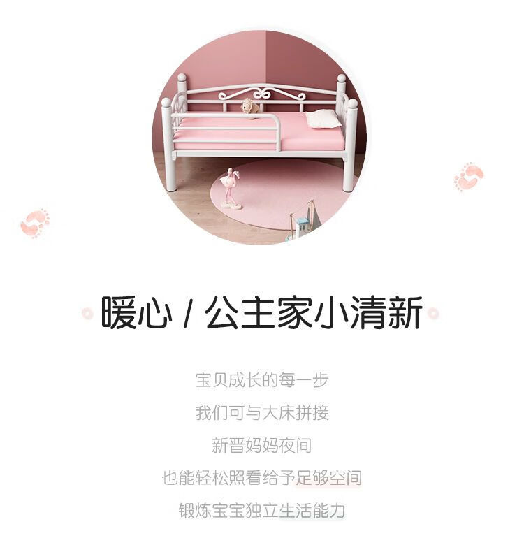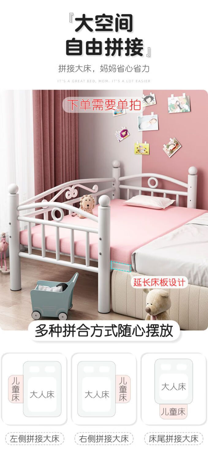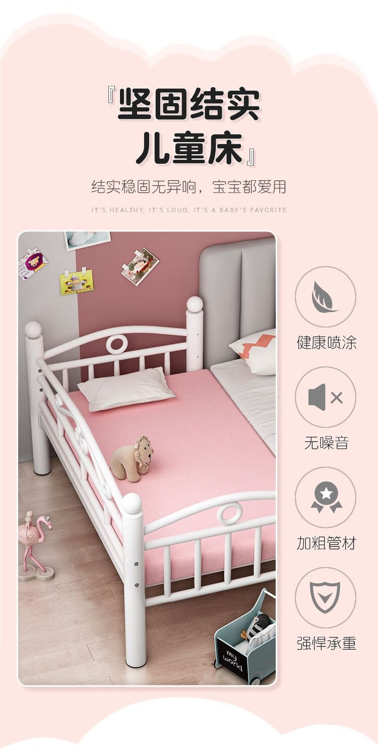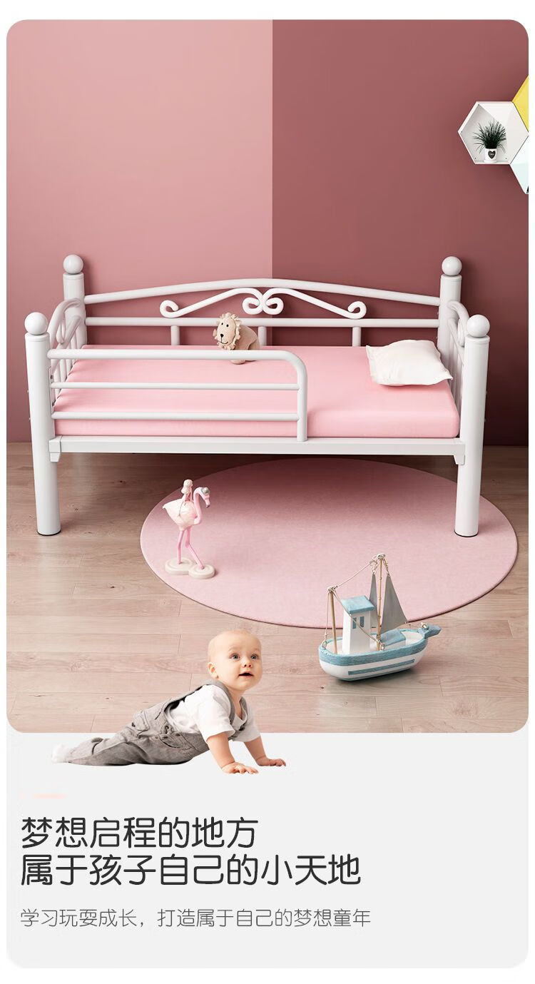 弘星隆铁艺拼接床儿童床带护栏单人婴儿床男孩女孩边床加宽小床公主床 加厚龙骨三面护栏(裸床) 120*60