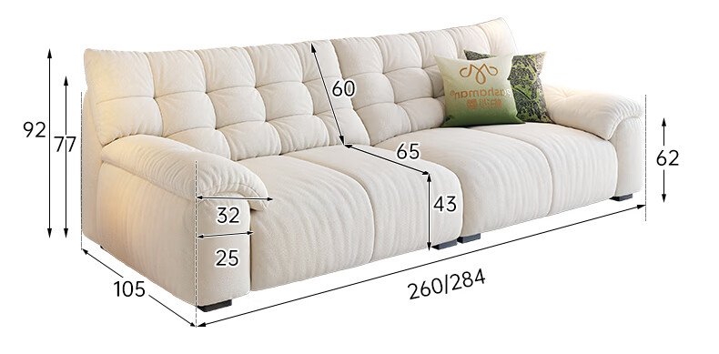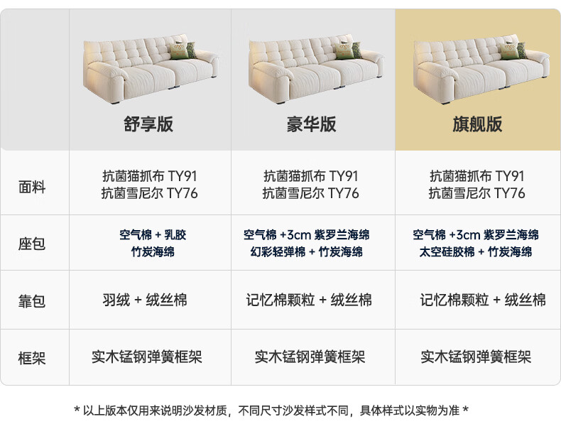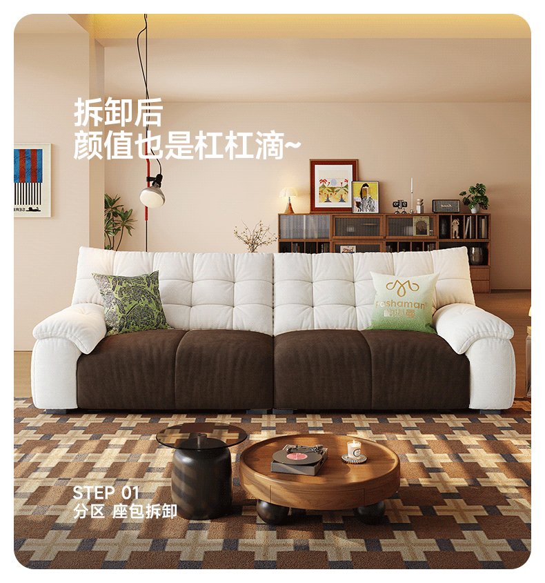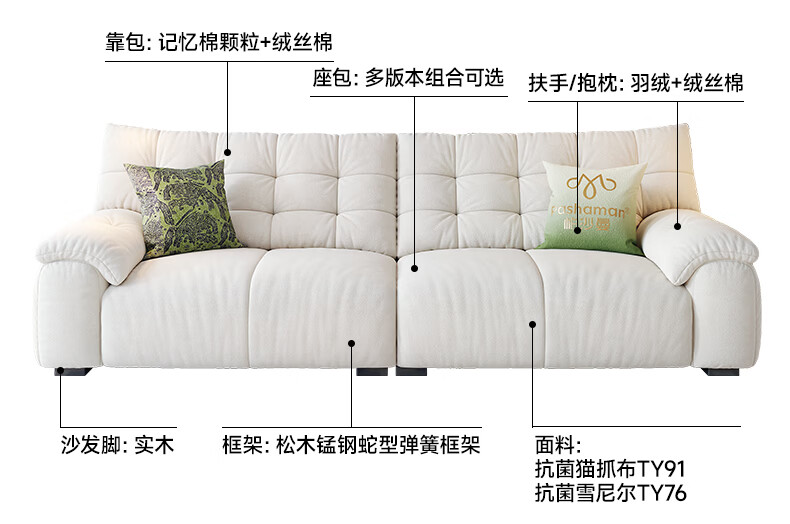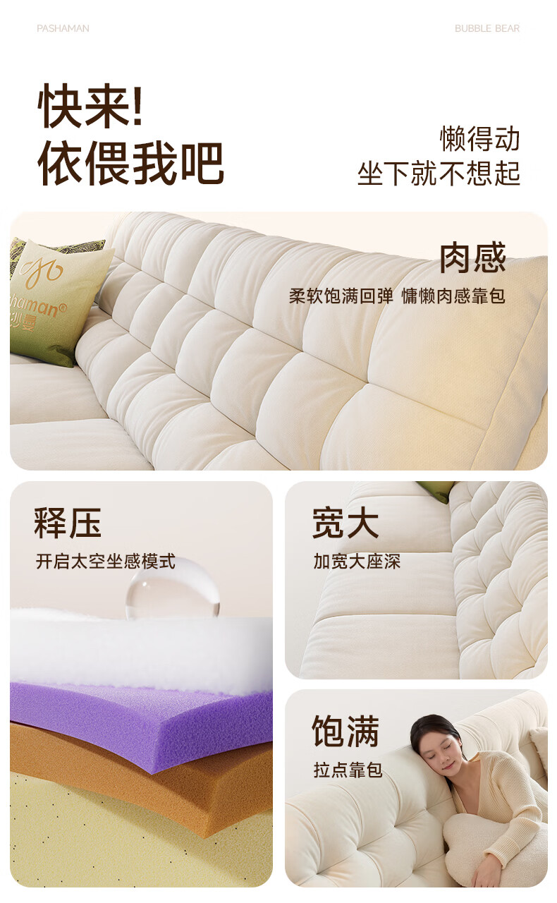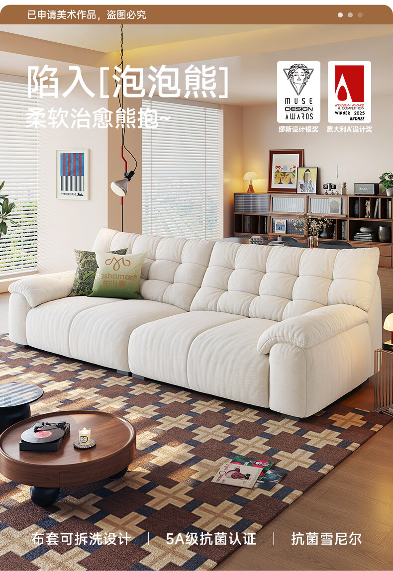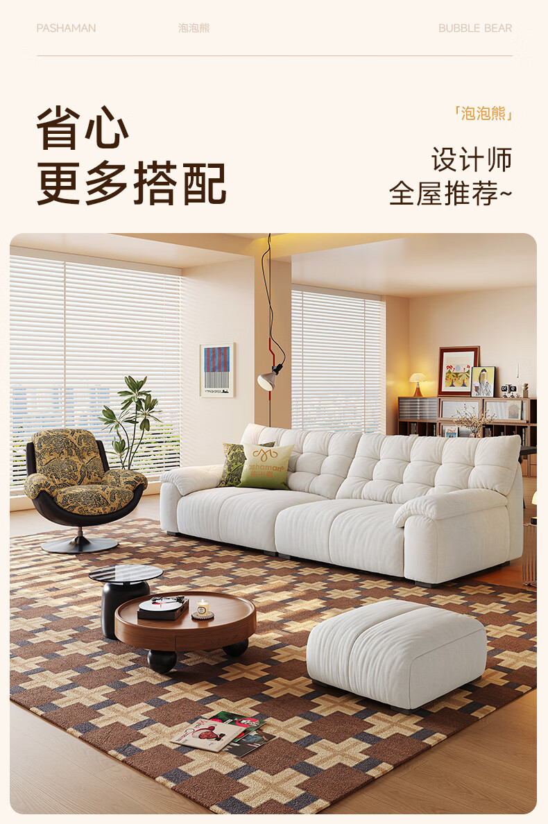 帕沙曼泡泡熊布艺沙发小户型客厅雪尼尔复古奶油风可拆洗2025新款2929ZF 【可拆洗款】2.6米多人位【雪尼尔】 【舒享版】 空气棉+乳胶+竹炭海绵