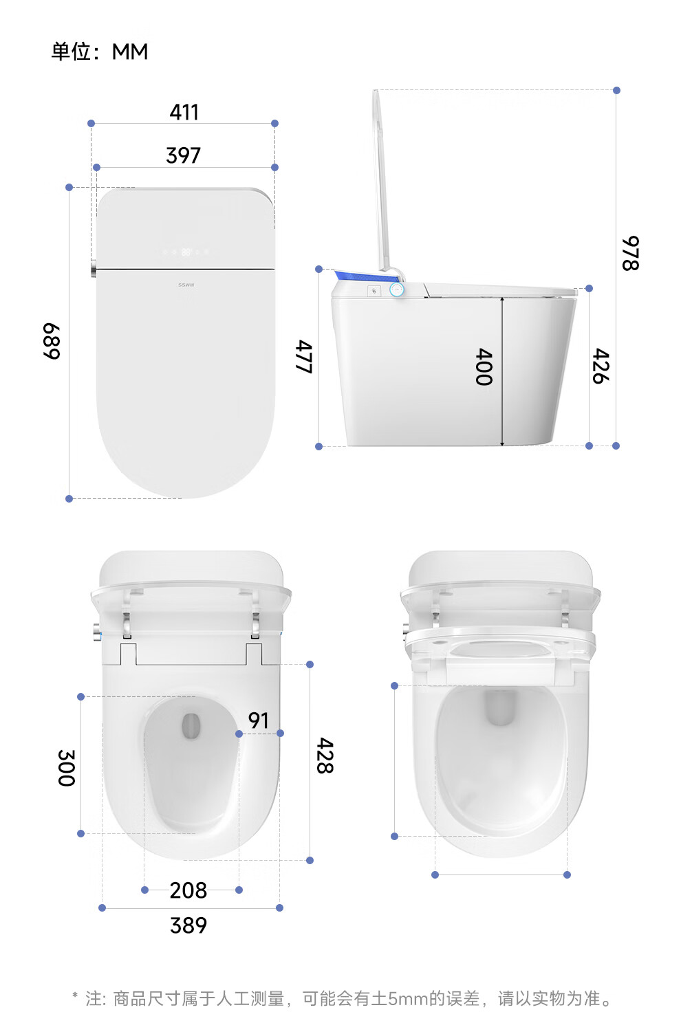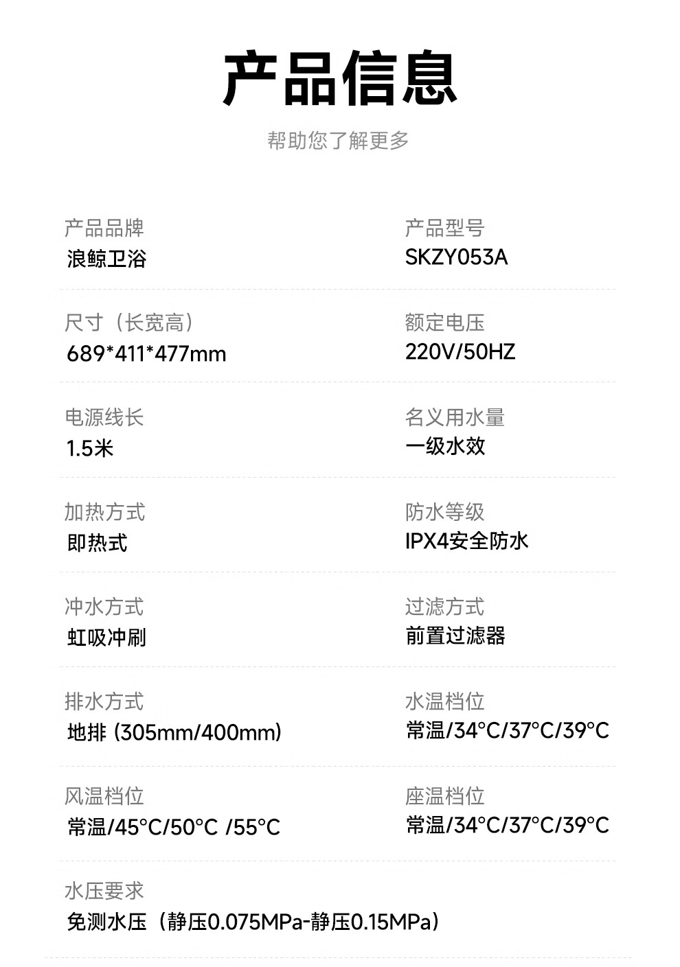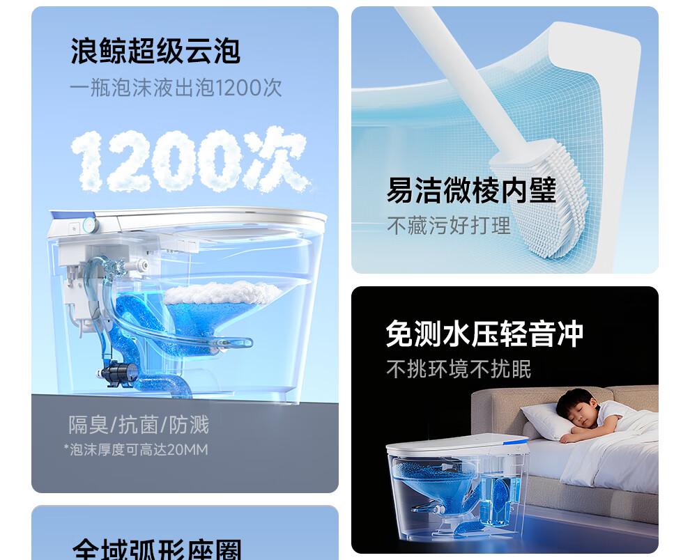 浪鲸(SSWW)卫浴全智能马桶清洗烘干一体泡沫盾抗菌易洁内壁马桶全自动坐便器 053A【全智能|电解水杀菌+等离子杀菌+泡沫盾+香薰】 305/300mm丨一级水效