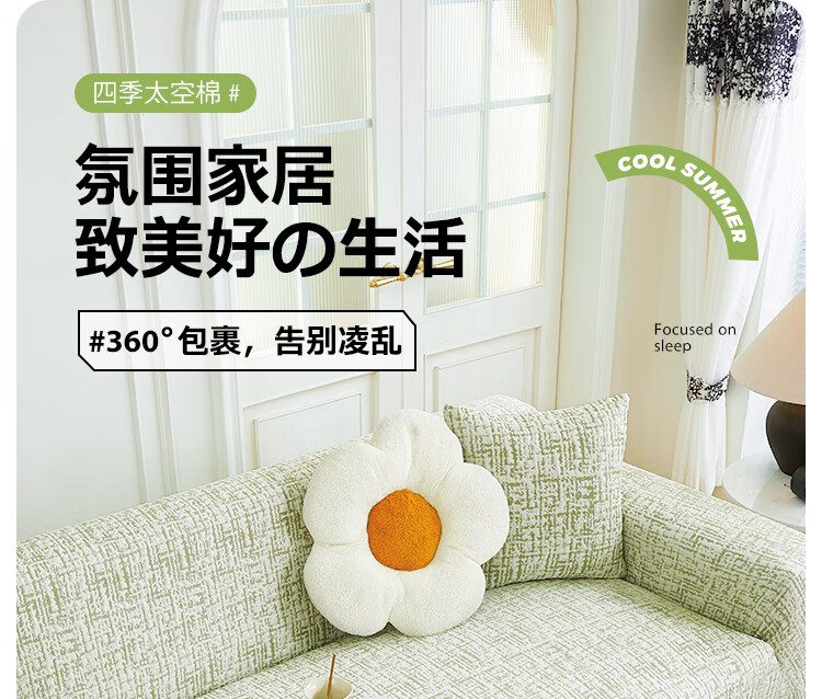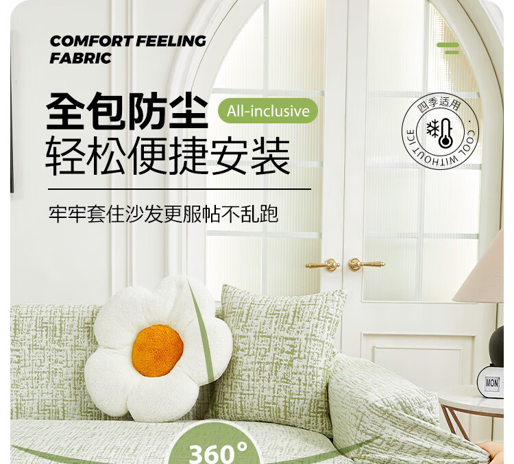 金拾美月四季通用沙发全包罩防猫抓太空棉沙发坐垫笠2025新款防滑盖布巾 星岛-抹茶绿 全包单人/适用90-140cm(送抱枕套)建议拍大一码