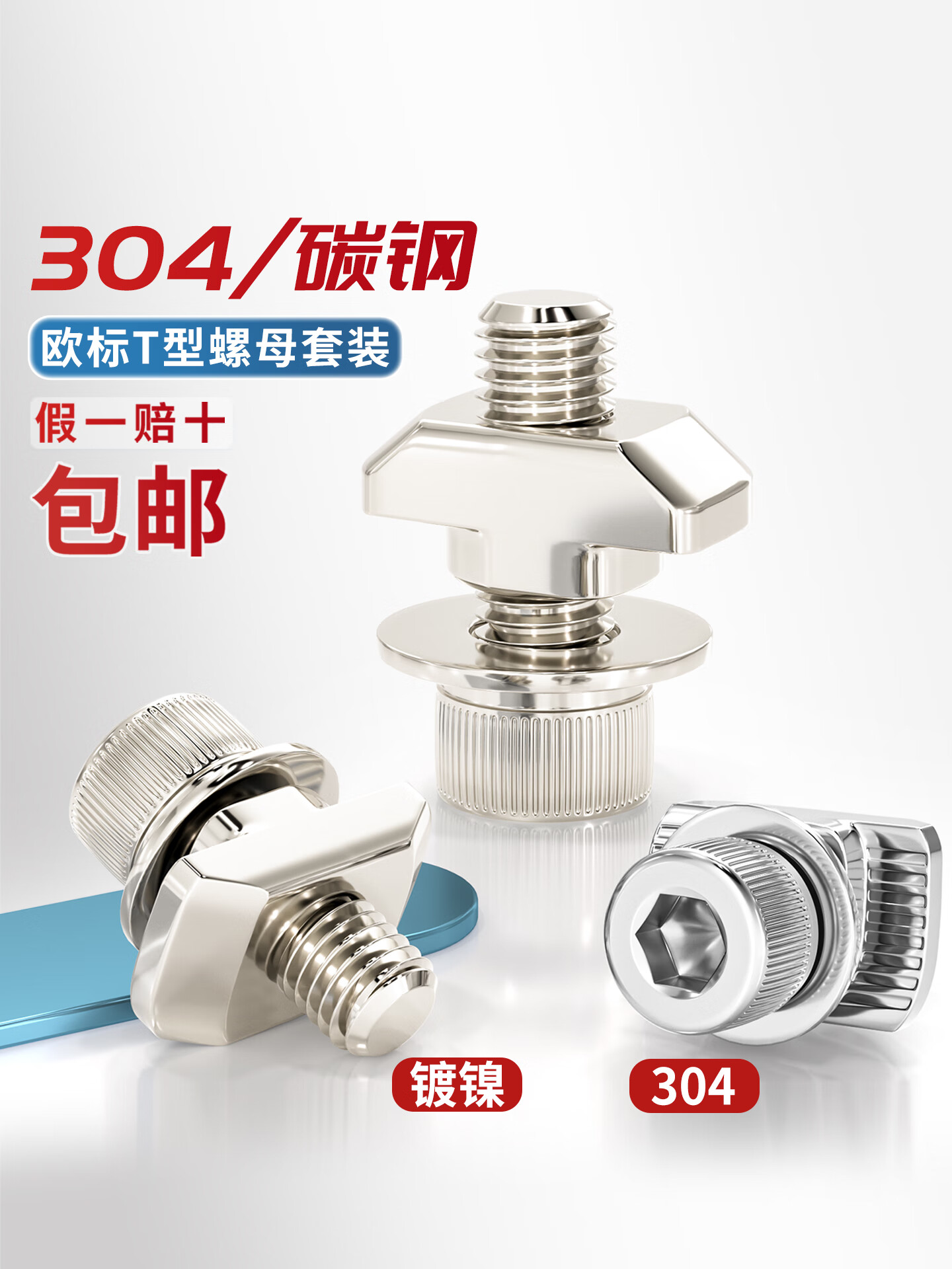 天卓五金欧标铝型材t型螺母船型t形t型块15/20/30型/40型/45型M3M4M5M6M8 30型-M4 (镀镍/50个)