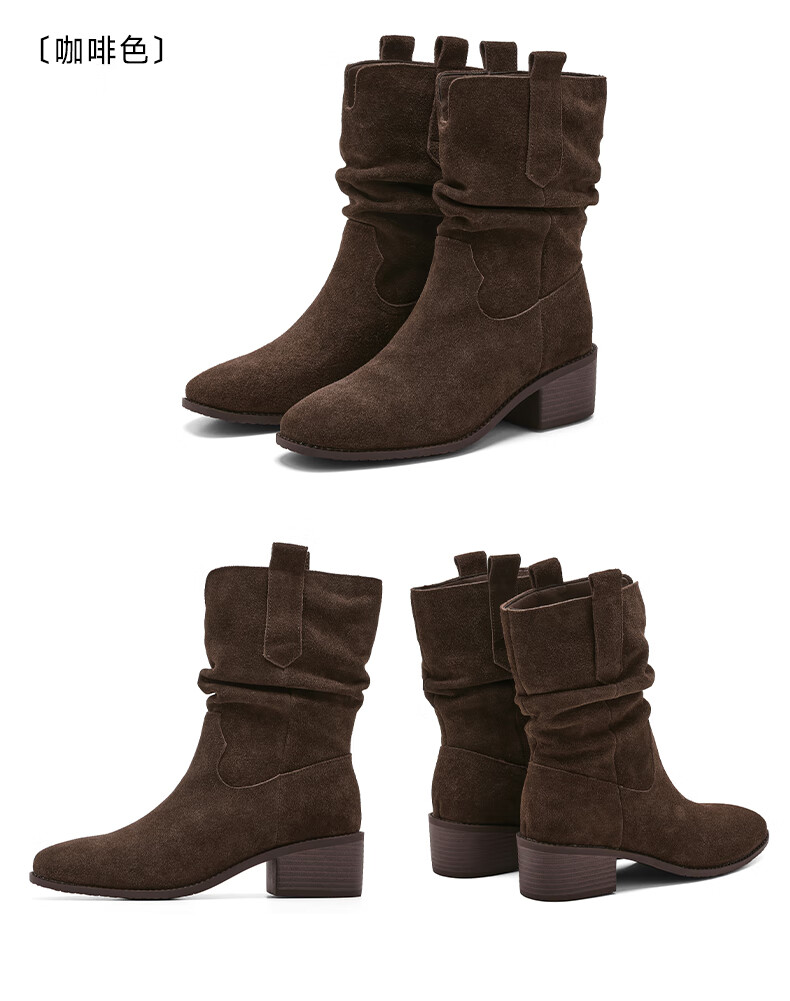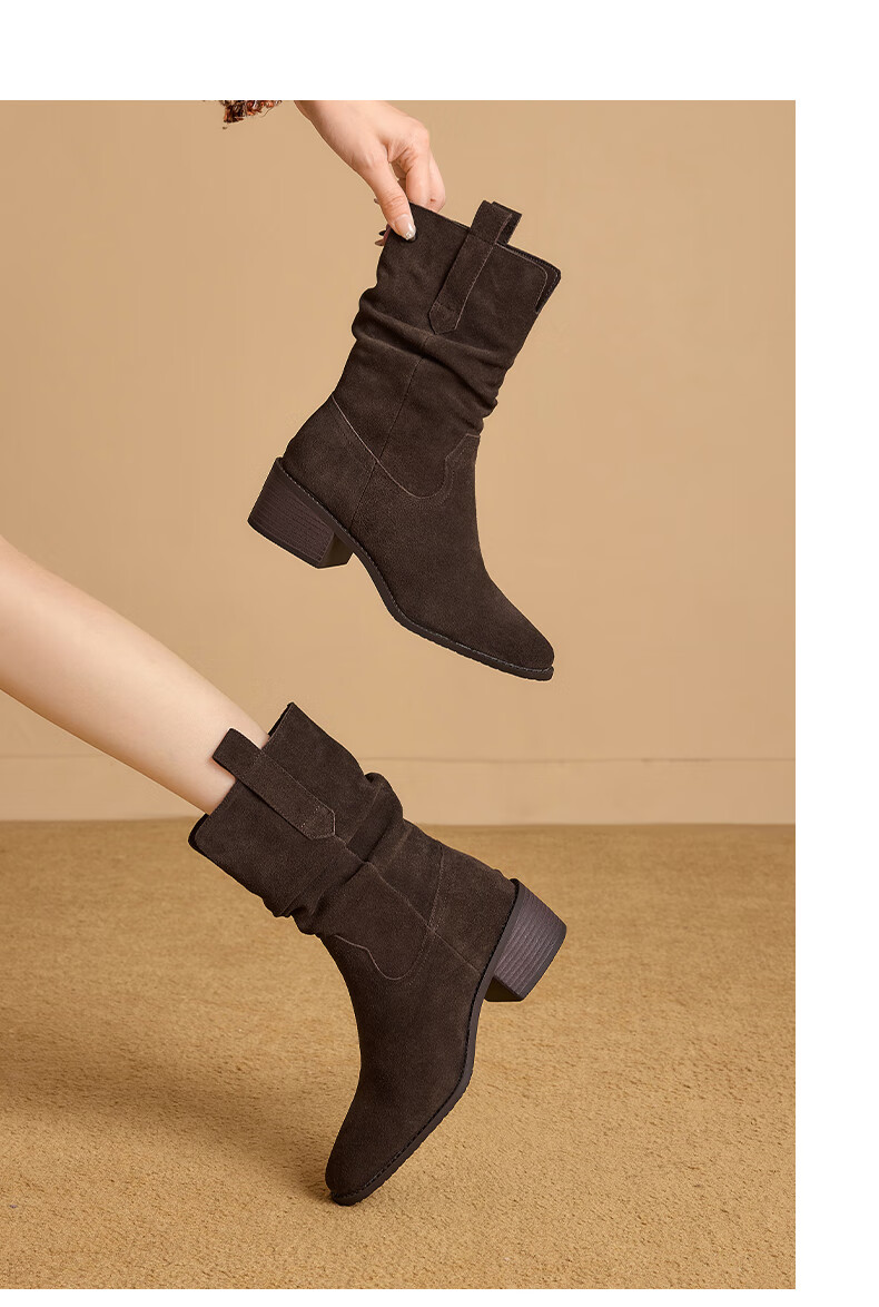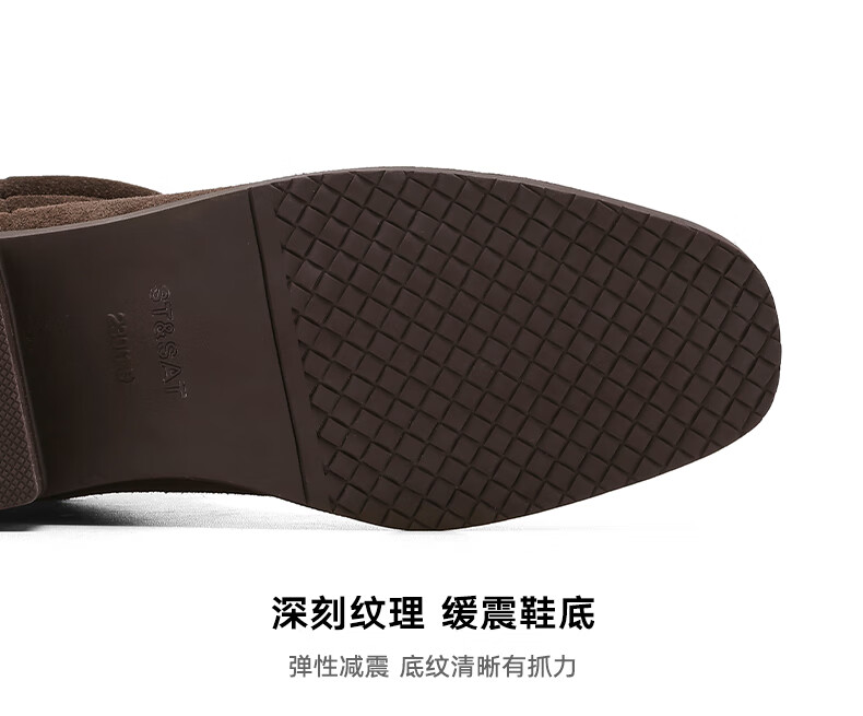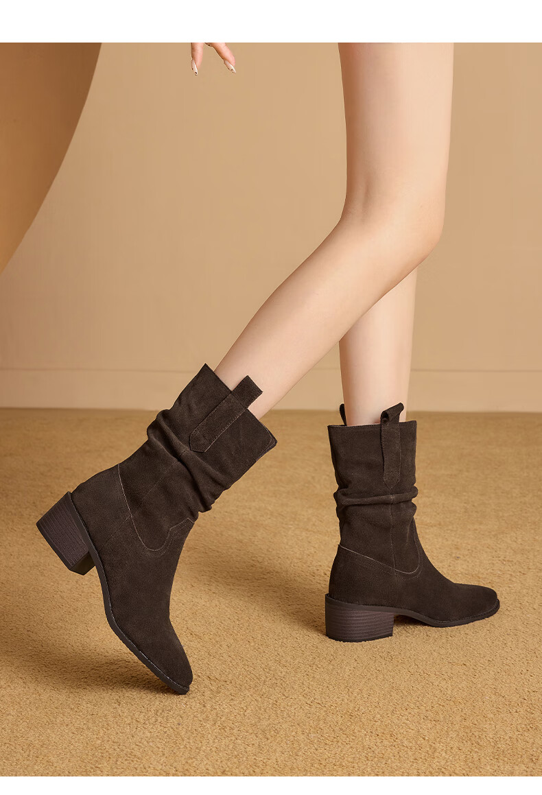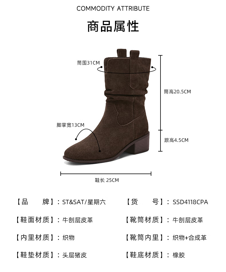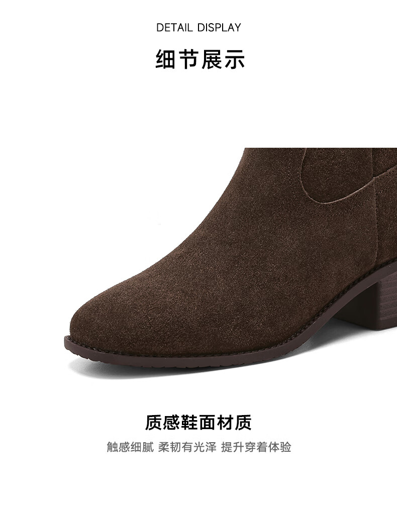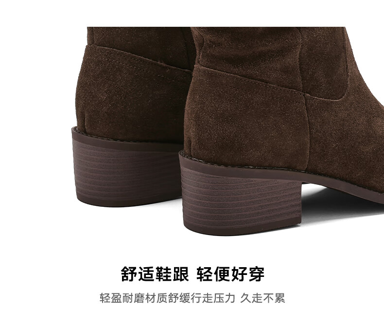 星期六短靴女2025新款爆款秋冬复古单靴女磨砂马丁靴高跟粗跟瘦瘦靴女款 咖啡色 36