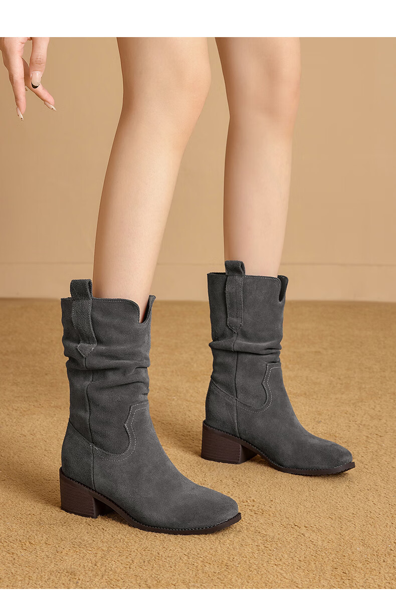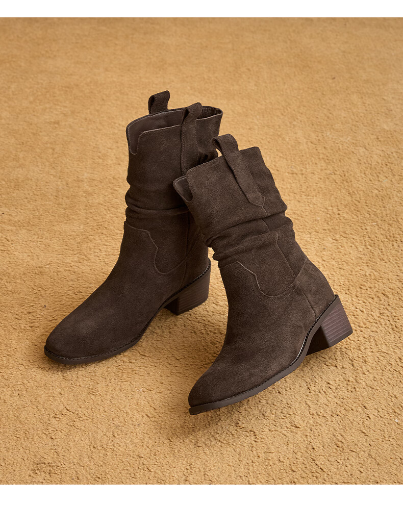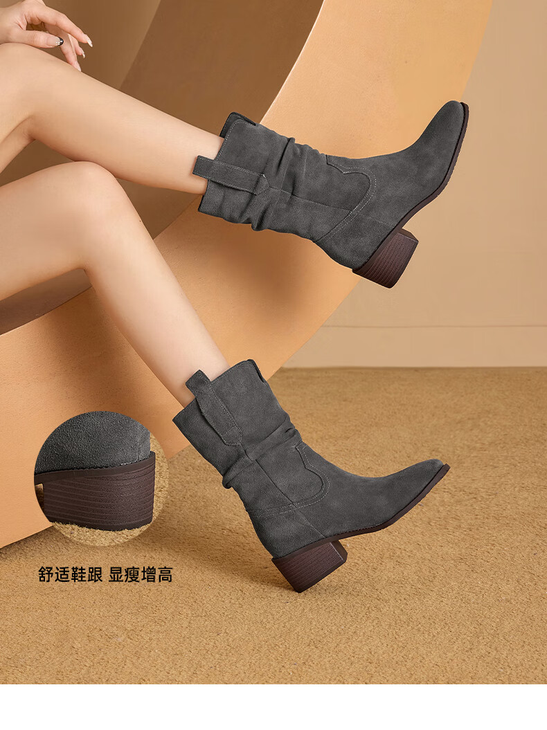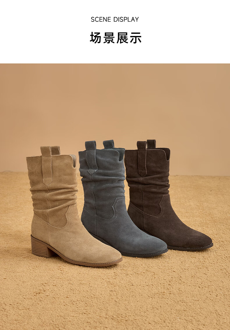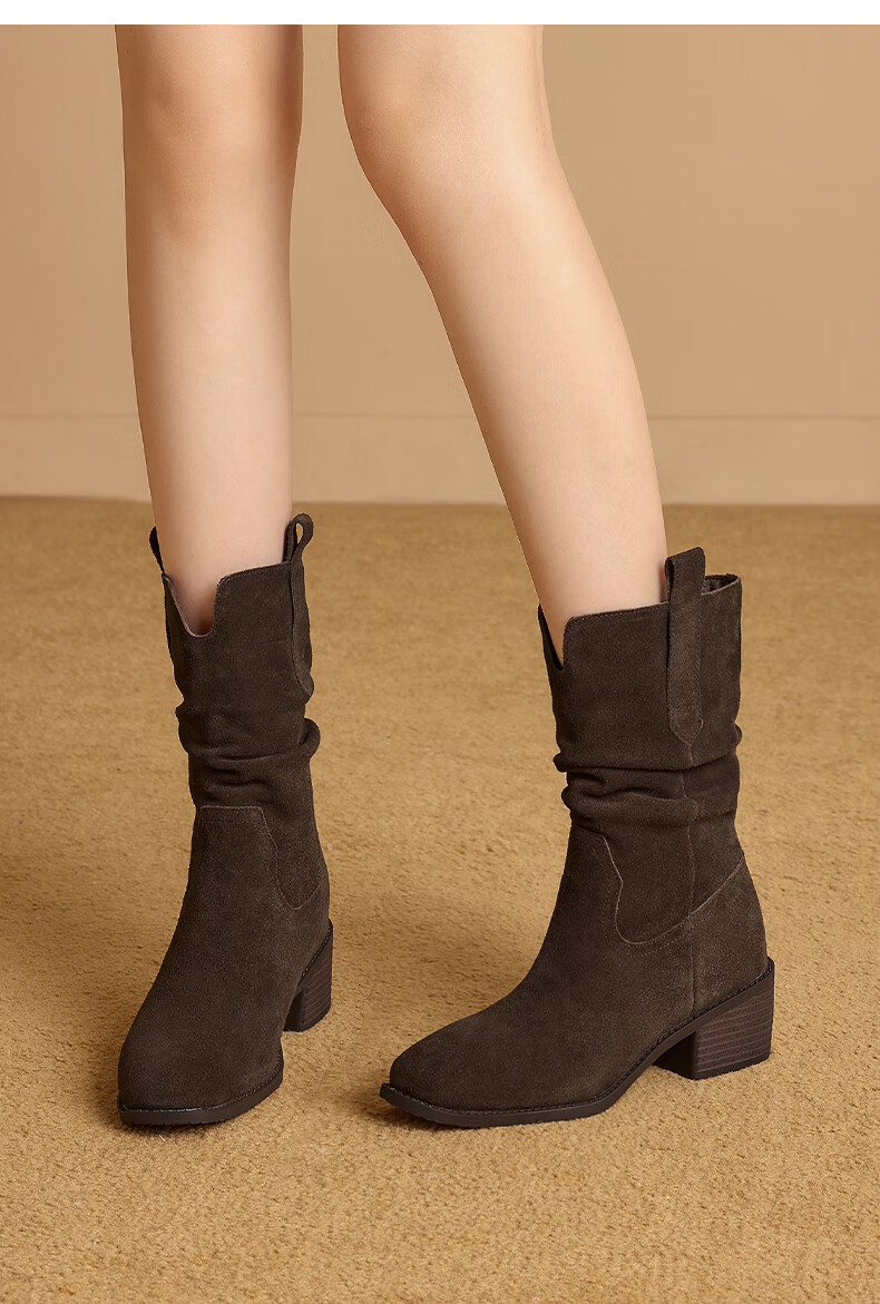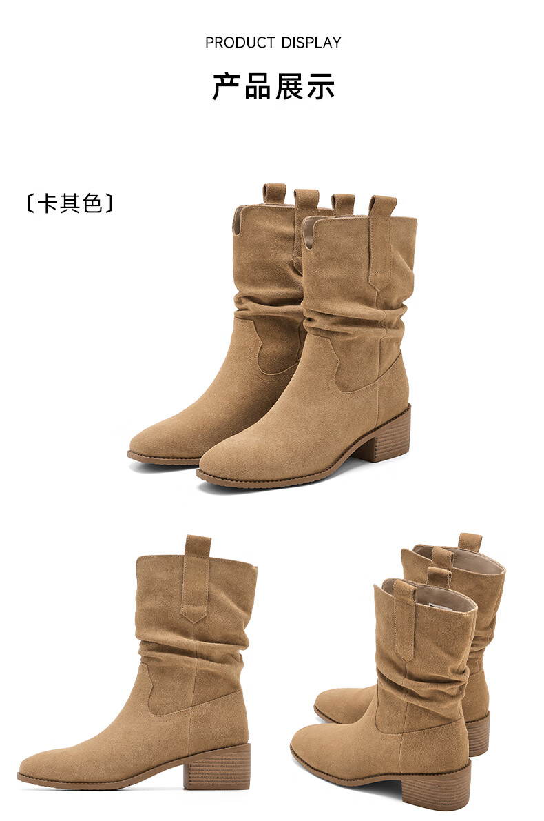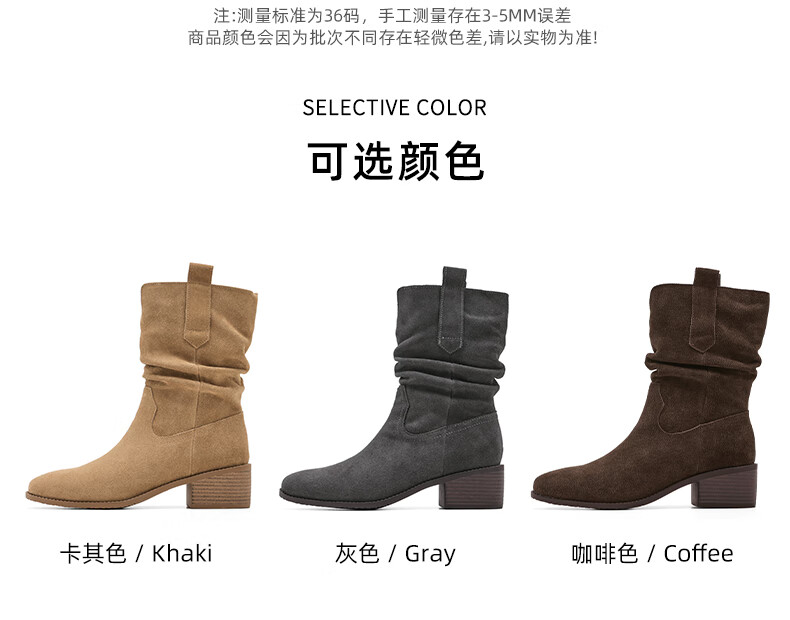 星期六短靴女2025新款爆款秋冬复古单靴女磨砂马丁靴高跟粗跟瘦瘦靴女款 咖啡色 36