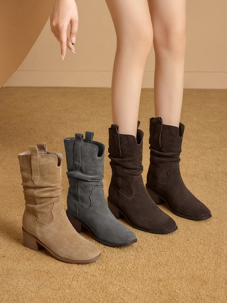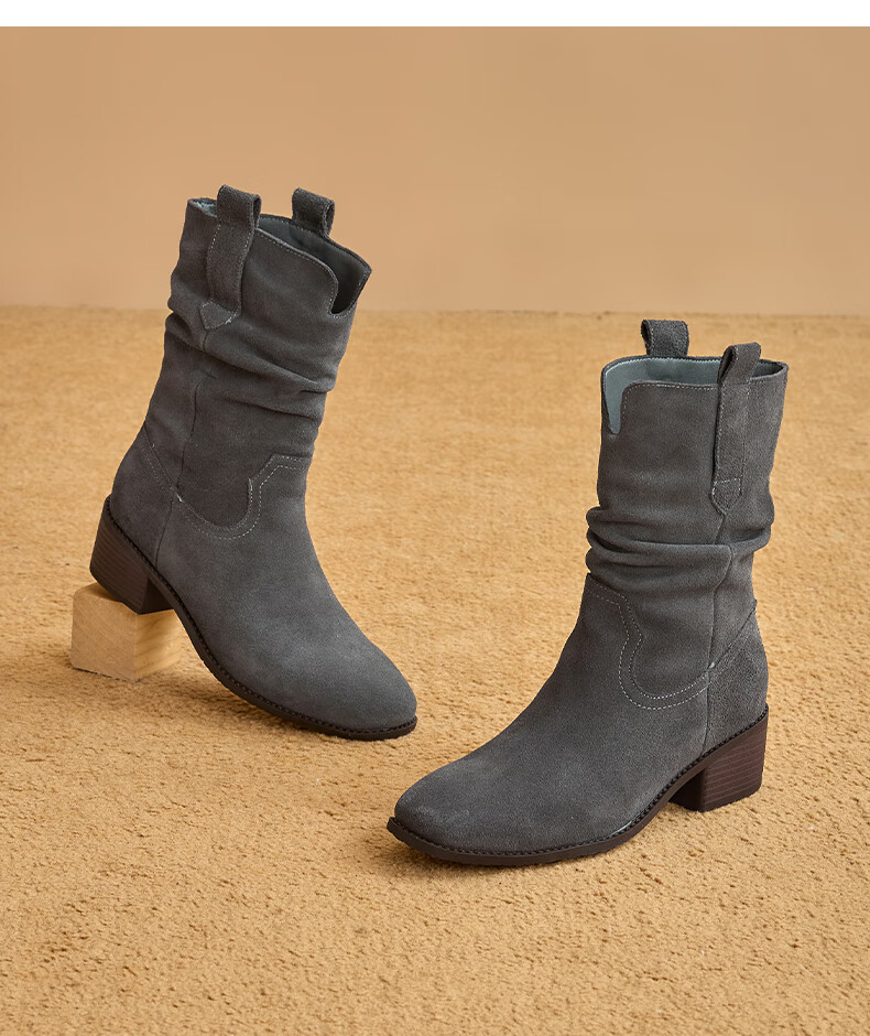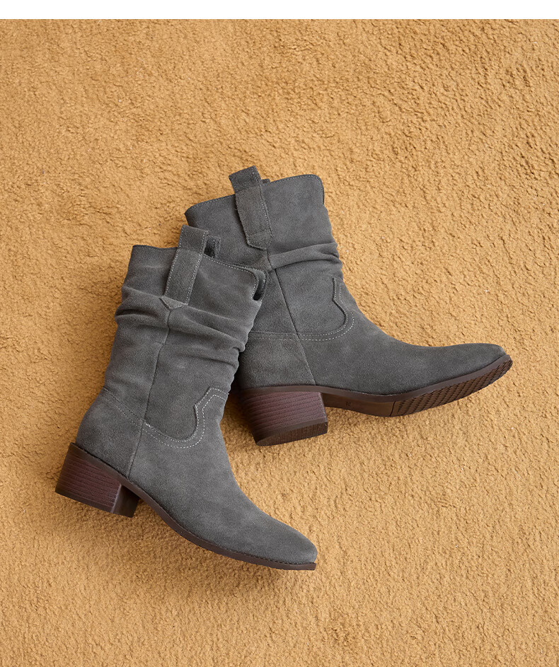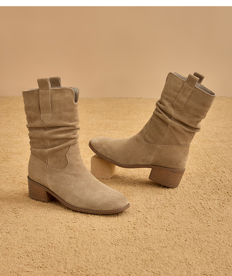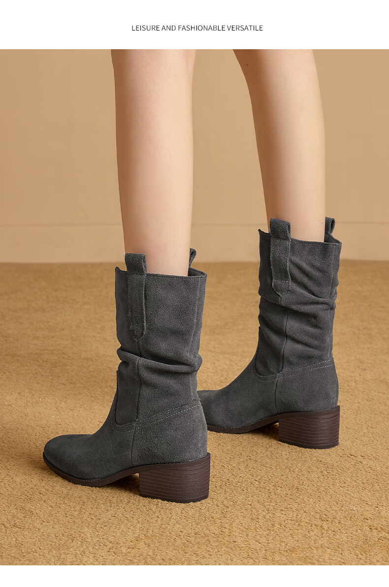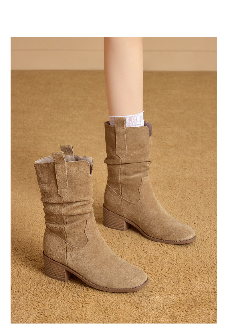 星期六短靴女2025新款爆款秋冬复古单靴女磨砂马丁靴高跟粗跟瘦瘦靴女款 咖啡色 36