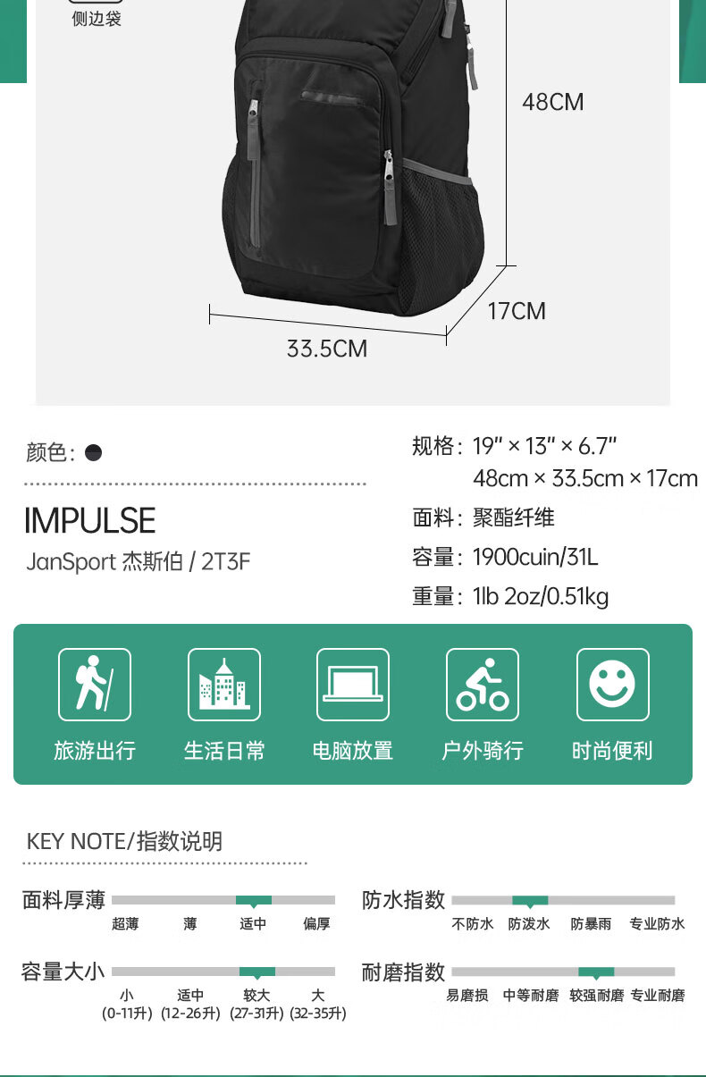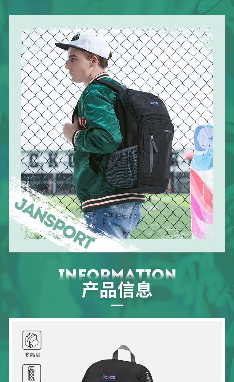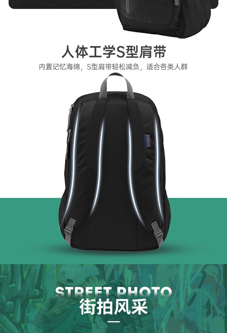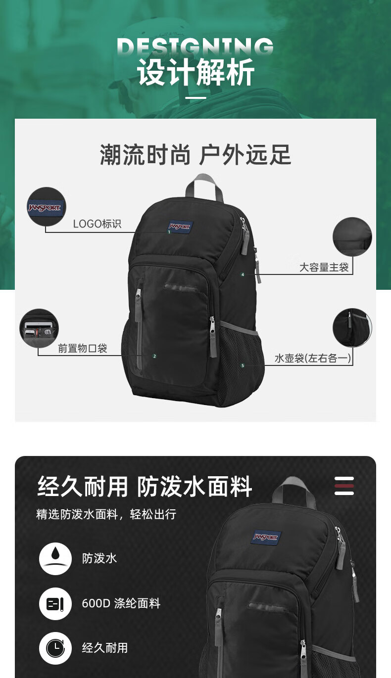 JANSPORT杰斯伯新款商务大容量双肩背包男士旅行轻便电脑包高中生大学生 2T3F3D6商务黑-电脑隔层+水杯侧袋
