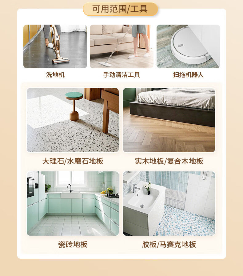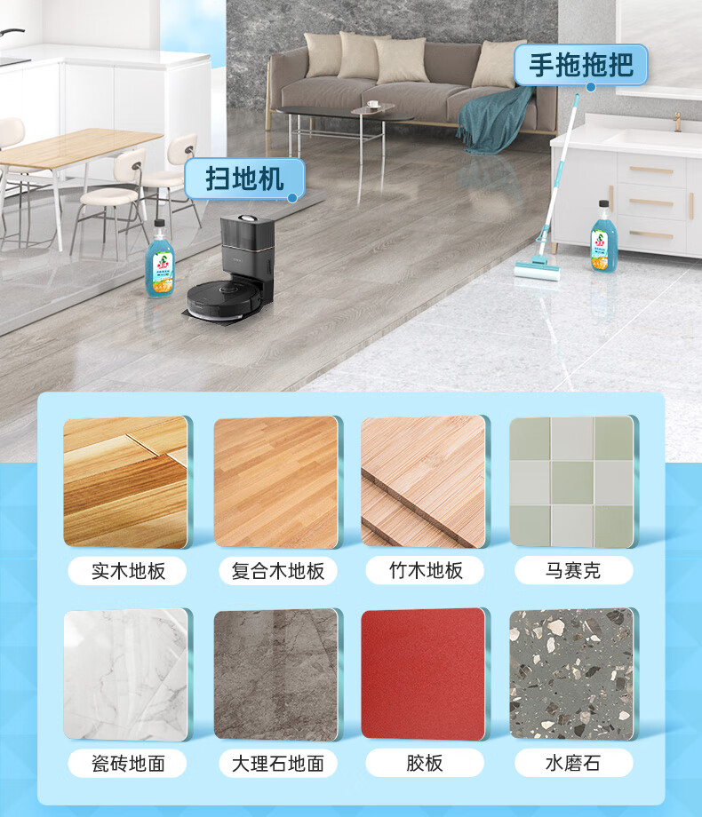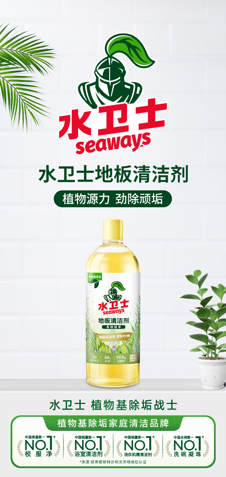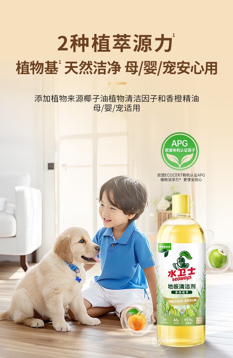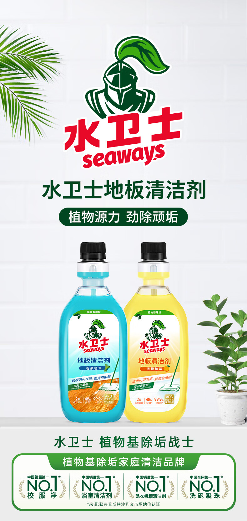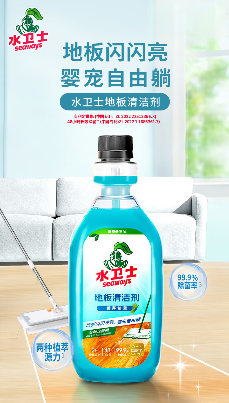 水卫士地板清洁剂婴宠家庭适用 扫地机器人专用 瓷砖拖地去污除菌去污垢 地板清洁剂1kg*2瓶【婴宠适用】