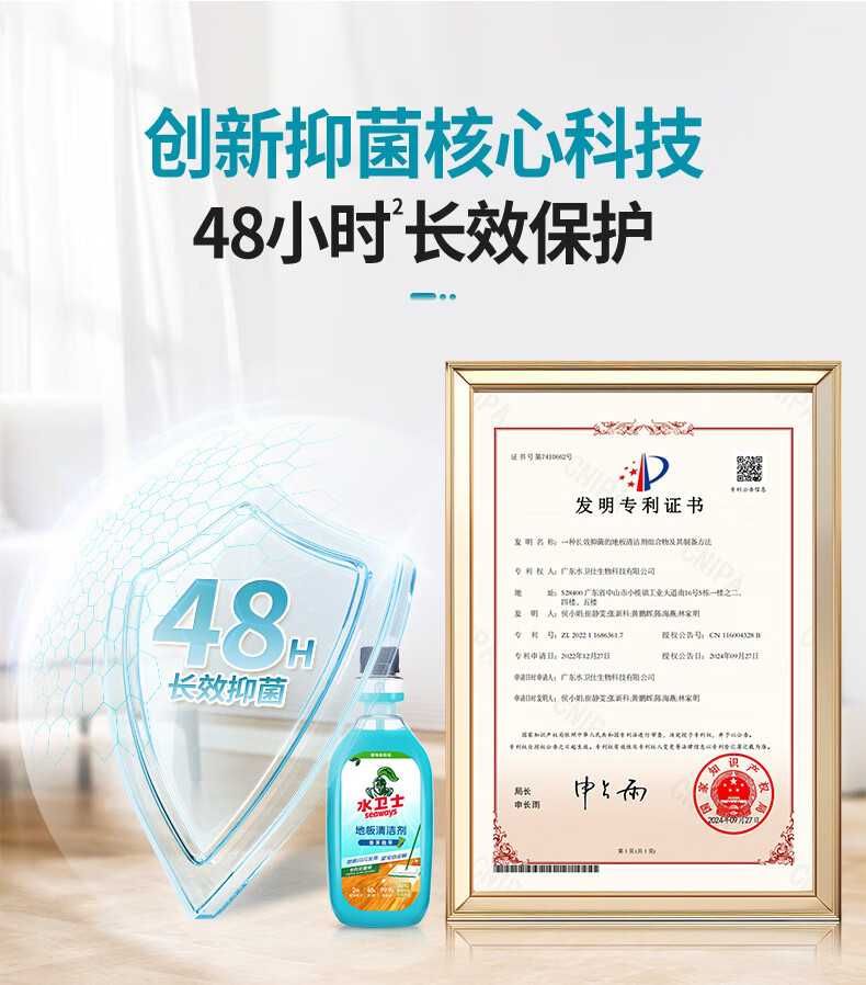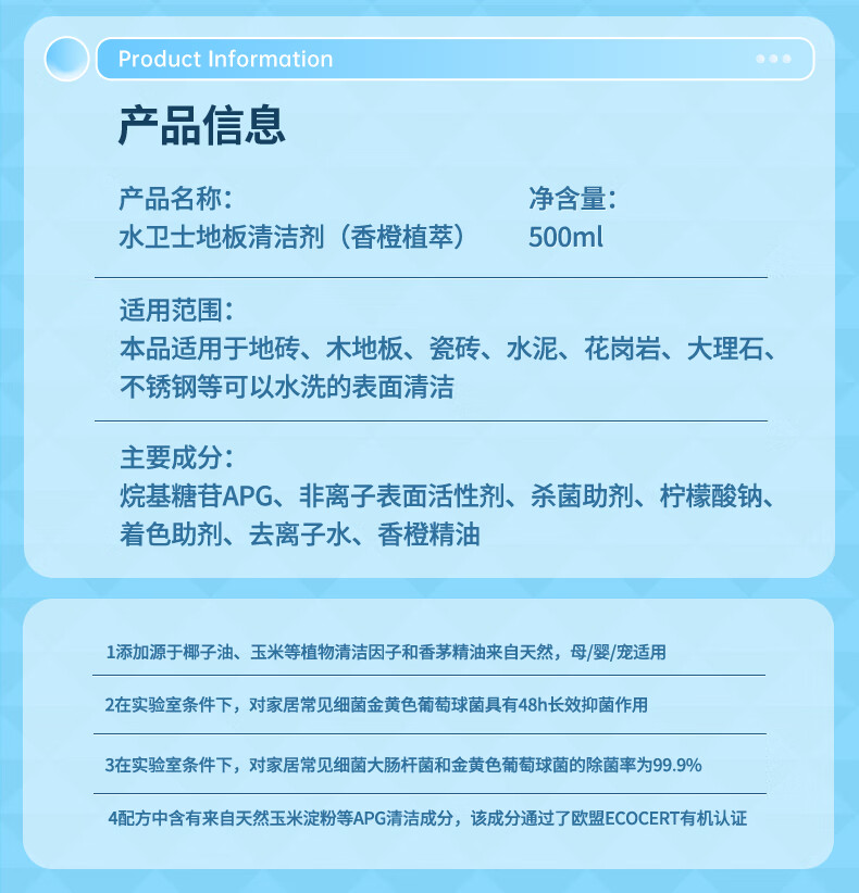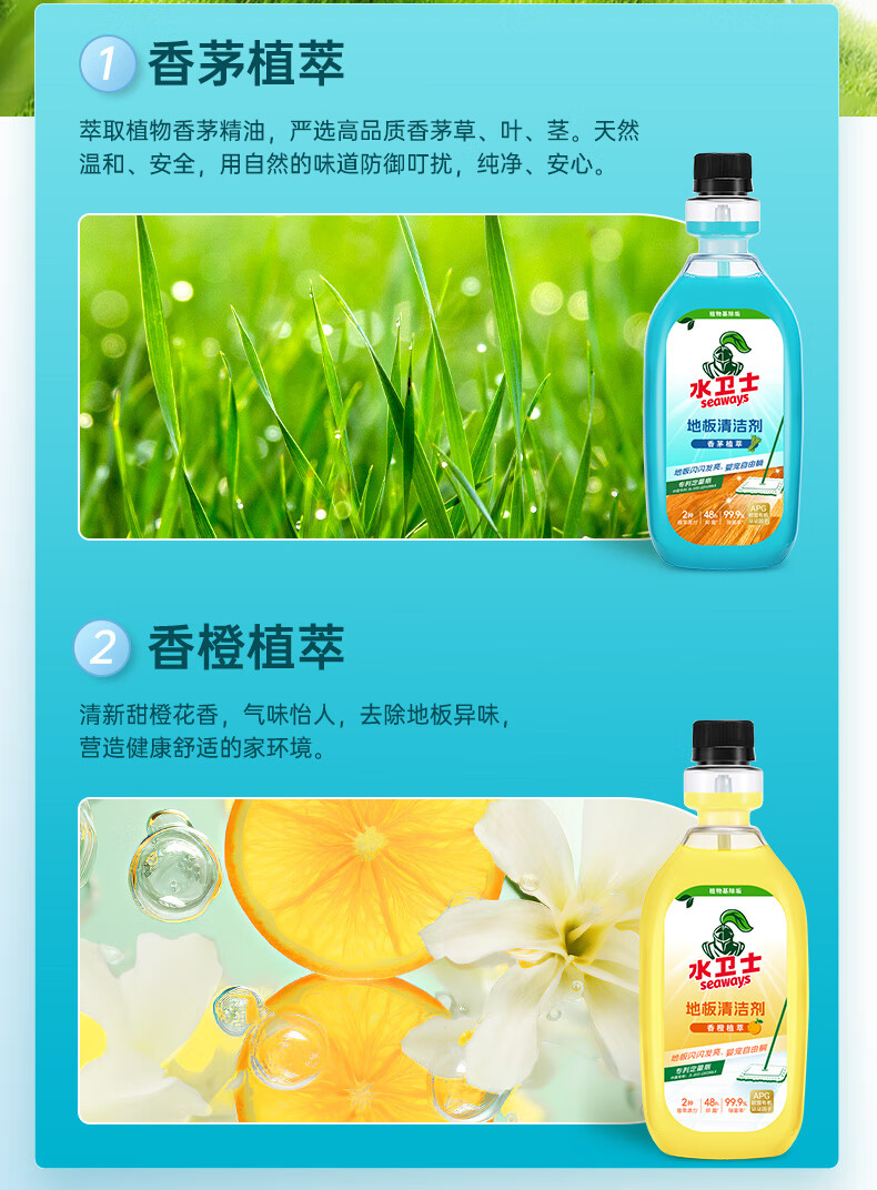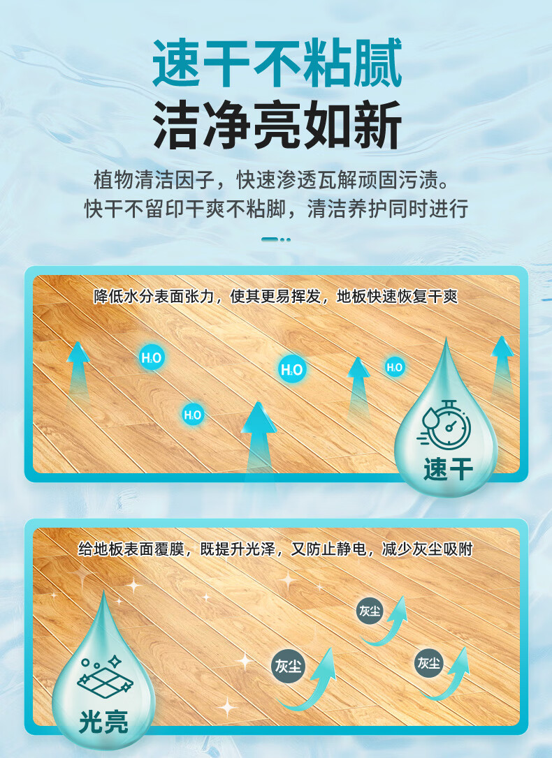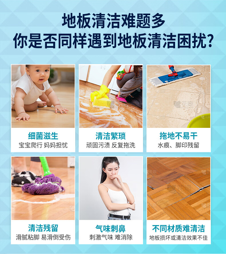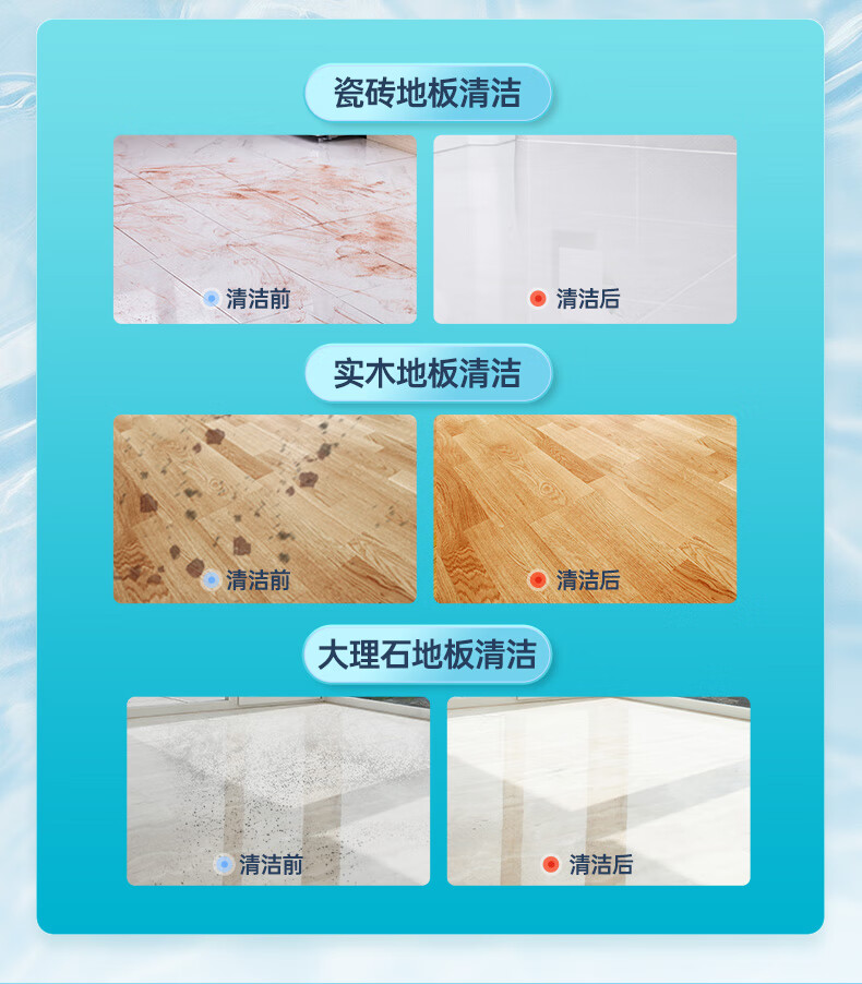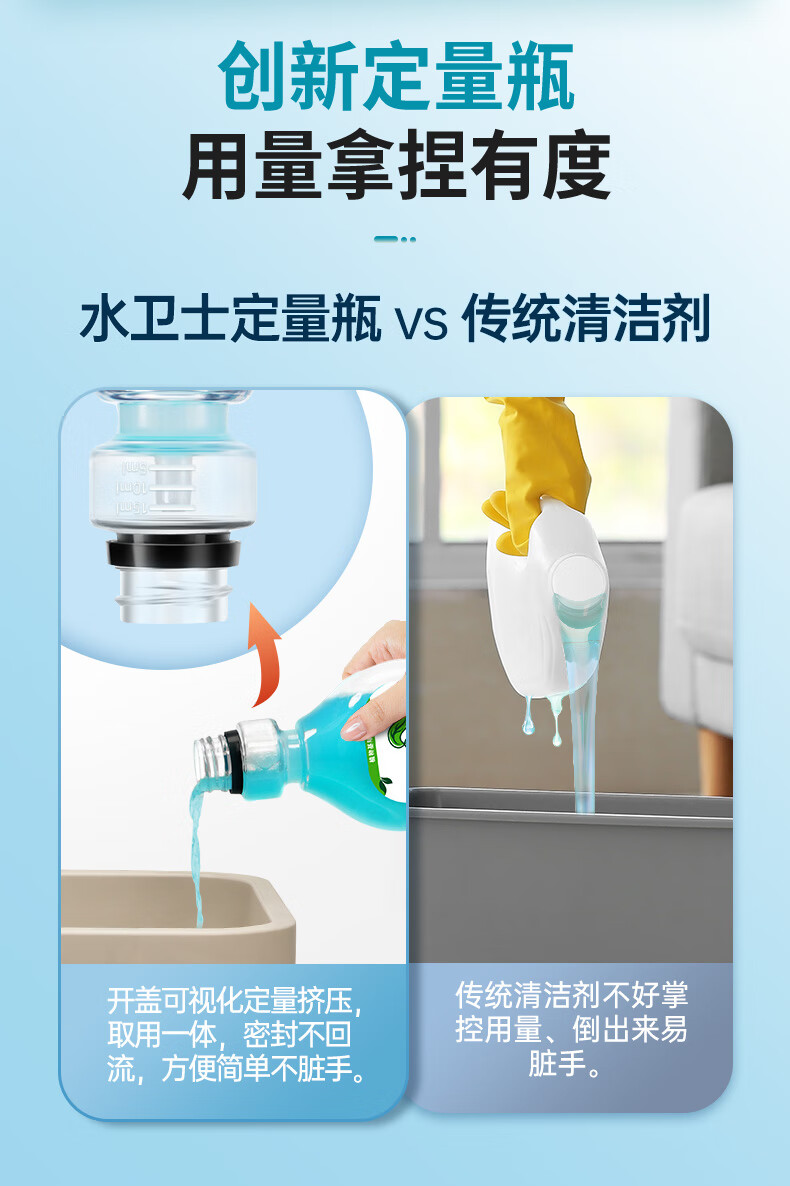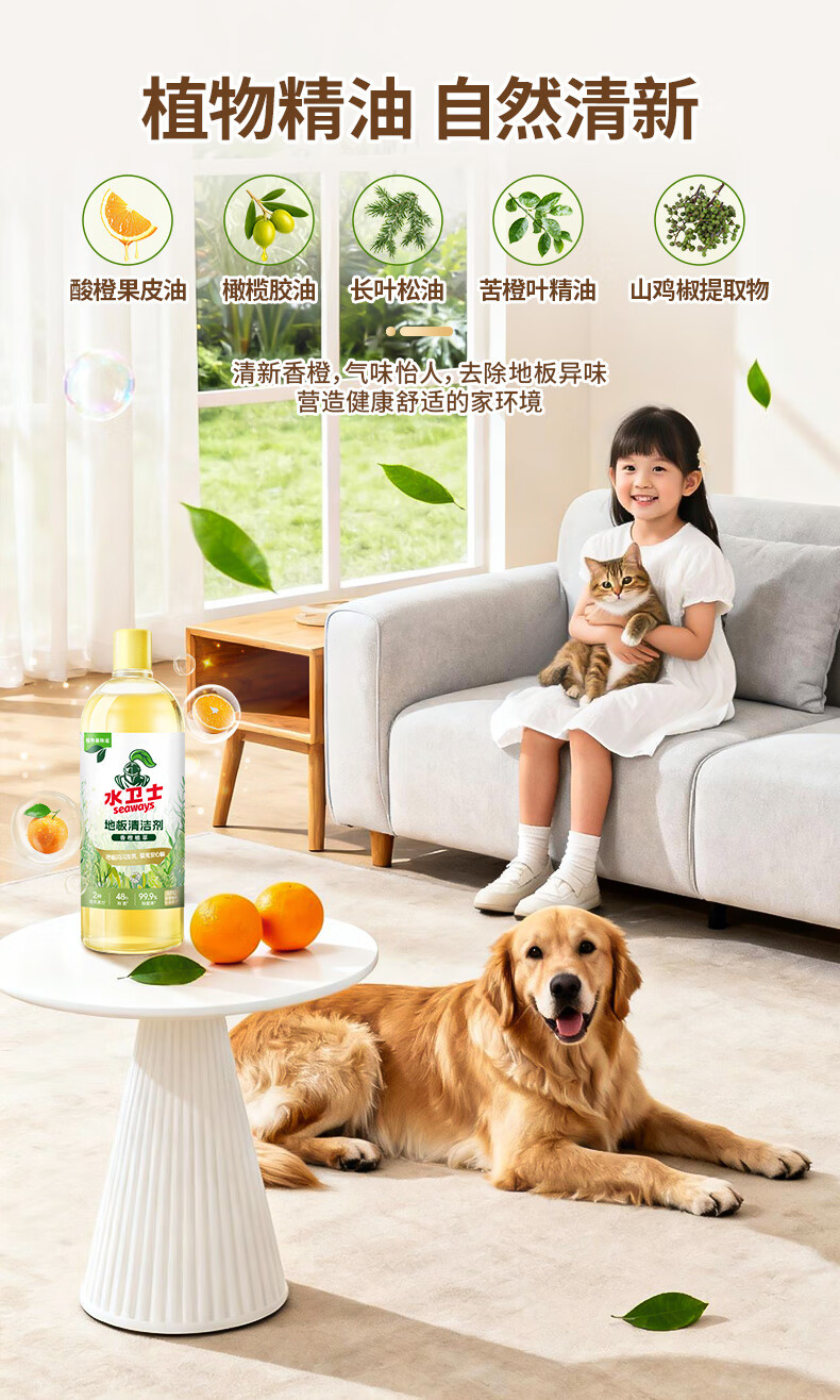 水卫士地板清洁剂婴宠家庭适用 扫地机器人专用 瓷砖拖地去污除菌去污垢 地板清洁剂1kg*2瓶【婴宠适用】