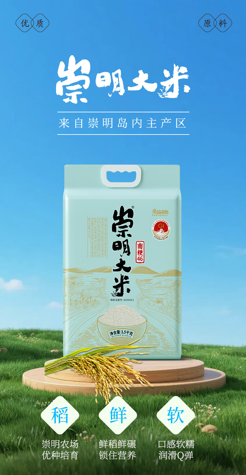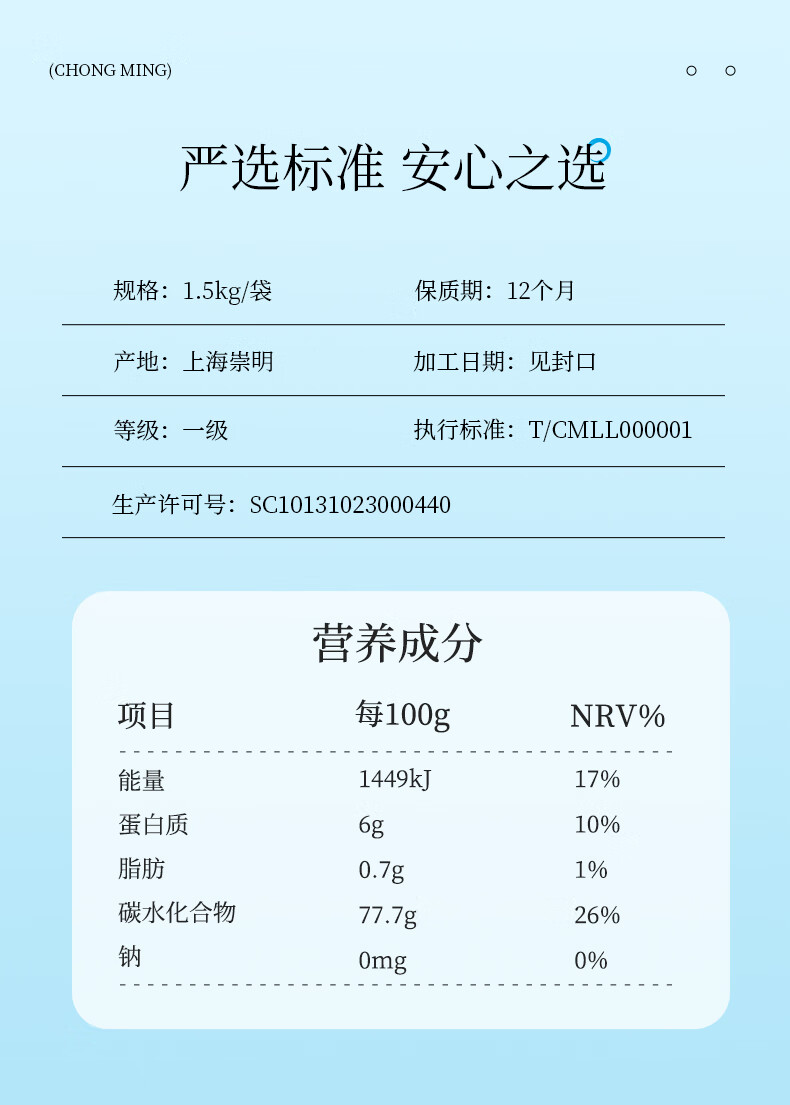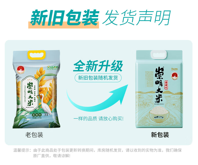崇明大米正宗 崇明岛直供 南粳46大米1.5公斤 软糯香米粳米珍珠米 含胚芽