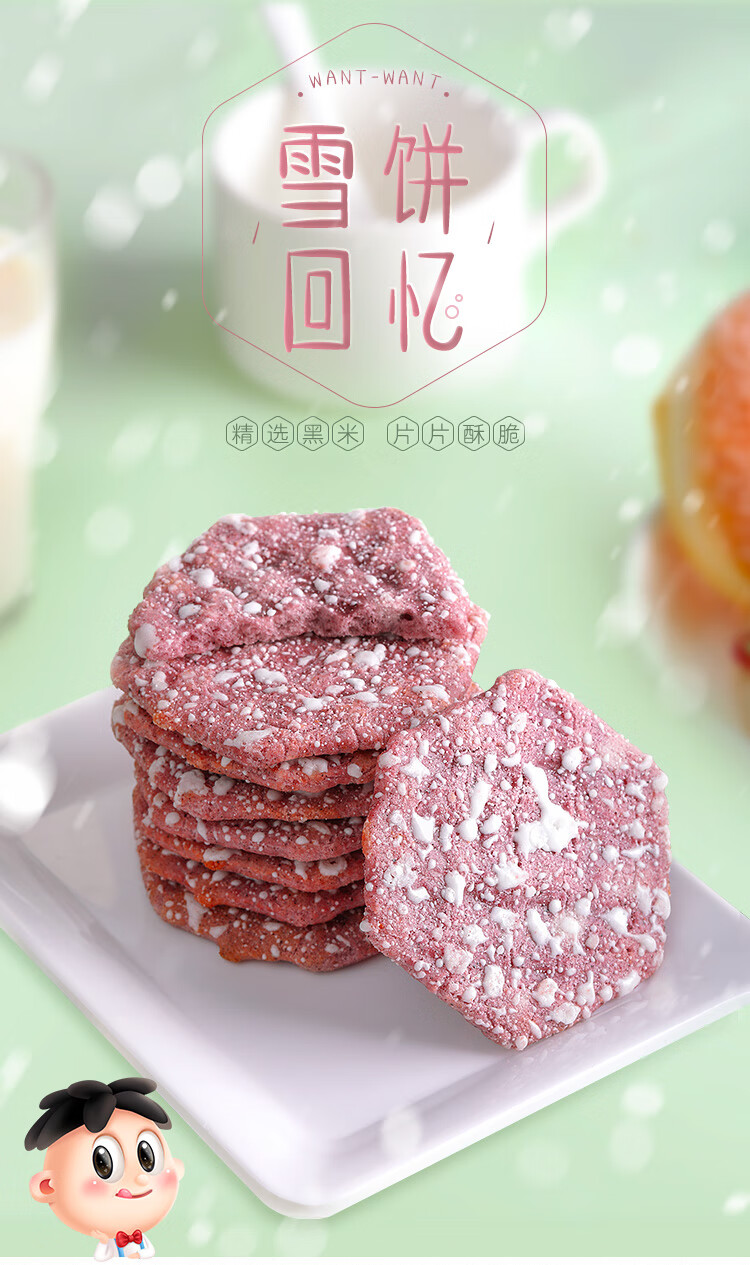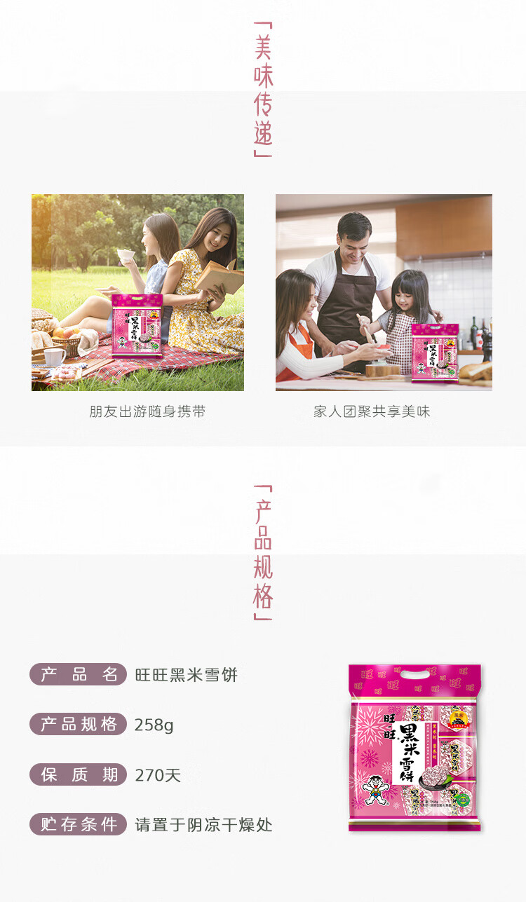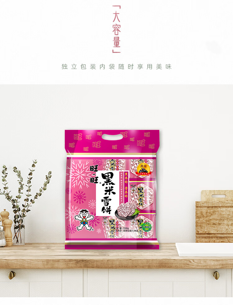 旺旺 黑米雪饼 原味 258g 零食膨化休闲食品饼干糕点