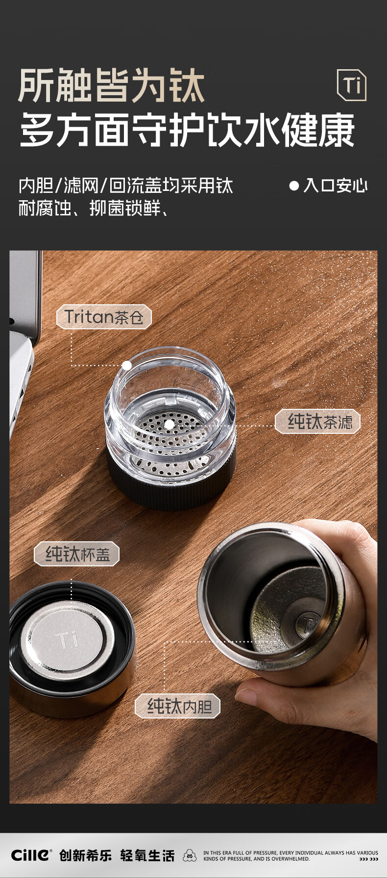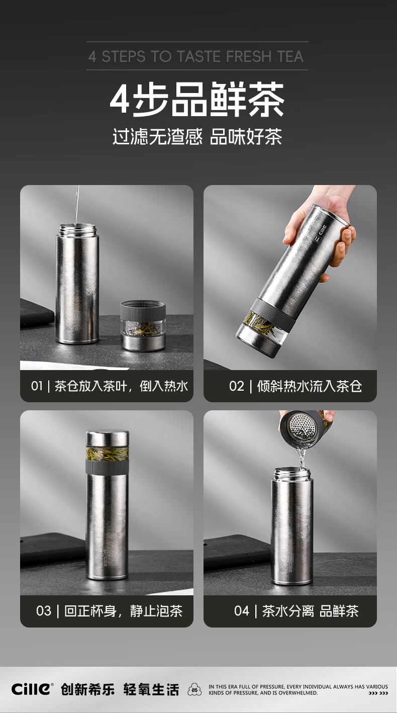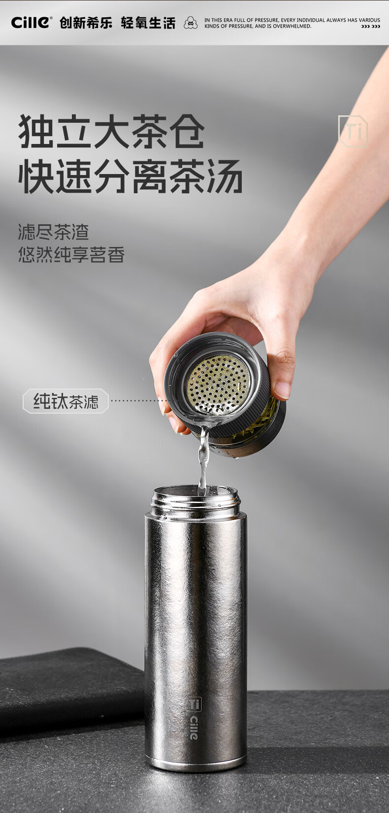希乐纯钛保温杯泡茶水杯子茶水分离钛杯男高端商务送长辈礼物焖茶杯