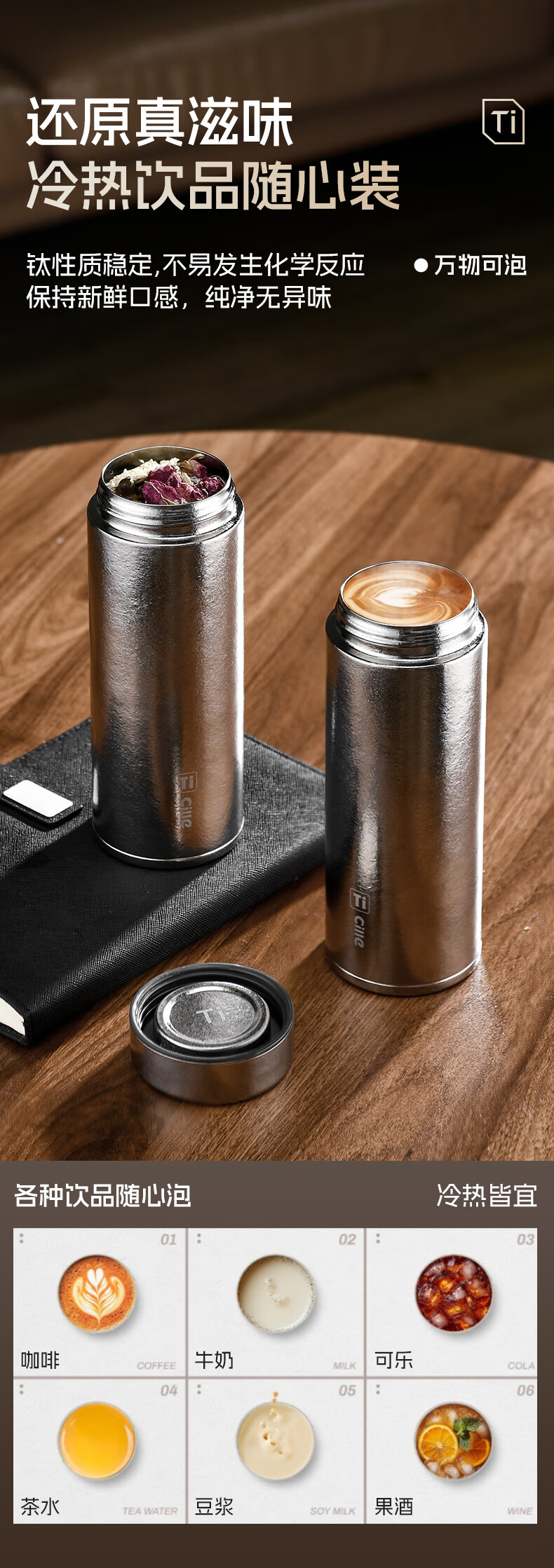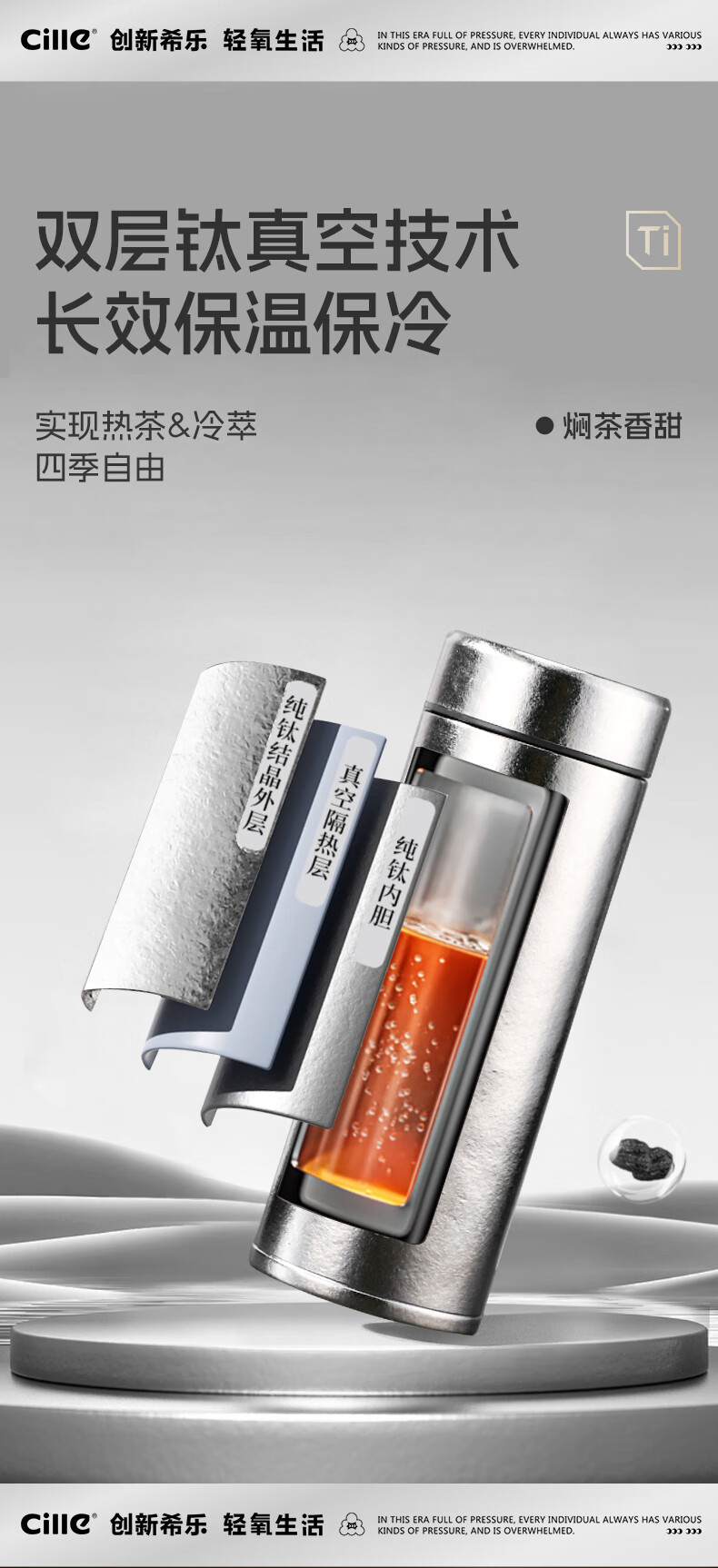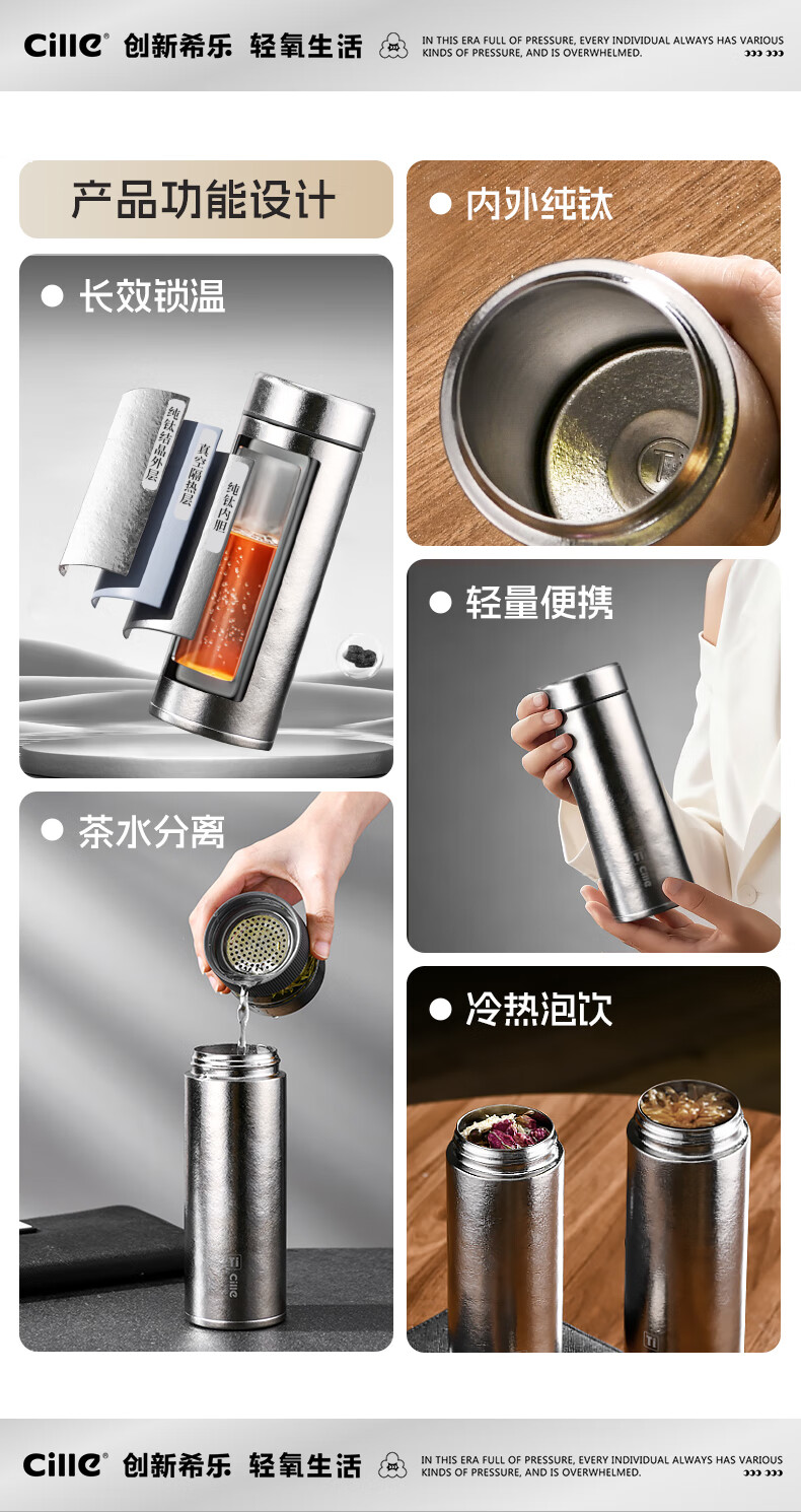 希乐纯钛保温杯泡茶水杯子茶水分离钛杯男高端商务送长辈礼物焖茶杯