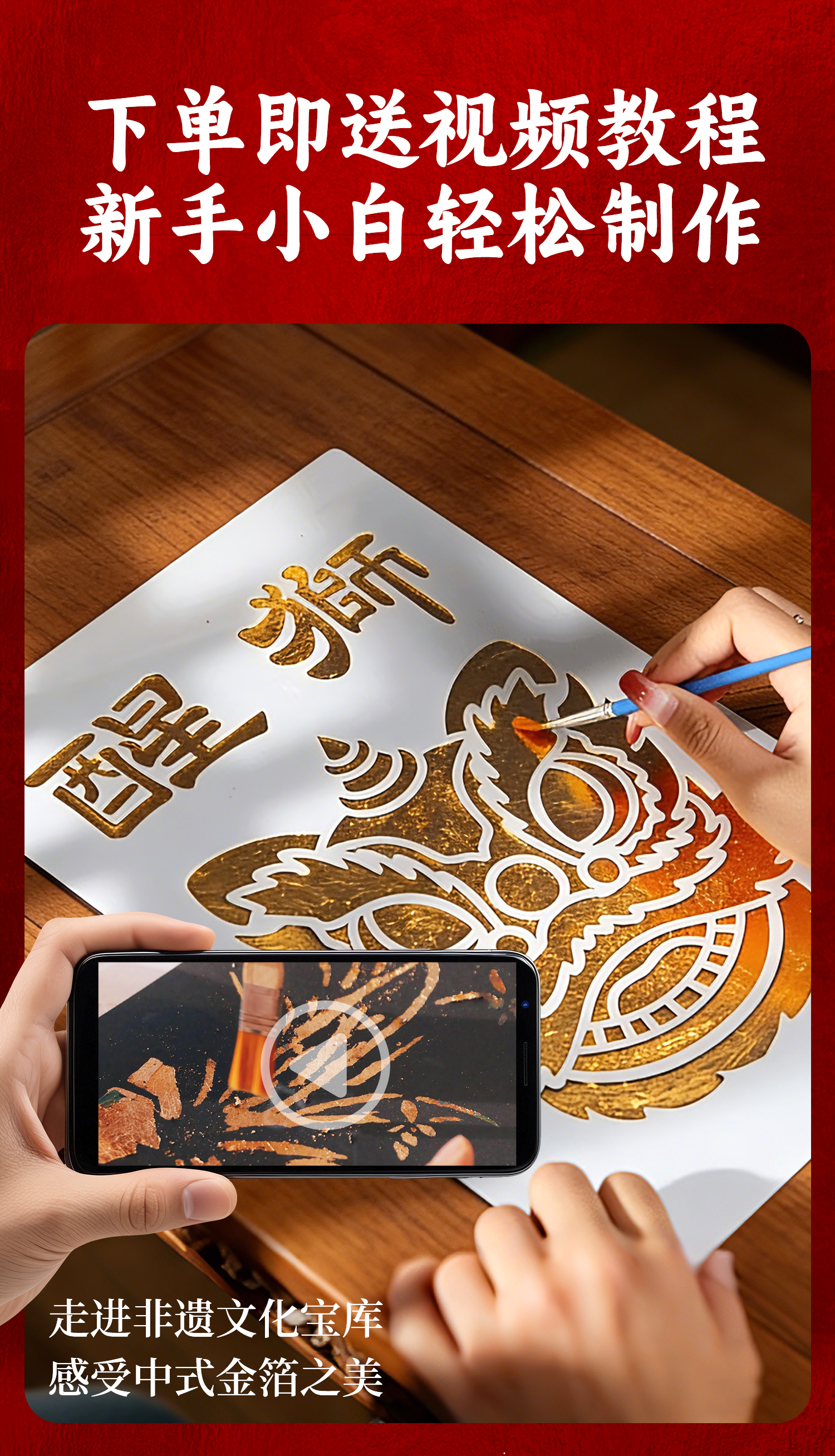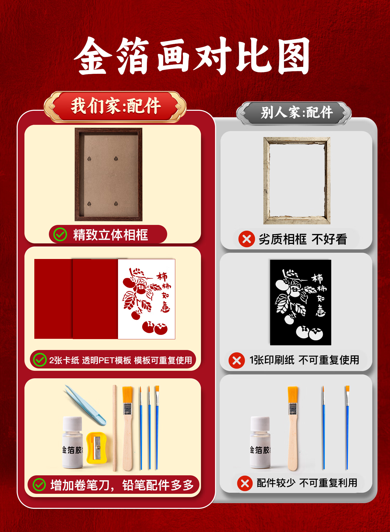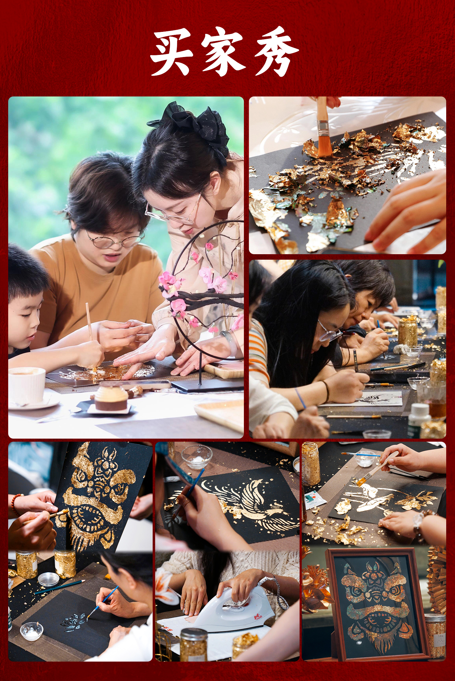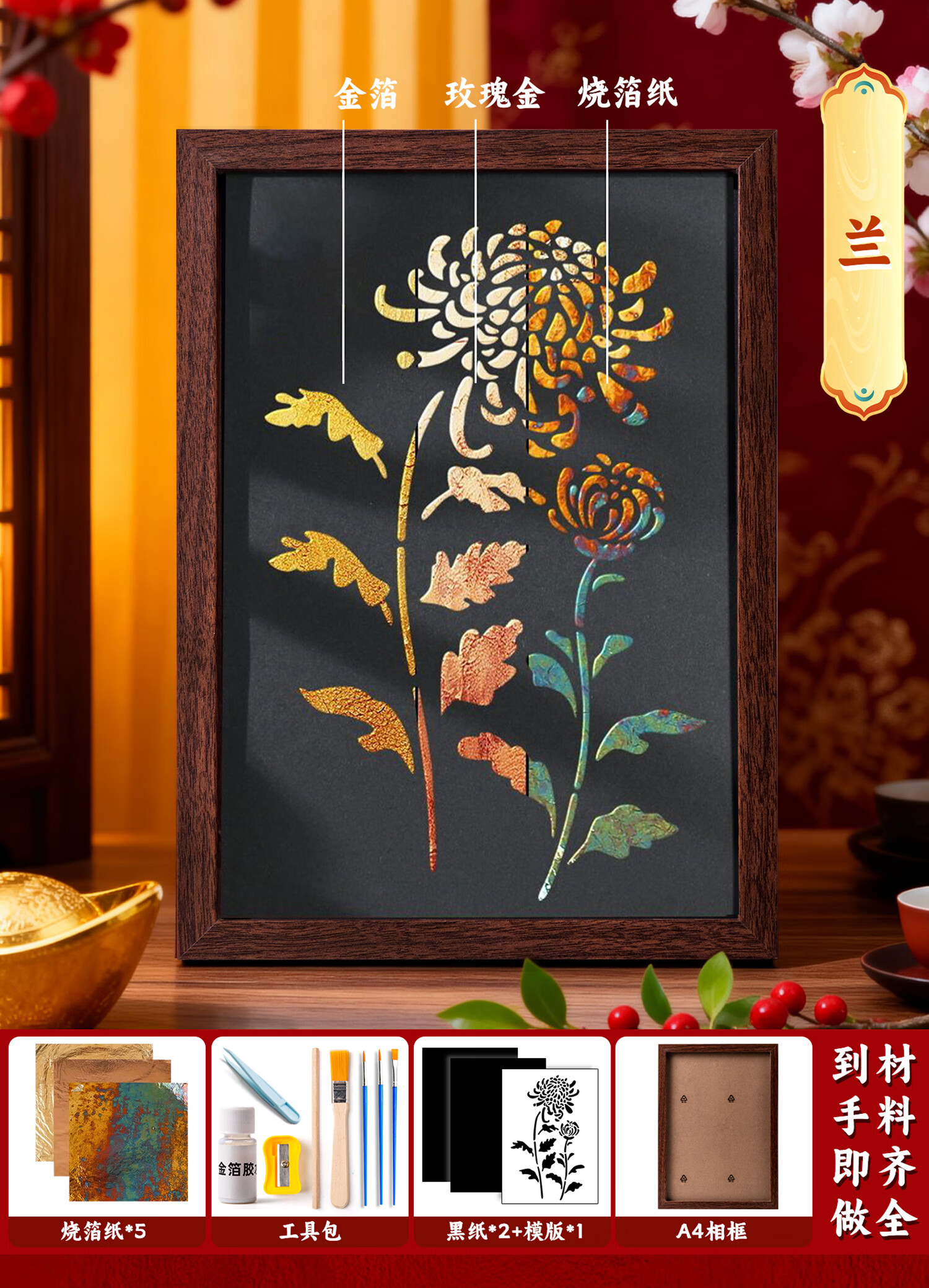 转悠非遗烧箔画材料包儿童创意礼品马年非遗烧箔画diy材料包金箔画装饰拓印铜箔儿童手工背景相框画 百福 【玫瑰金】黑底