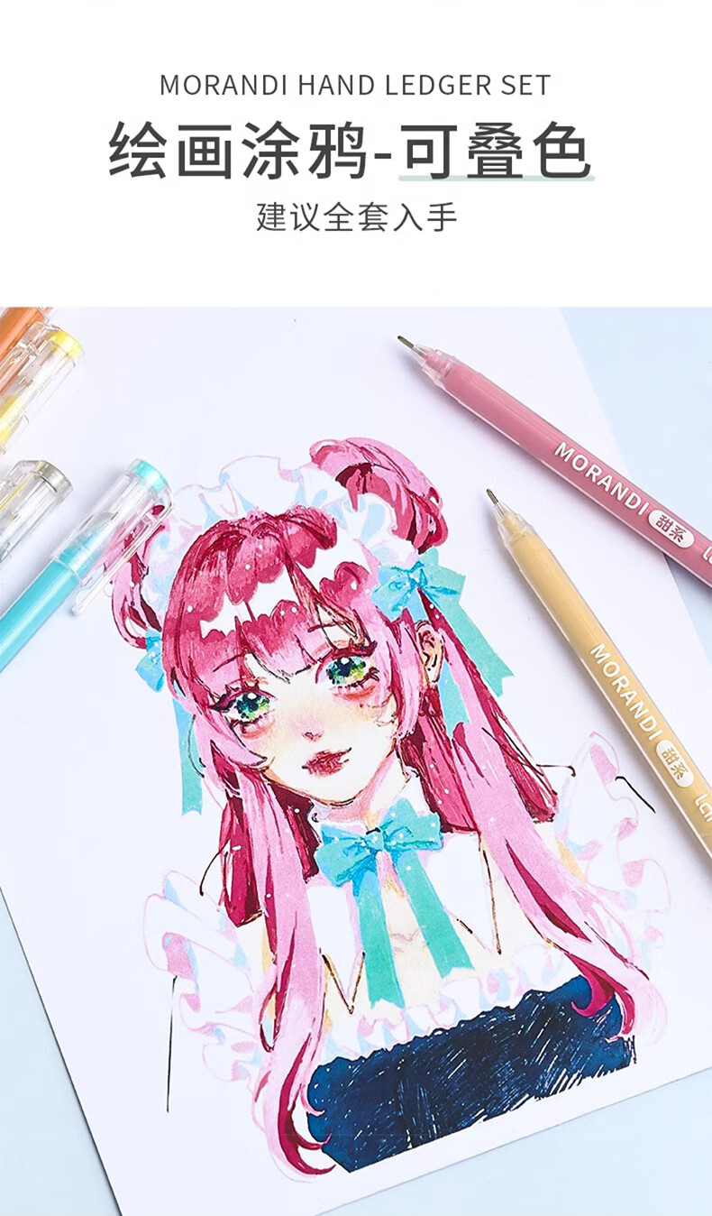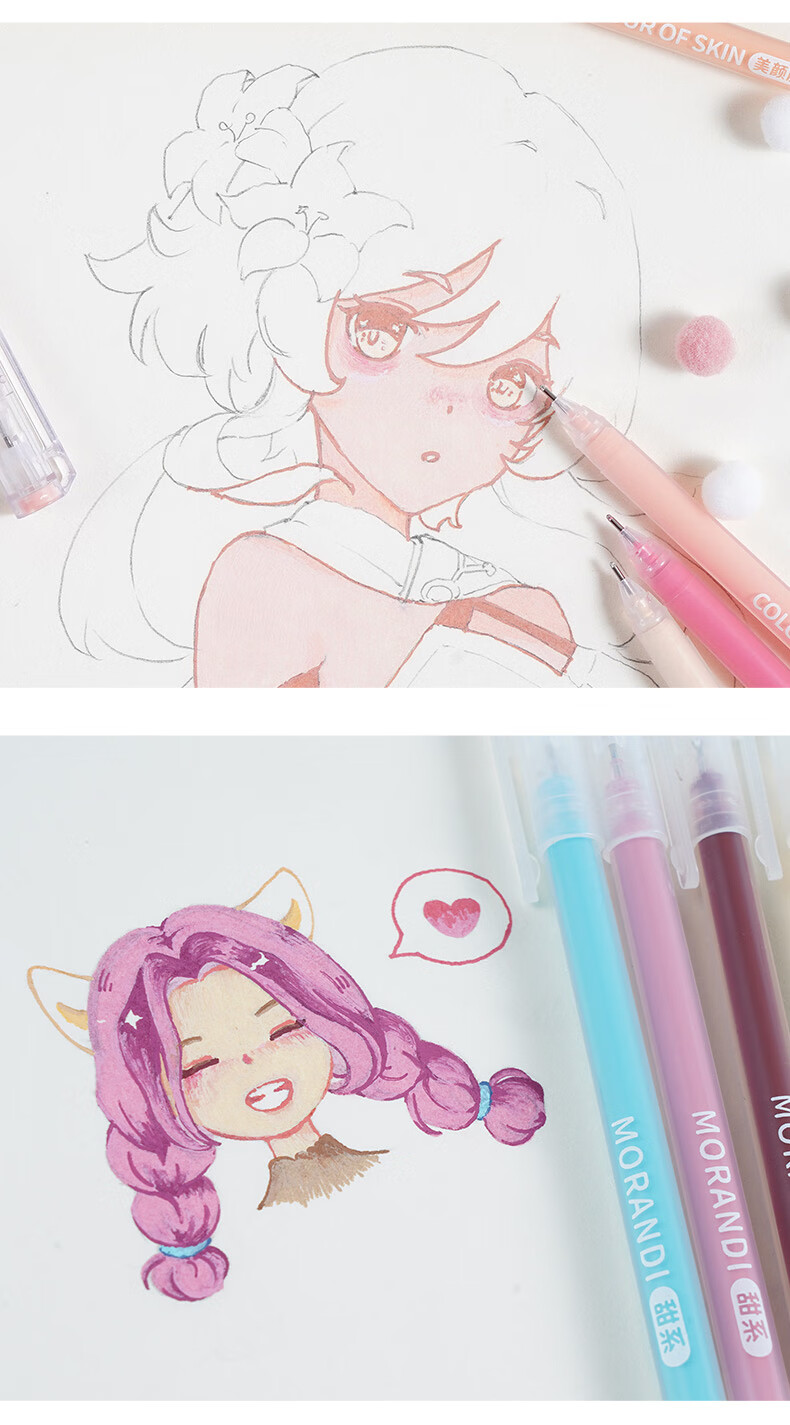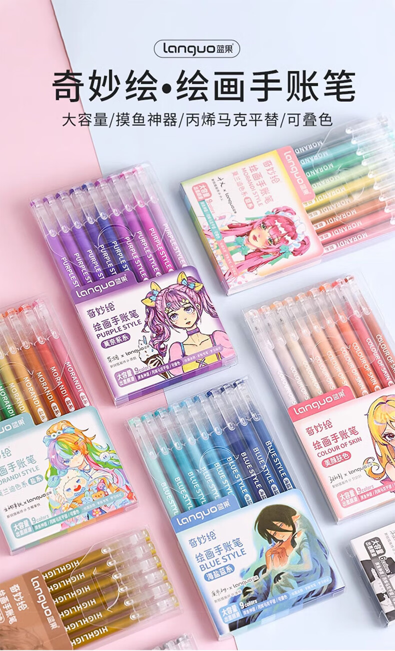 蓝果27支荧光笔手帐笔马克笔闪光特效彩色中性笔绘画专用做笔大容量图画笔多巴胺系+美颜肤色+朦胧淡彩
