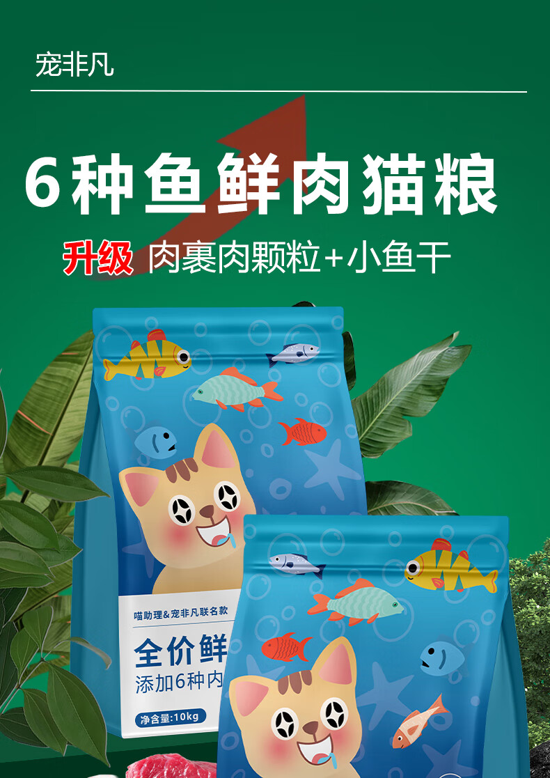 宠非凡六种鱼冻干猫粮10kg 小鱼干全价猫粮幼猫成猫冻干猫咪全阶段通用
