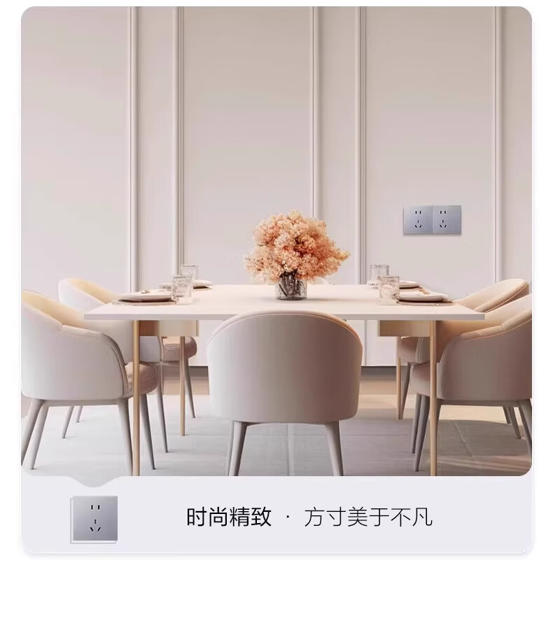 ABB开关插座面板 德典系列皓月灰 磨砂哑光奶油风 无边框 86型电源 斜五孔插座