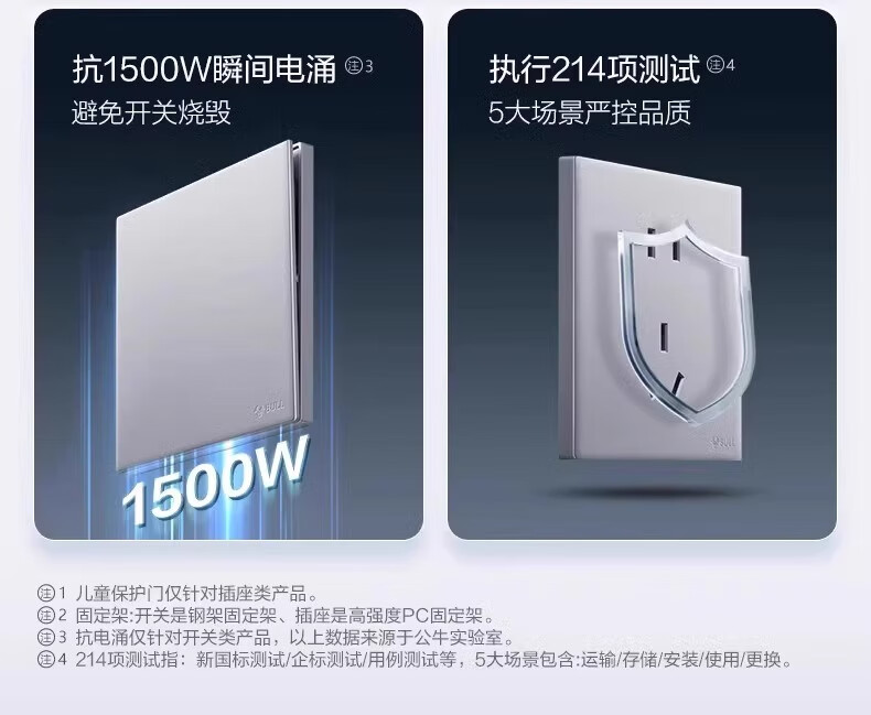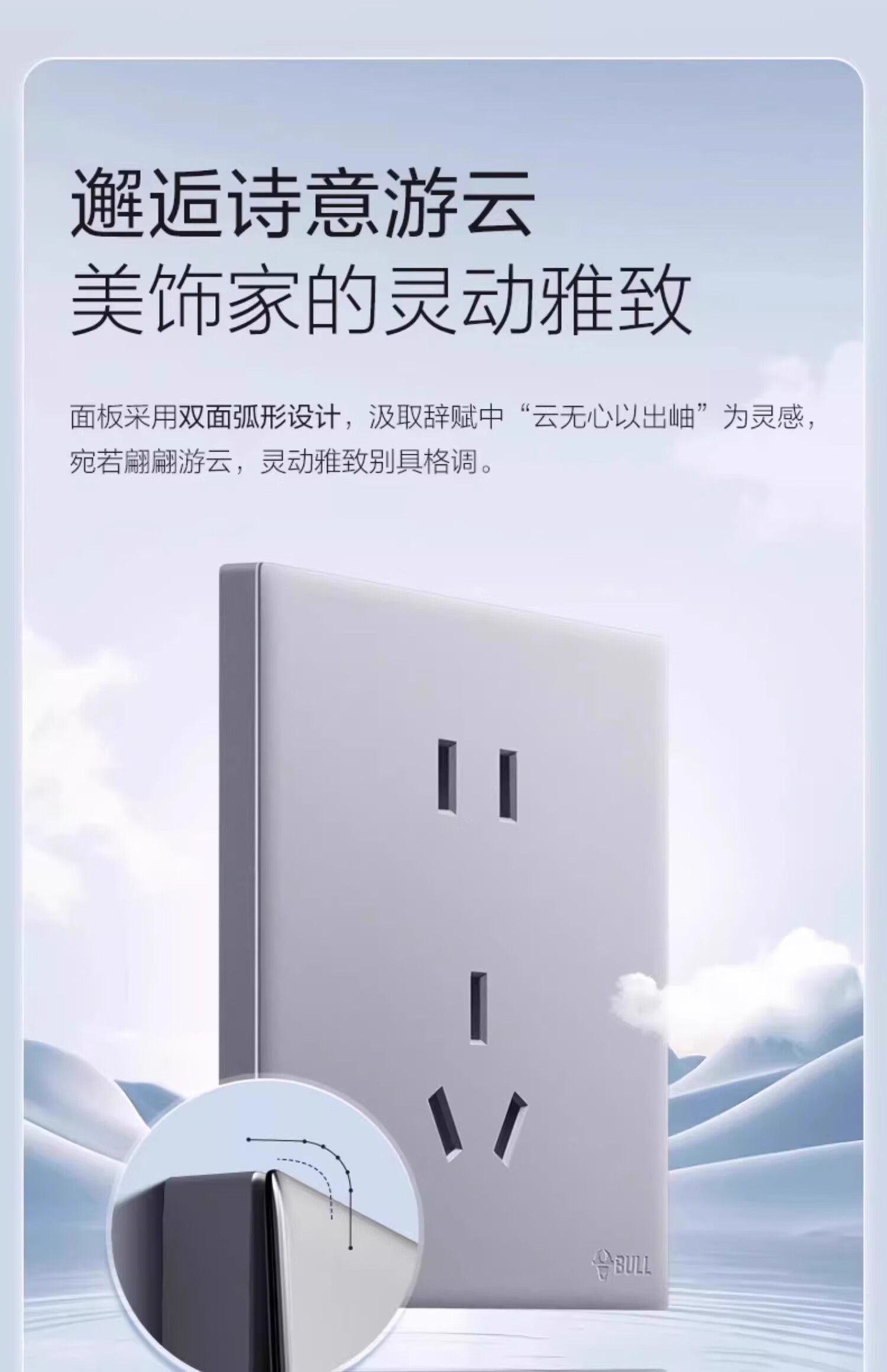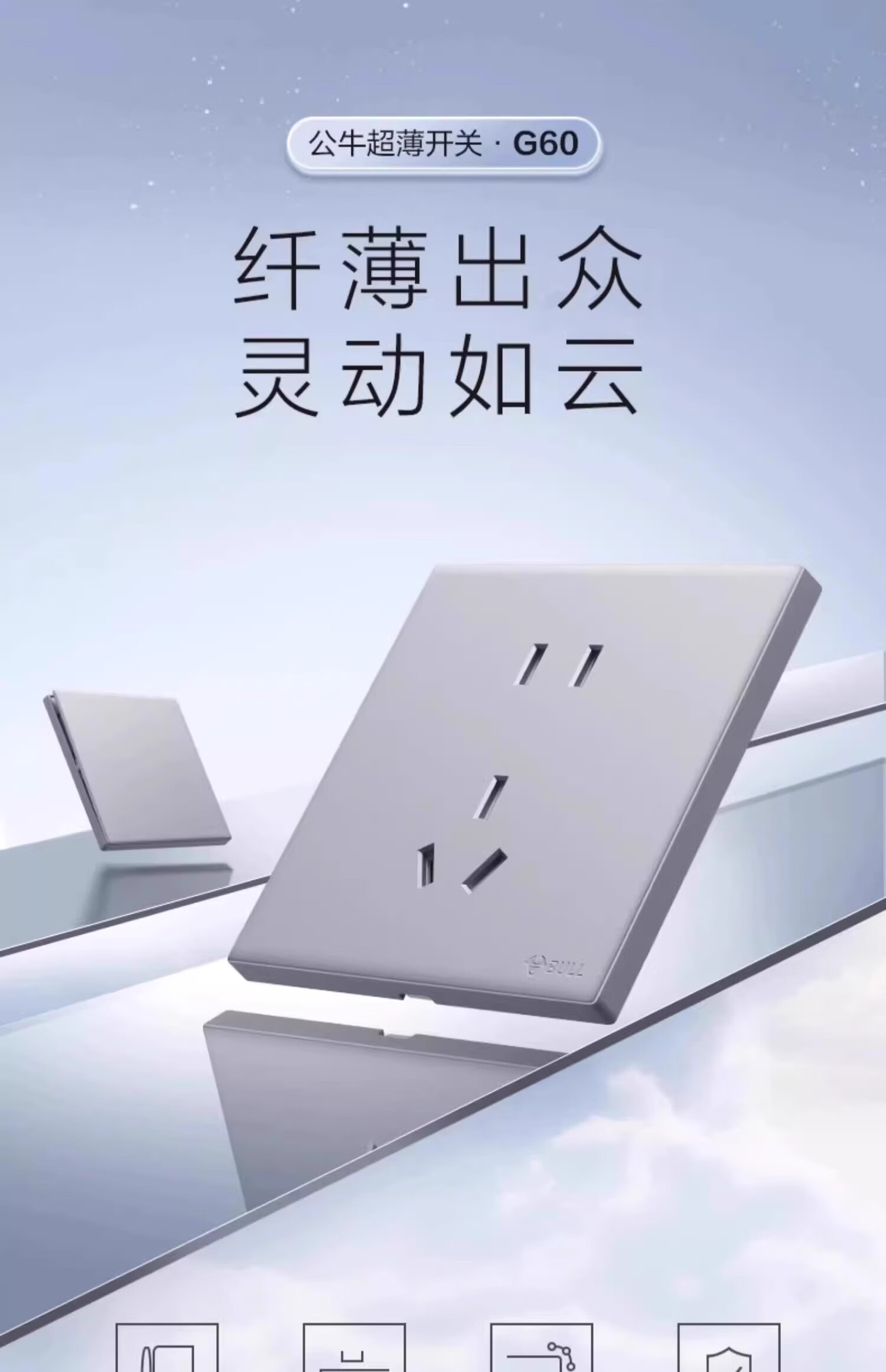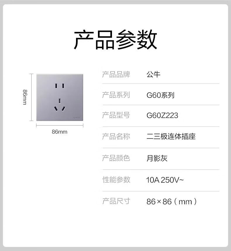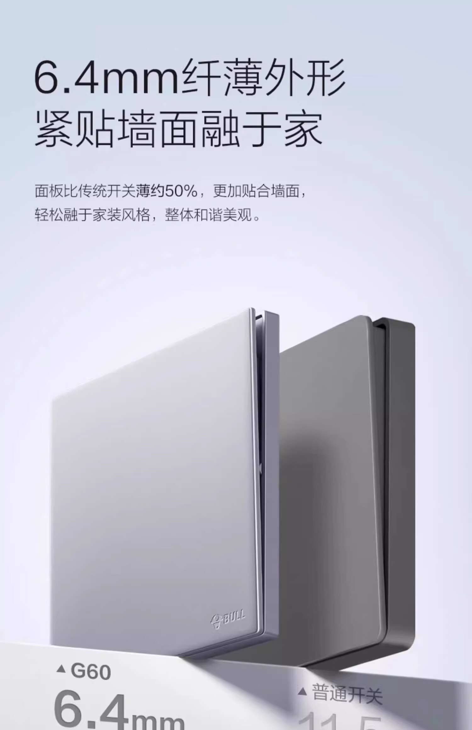公牛超薄开关五孔插座16安面板哑光奶油风哑光家用G60月影灰 一开双控【G60月影灰】