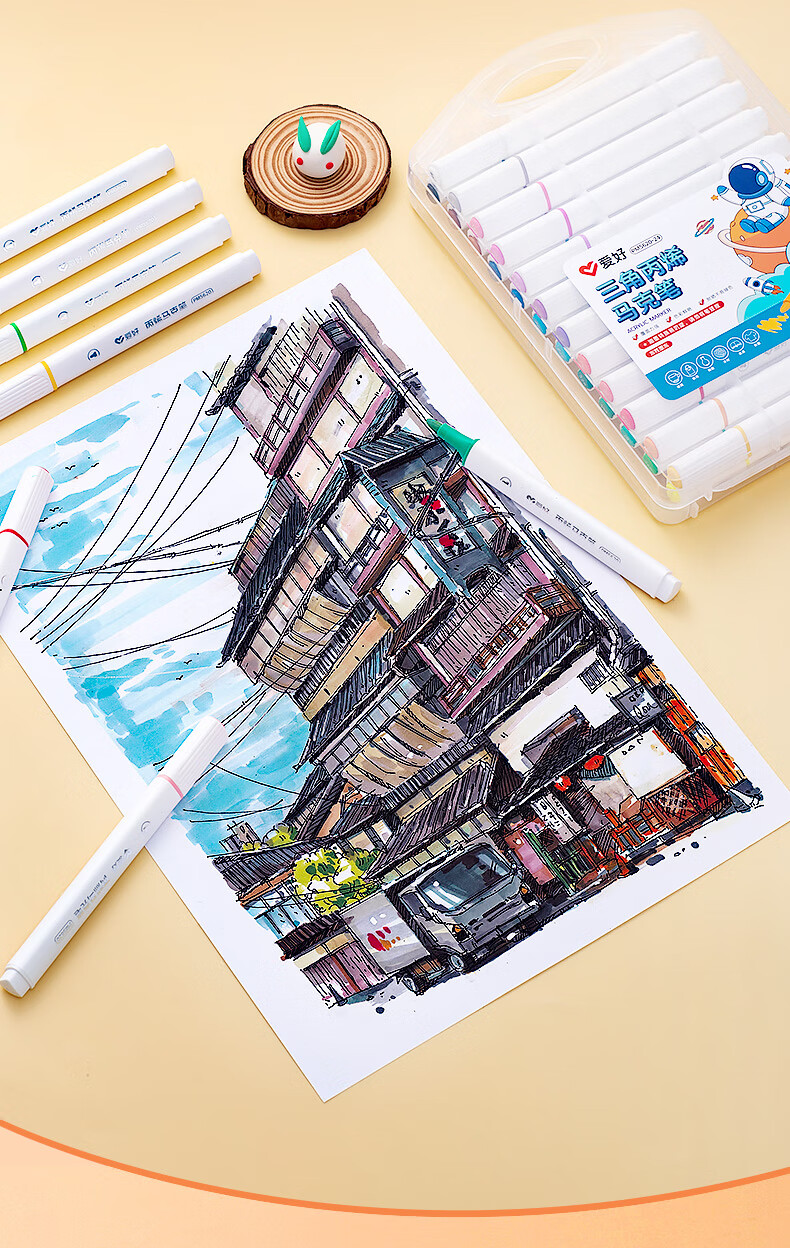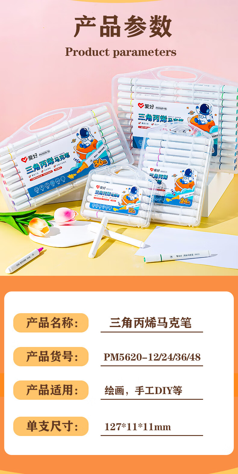 爱好(AIHAO)丙烯马克笔diy创意彩笔安全无毒不透色小学生涂鸦画笔套装12色 PM5620水彩笔美育