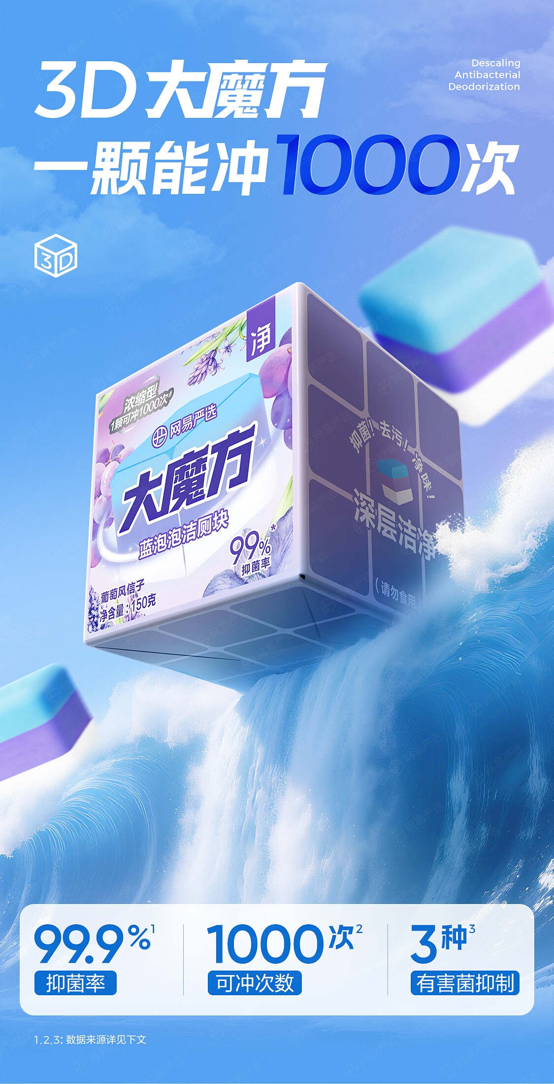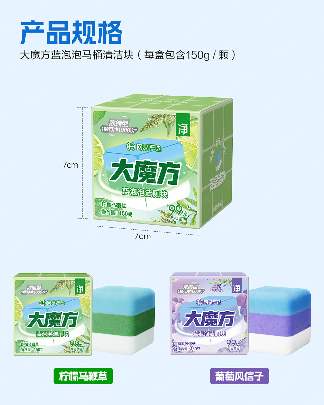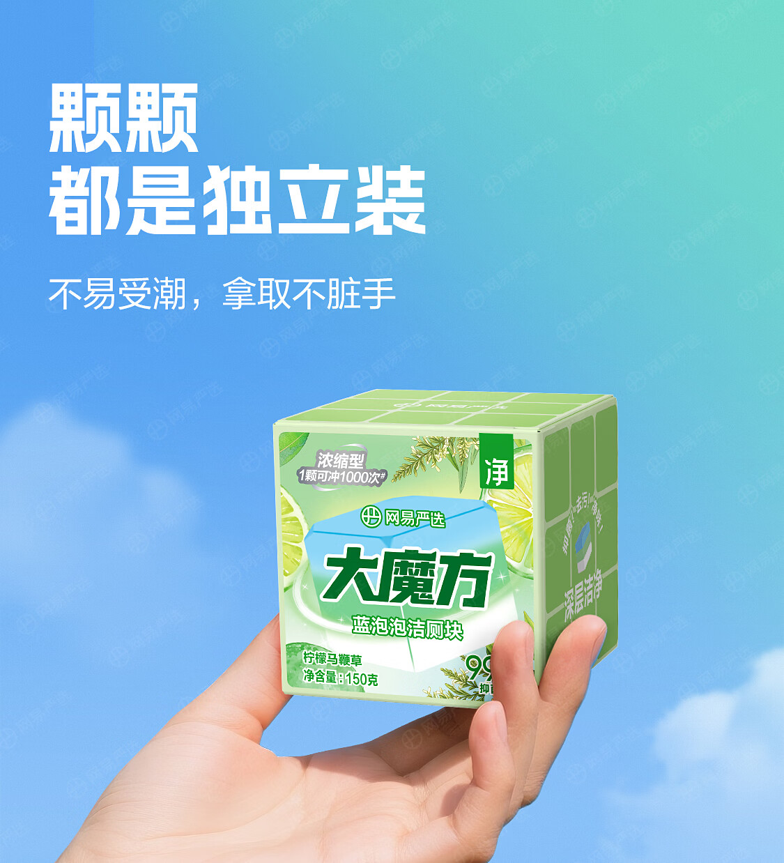 网易严选大魔方蓝泡泡洁厕宝马桶香薰马桶清洁剂强力除垢清香除臭洁厕灵 大魔方柠檬马鞭草 150g 1个