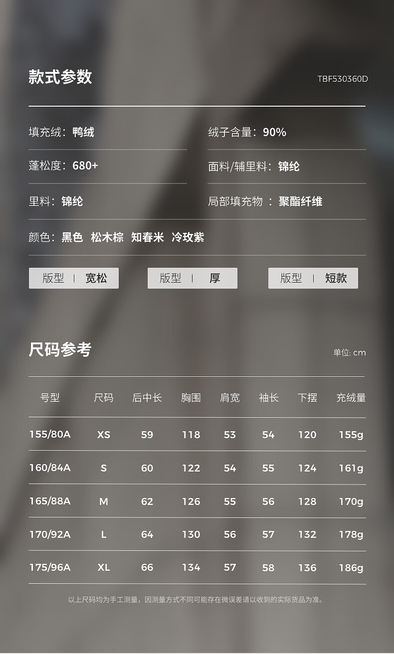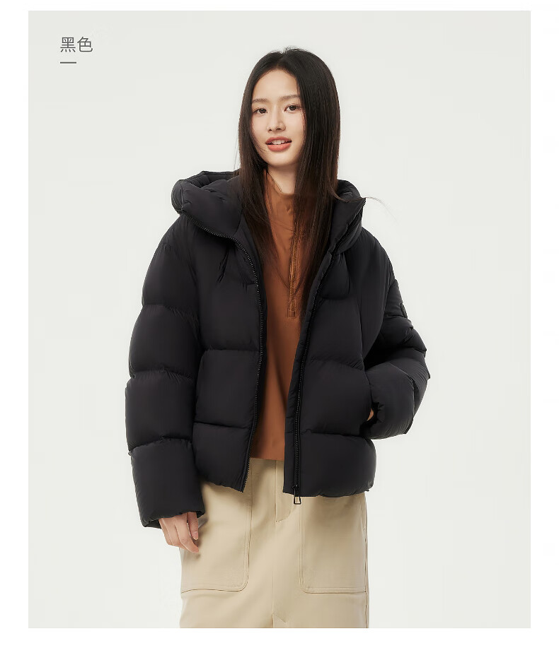 坦博尔羽绒服女短款连帽显瘦小个子女士羽绒面包服530360D 黑色 160