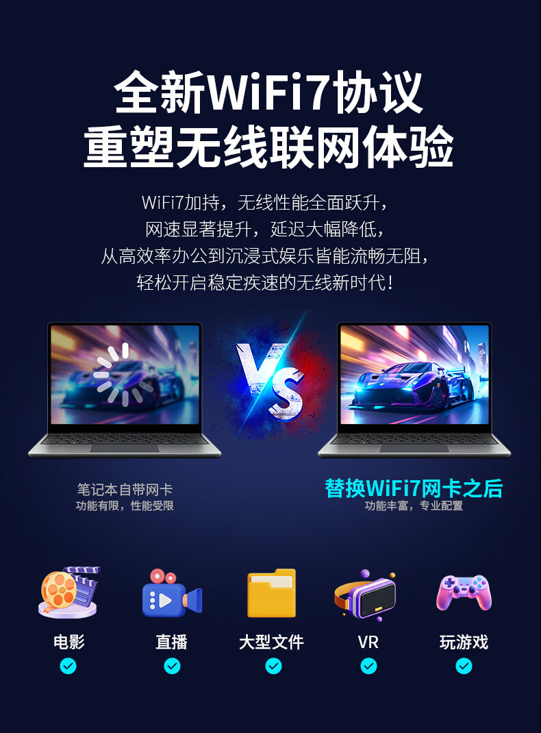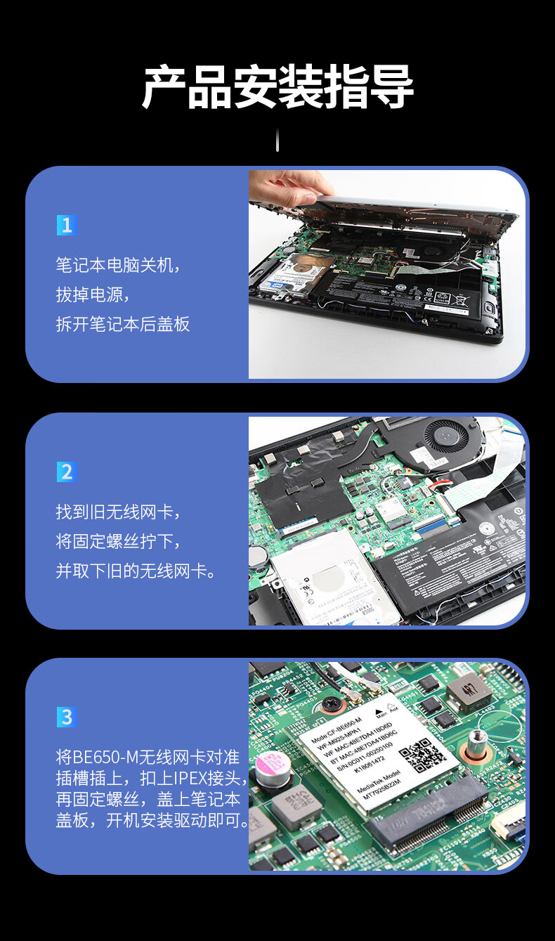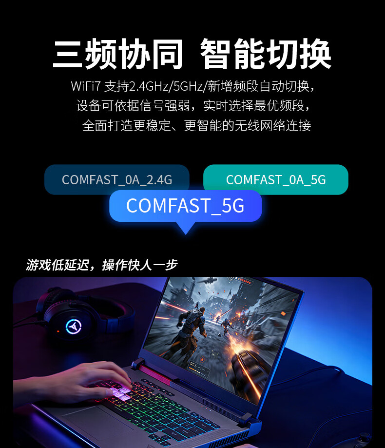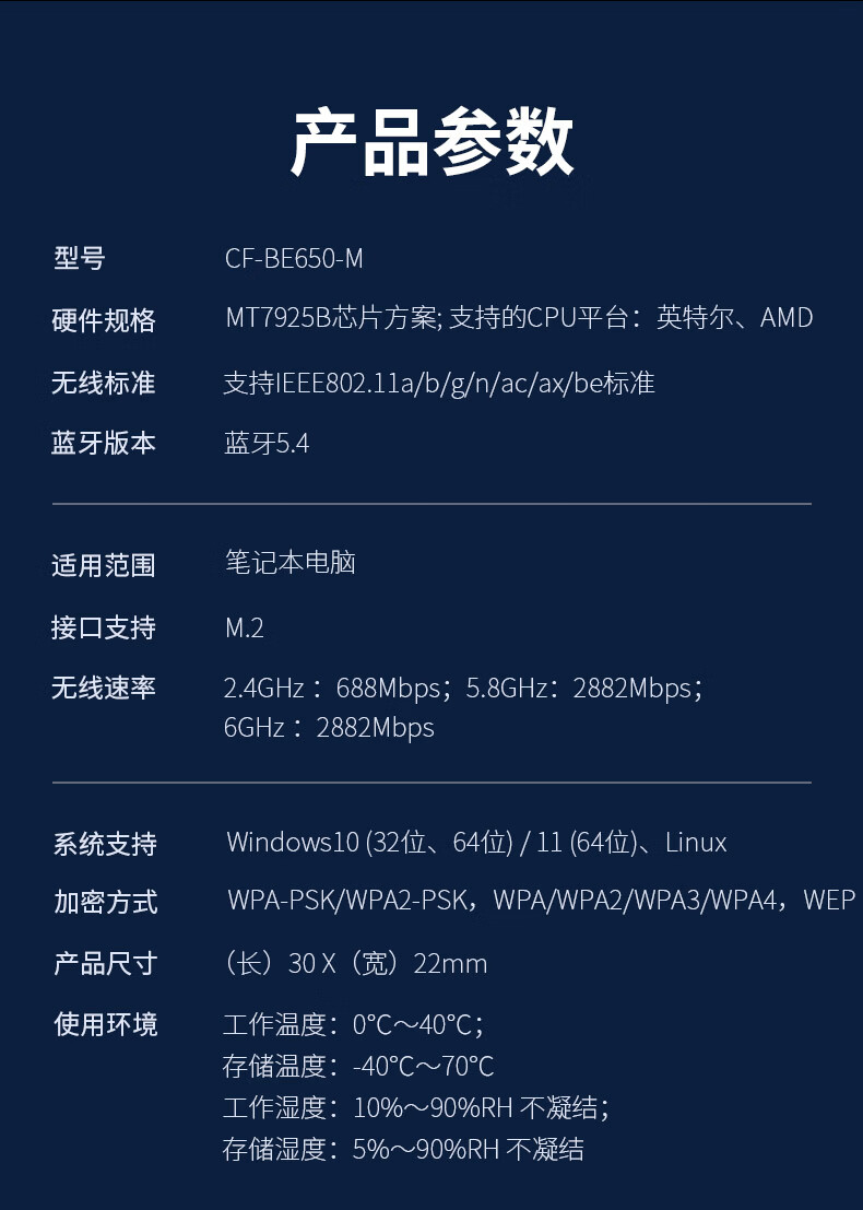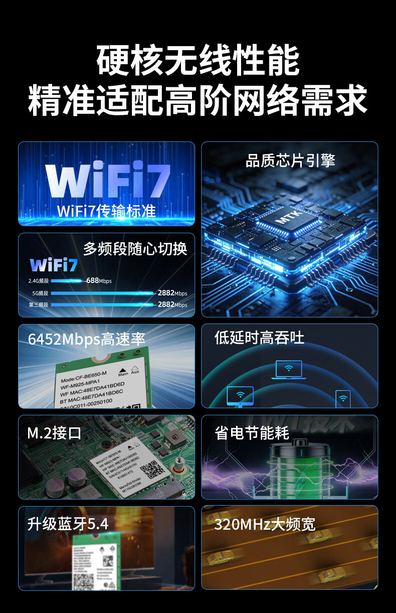 COMFAST BE6500 WIFI7无线网卡笔记本电脑内置M.2 5G双频千兆蓝牙5.4网络信号wifi接收器支持AMD BE650-M