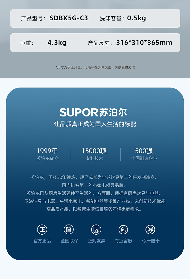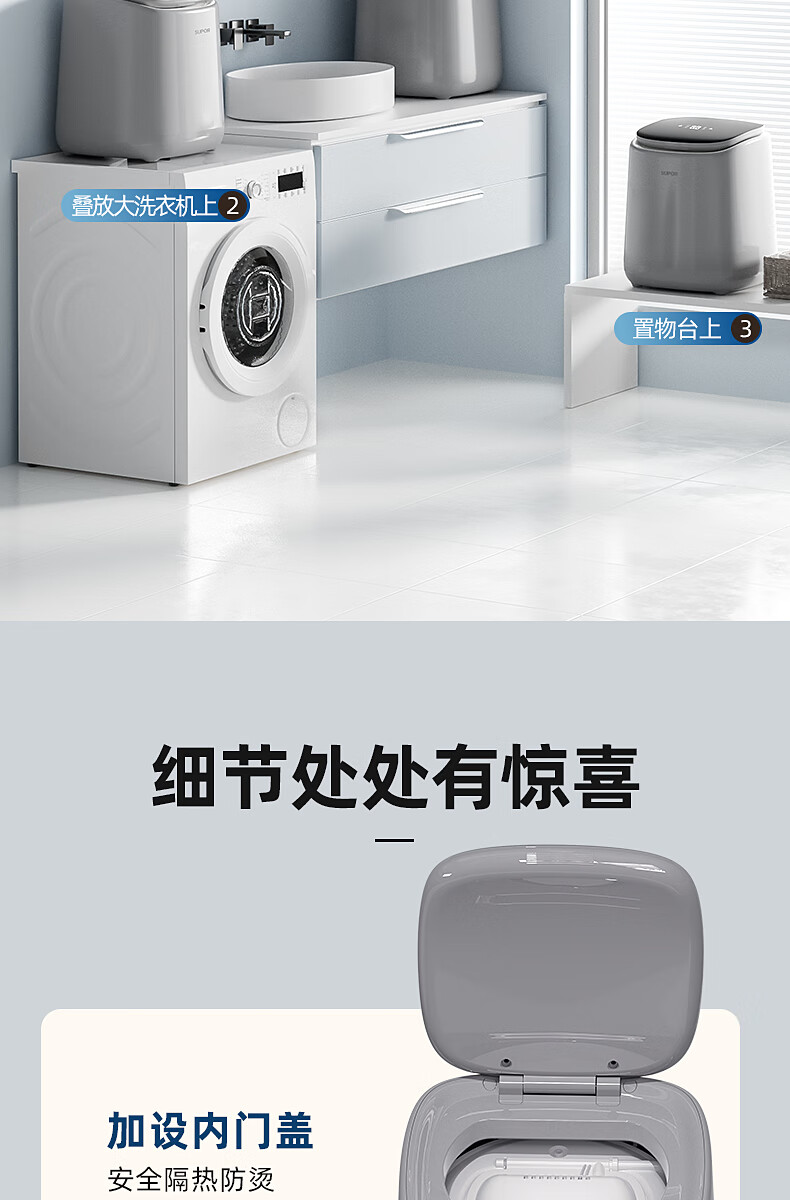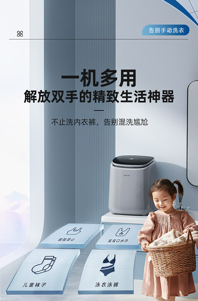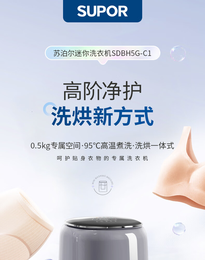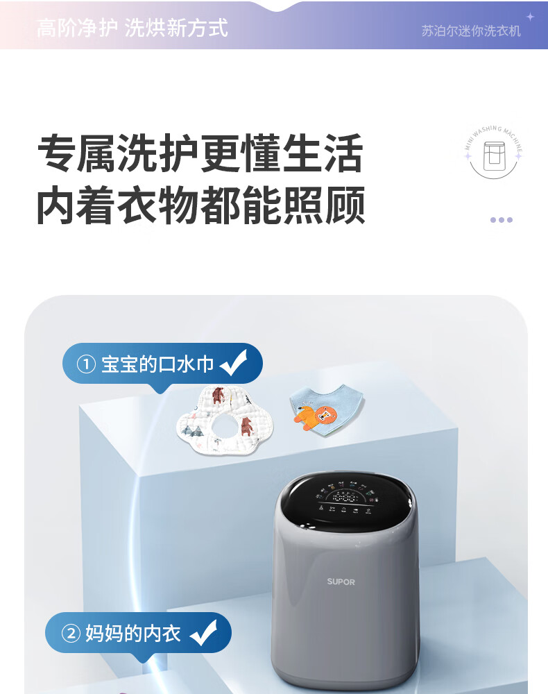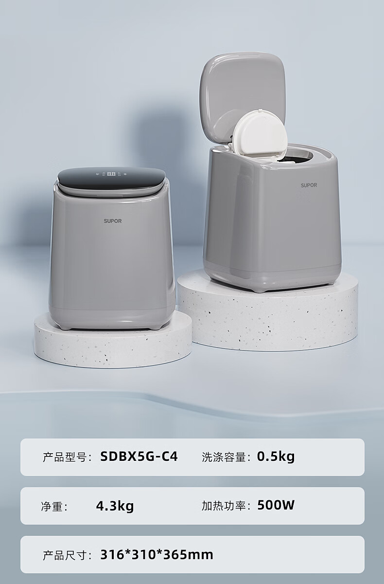 苏泊尔(SUPOR)内衣洗衣机 内衣裤洗衣机波轮0.5kg 台式宿舍洗袜子专用迷你洗衣机小型 全自动洗脱一体婴儿洗衣机 【单洗】优选性价比丨C3 波轮