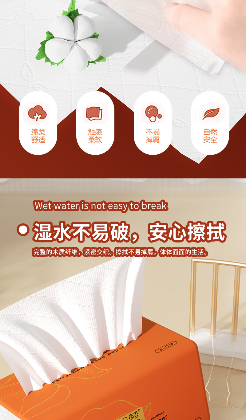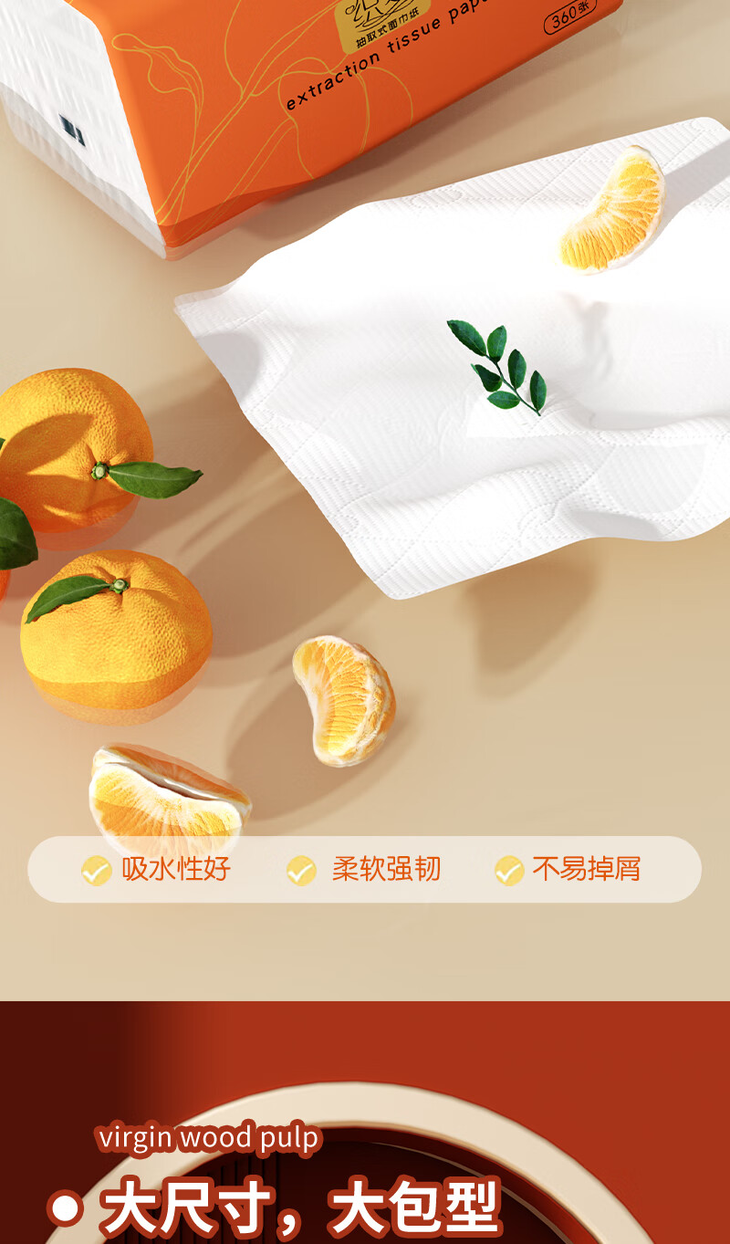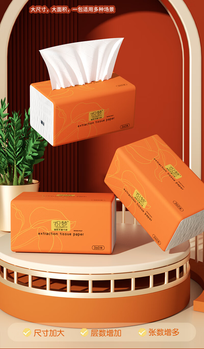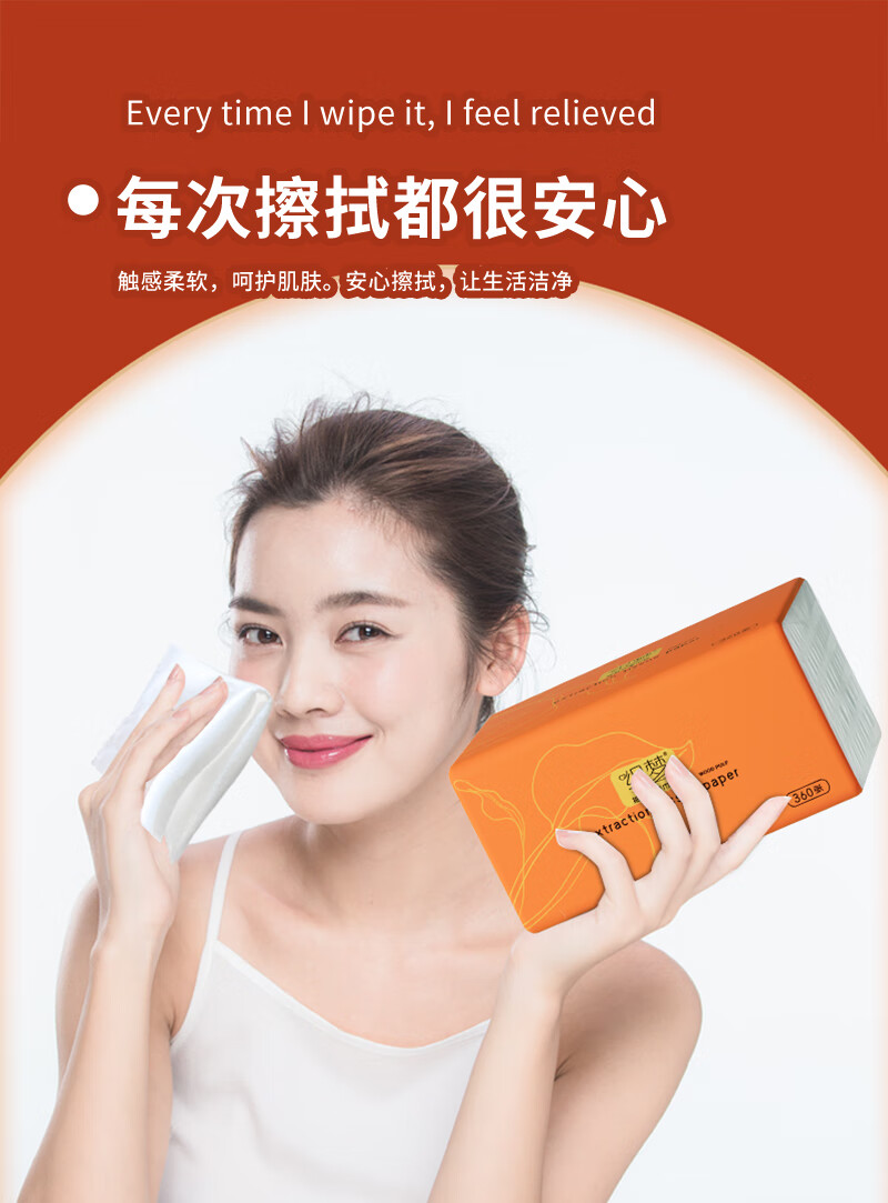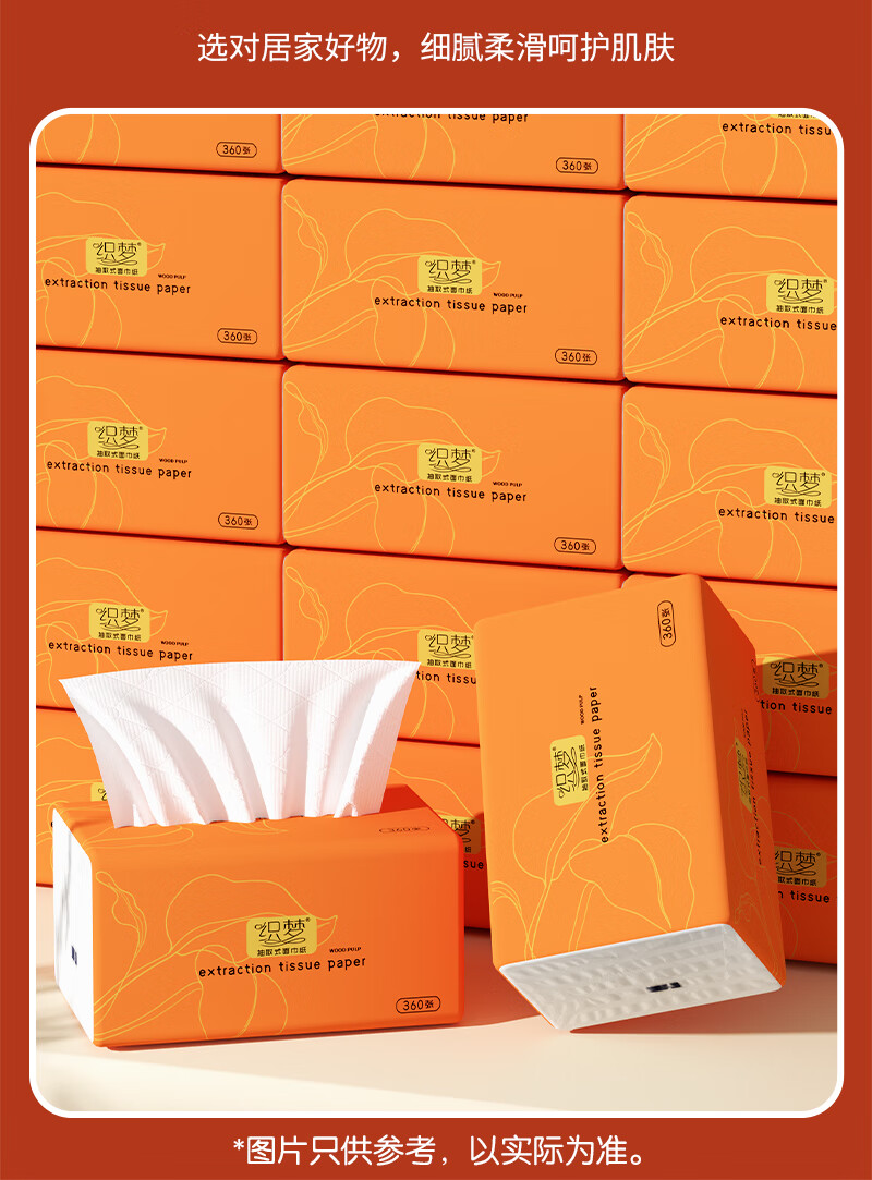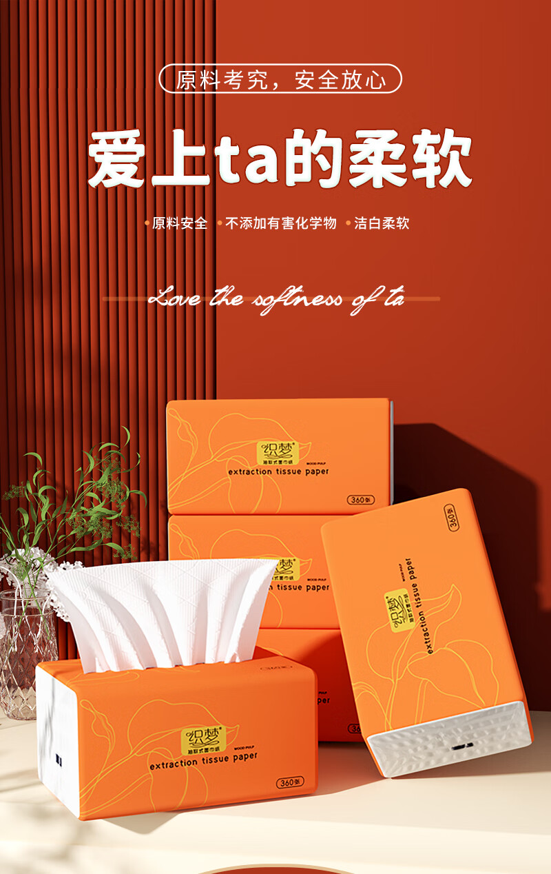 织梦【甄选好物】 大包抽纸巾4层360张木浆本色纸巾抽餐巾纸卫生纸抽 24包