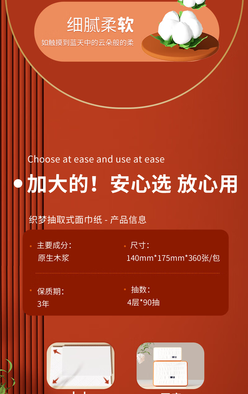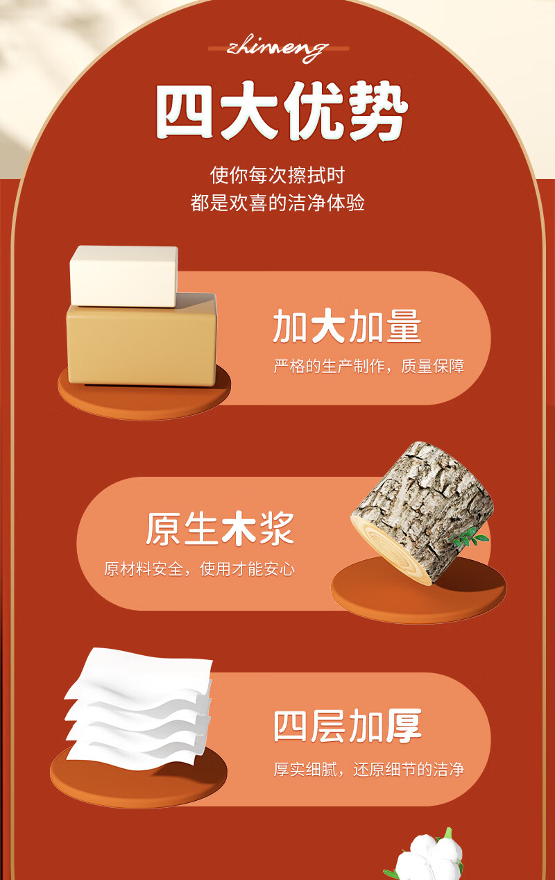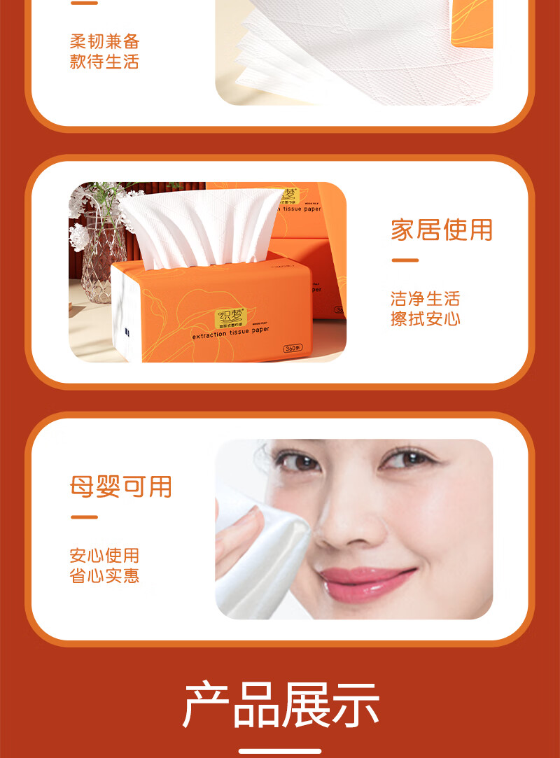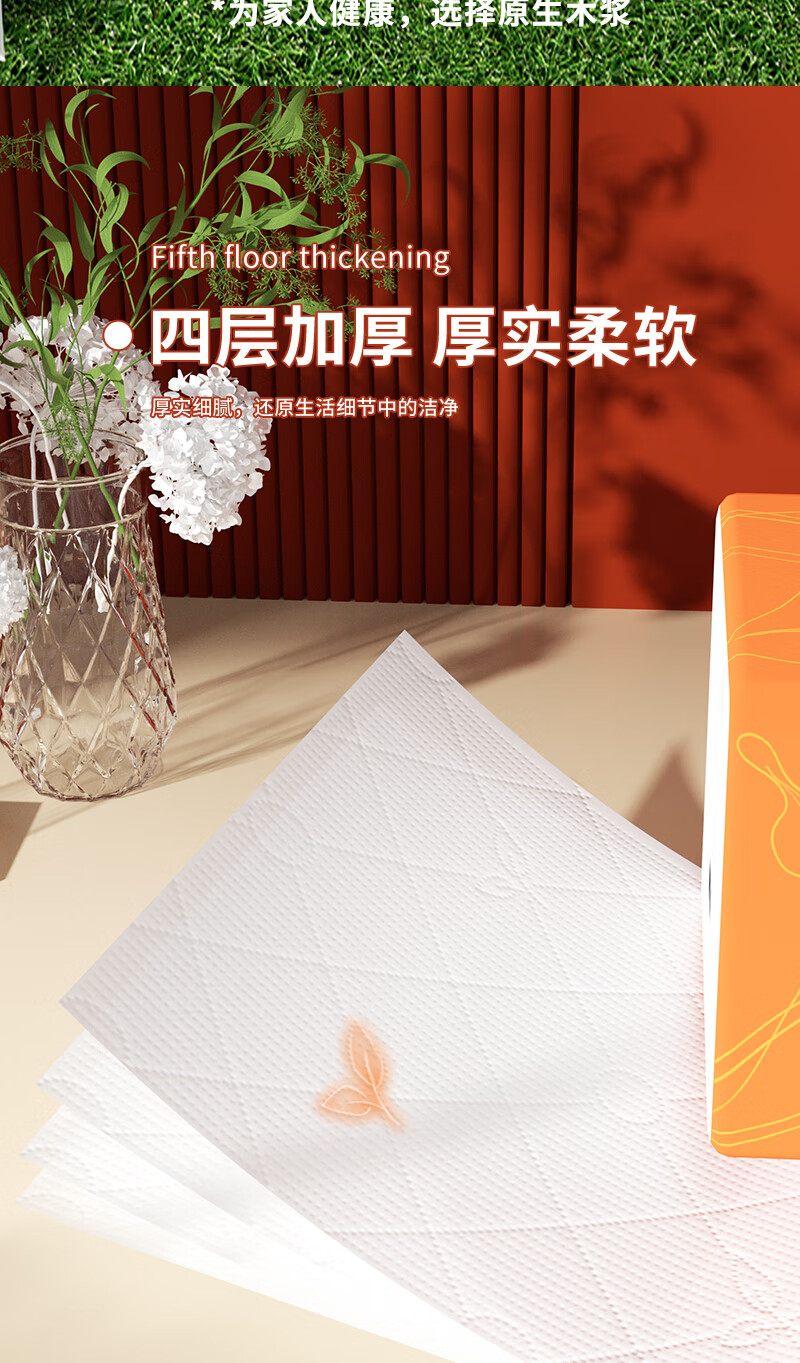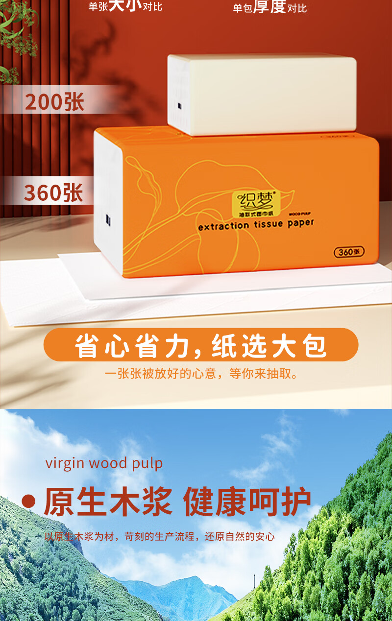 织梦【甄选好物】 大包抽纸巾4层360张木浆本色纸巾抽餐巾纸卫生纸抽 24包