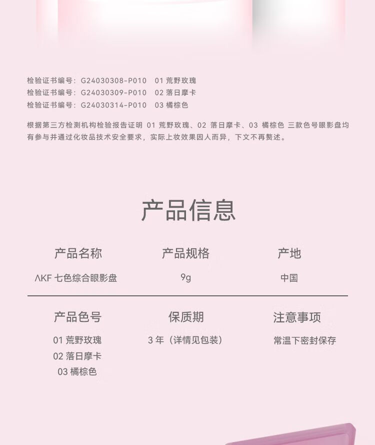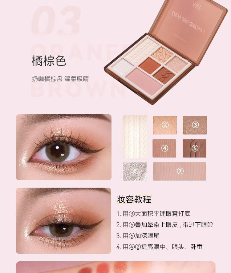 AKF【官方正品】AKF七色综合眼影盘修容腮红高光一体盘化妆秋冬妆容 AKF七色眼影盘#【03橘棕色】