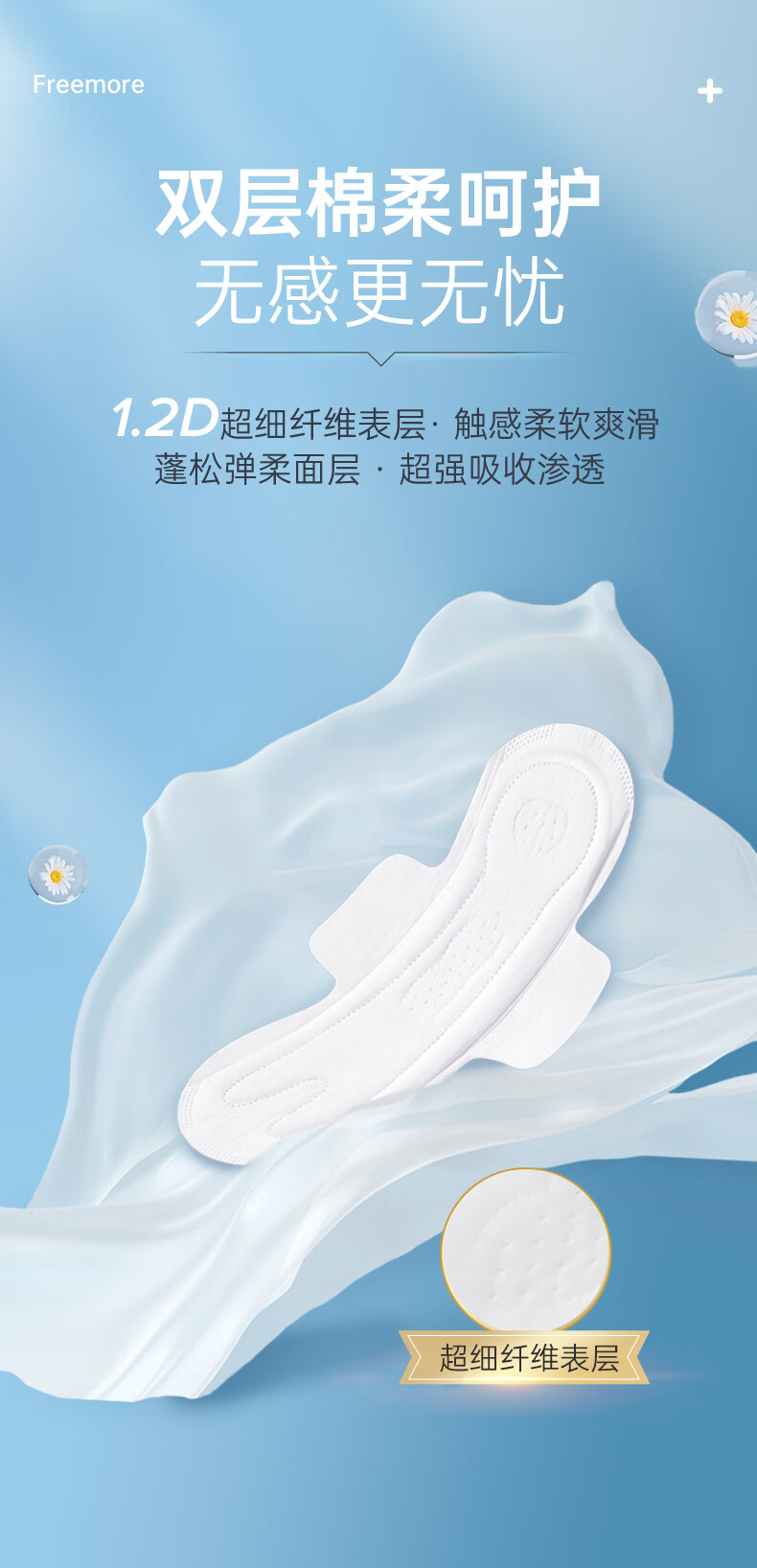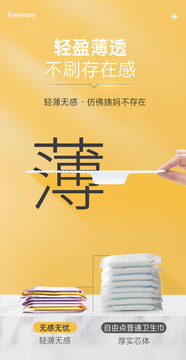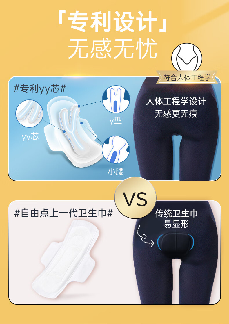 自由点商超同款无感7日无感无忧双层棉柔YY芯卫生巾姨妈巾【安心品质】 空气单月量8包66片