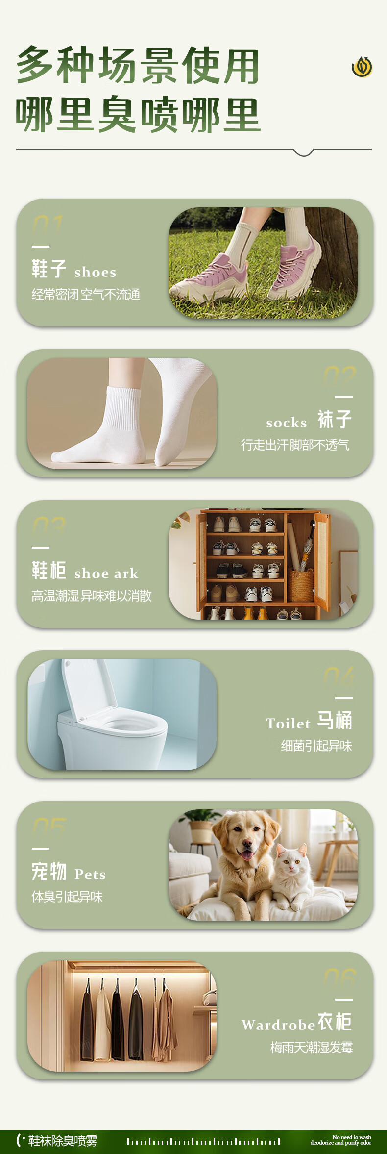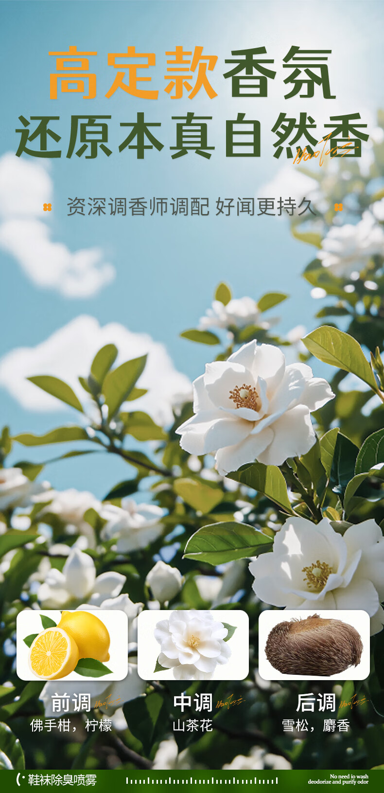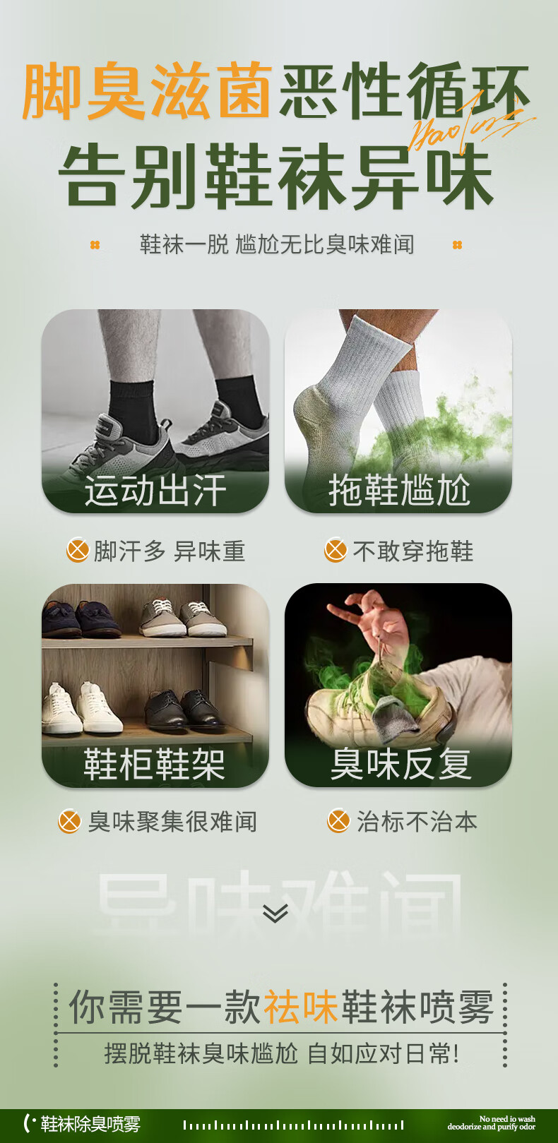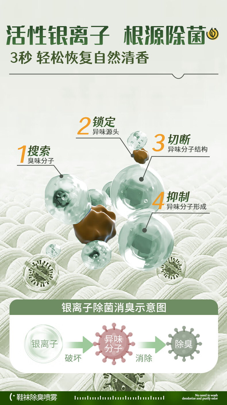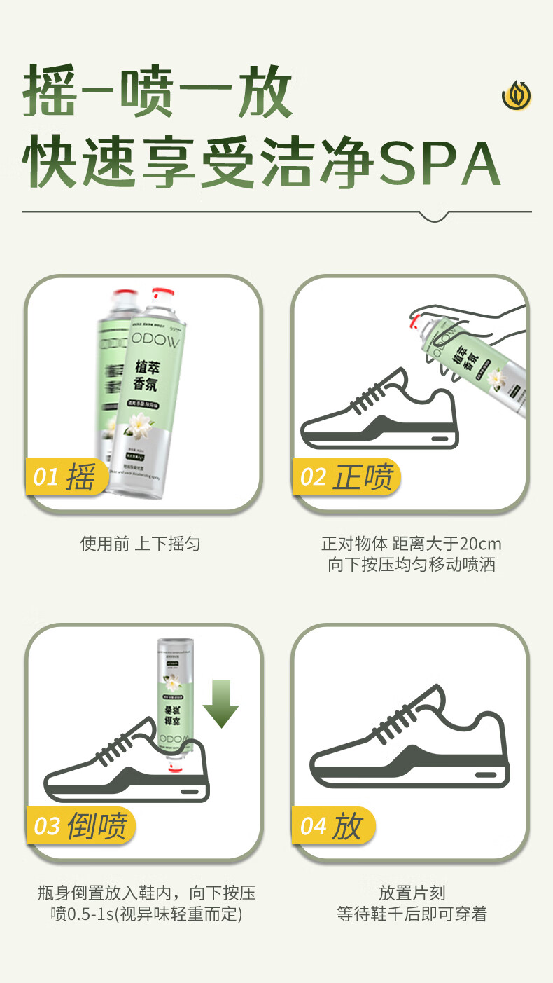 ODOW鞋袜除臭喷雾鞋子除臭剂银离子去脚臭抑菌去除味留香空气清新剂 【3瓶装】栀子花香鞋子除臭喷雾 360ml