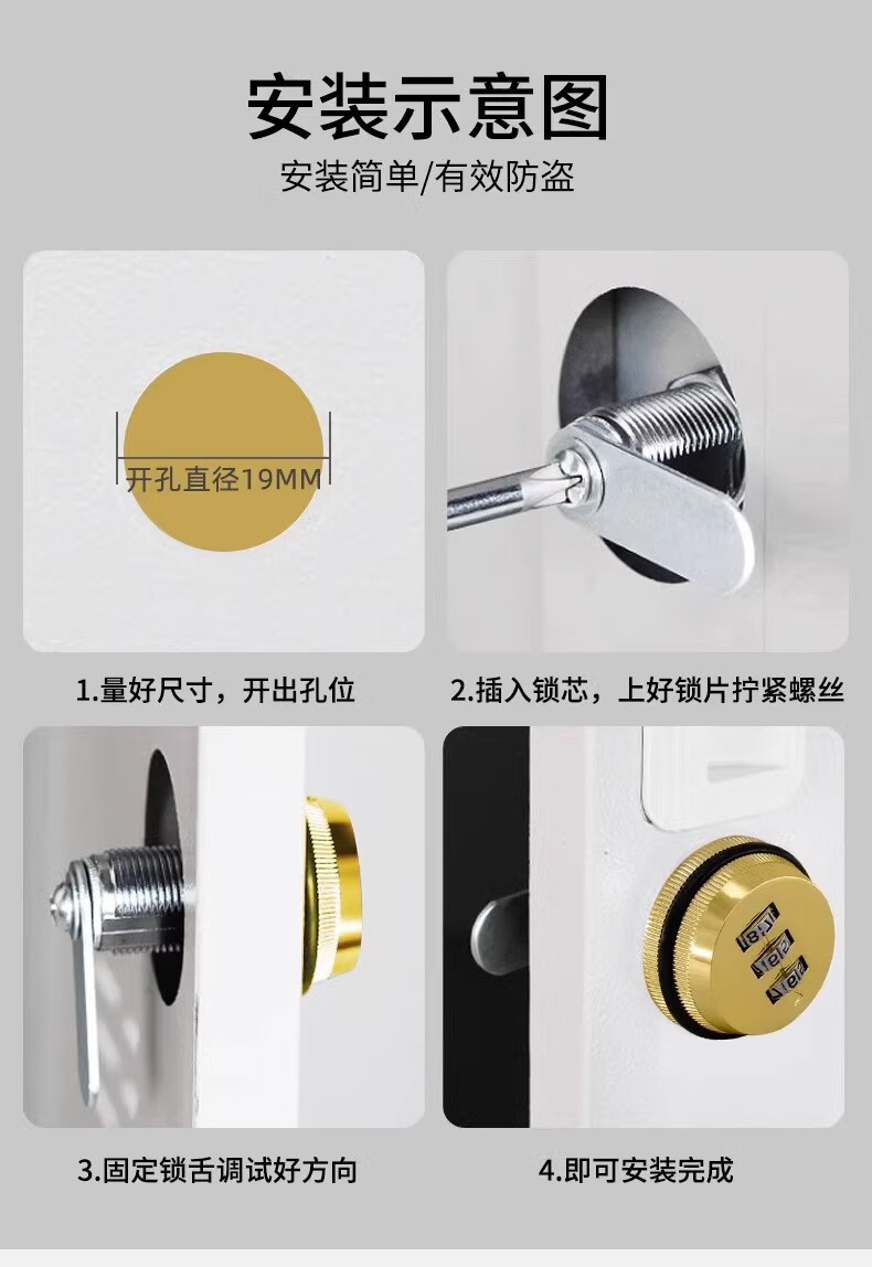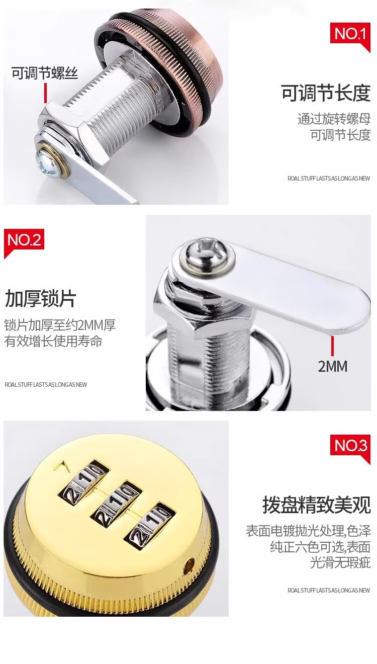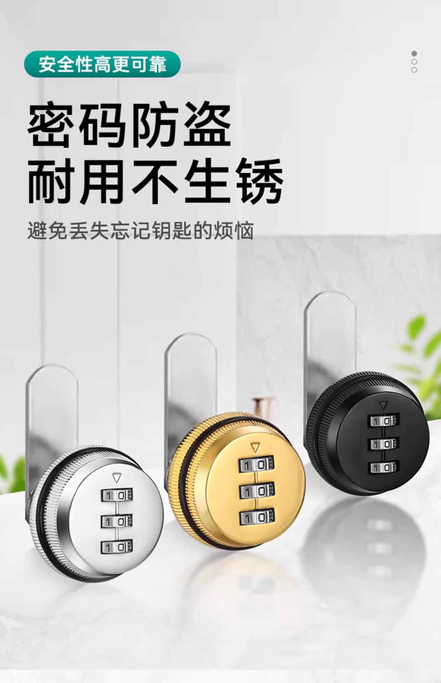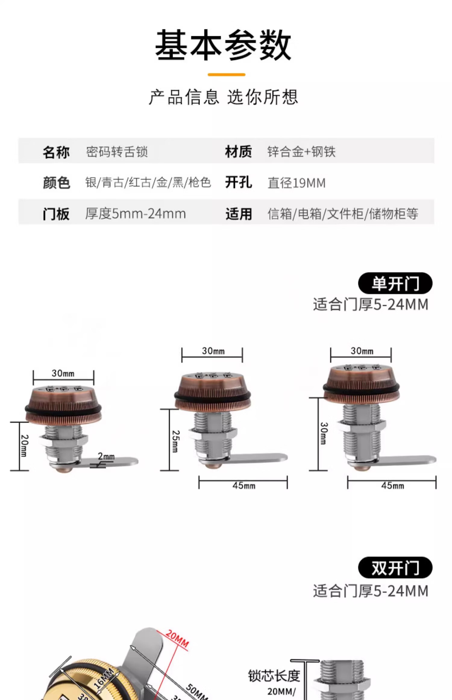 雅鼎帝机械密码锁防盗锁抽屉锁衣橱柜锁文件柜锁数字密码轮锁柜门锁盒锁 红古30MM/单门【18到24MM板厚】