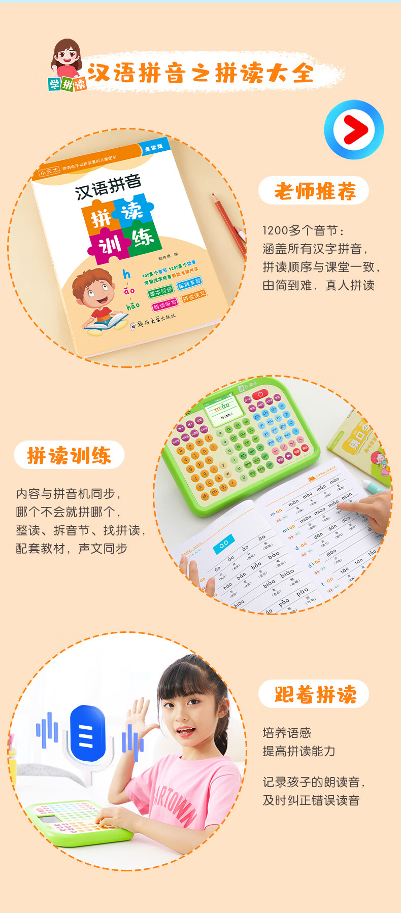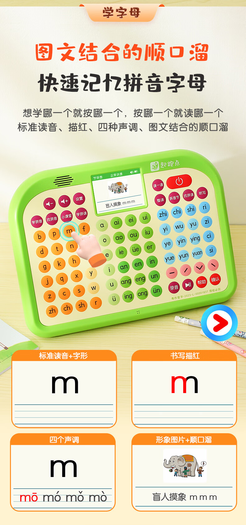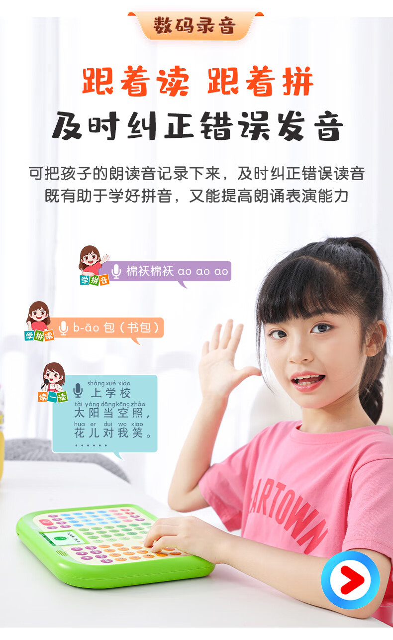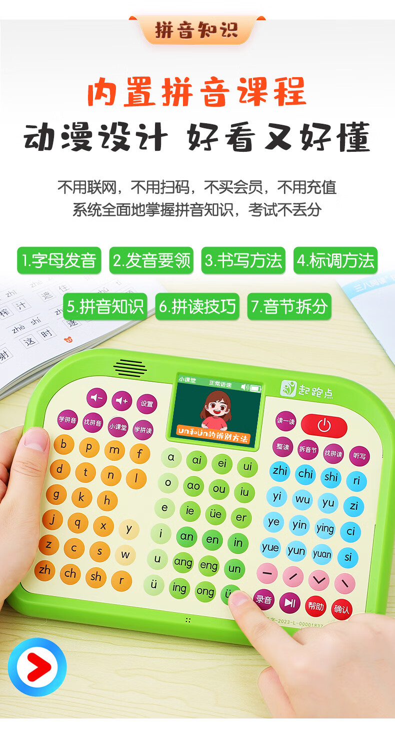 起跑点拼音学习机拼音拼读训练神器幼小衔接一年级同步新教材3-8岁儿童玩具识字早教点读机认读机学练机 【A1】拼音机(认读/拼读/听写)