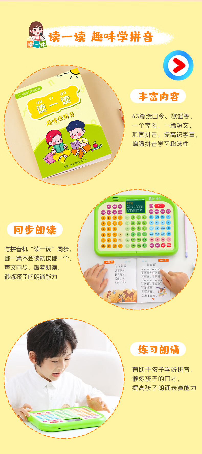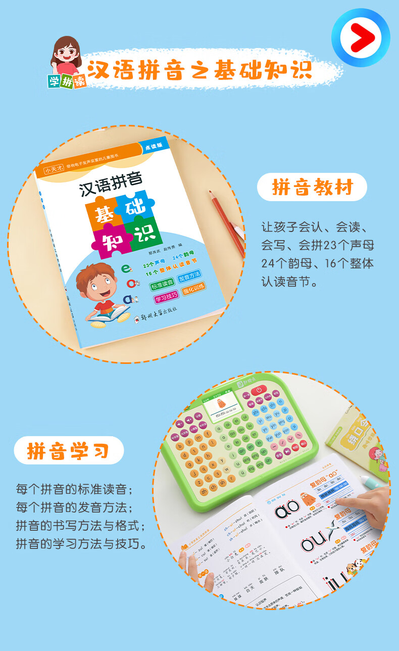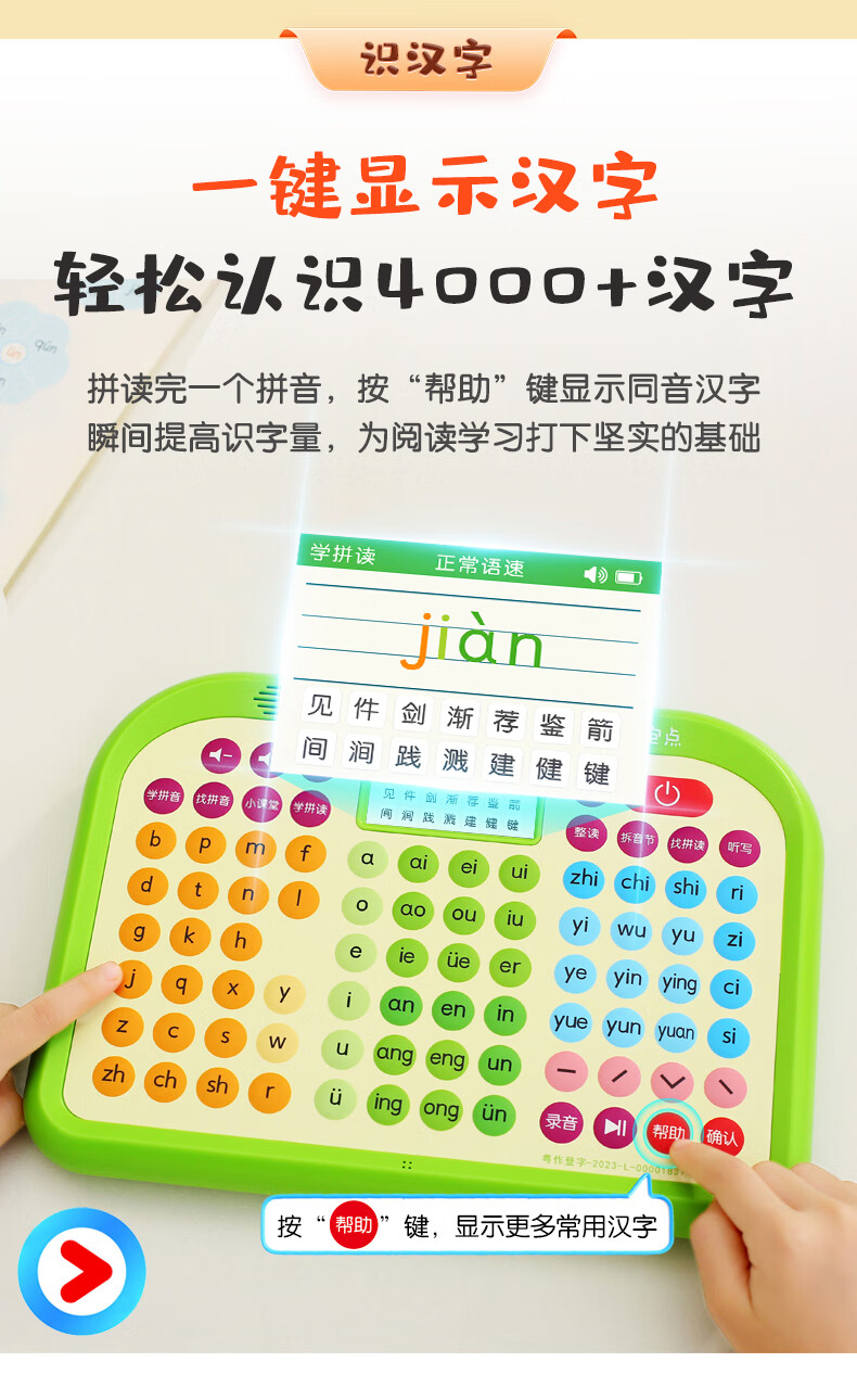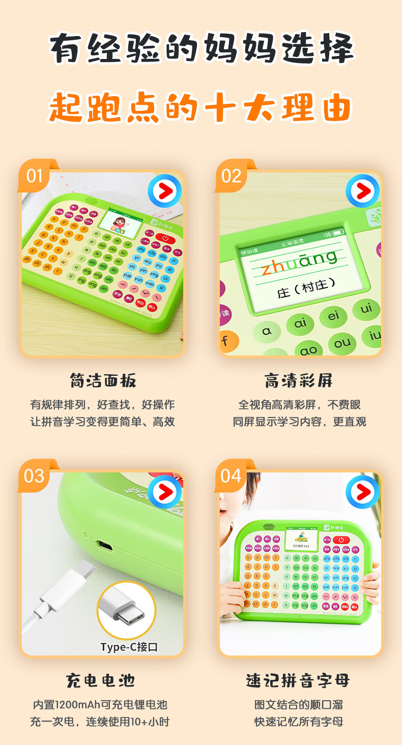 起跑点拼音学习机拼音拼读训练神器幼小衔接一年级同步新教材3-8岁儿童玩具识字早教点读机认读机学练机 【A1】拼音机(认读/拼读/听写)