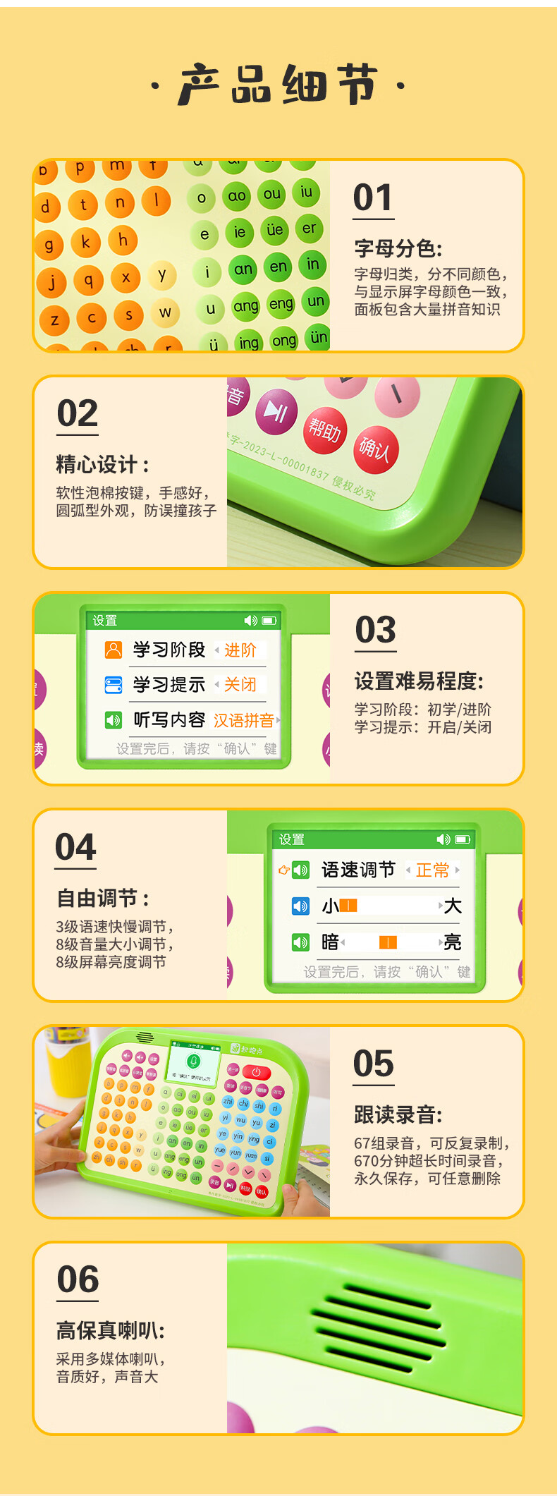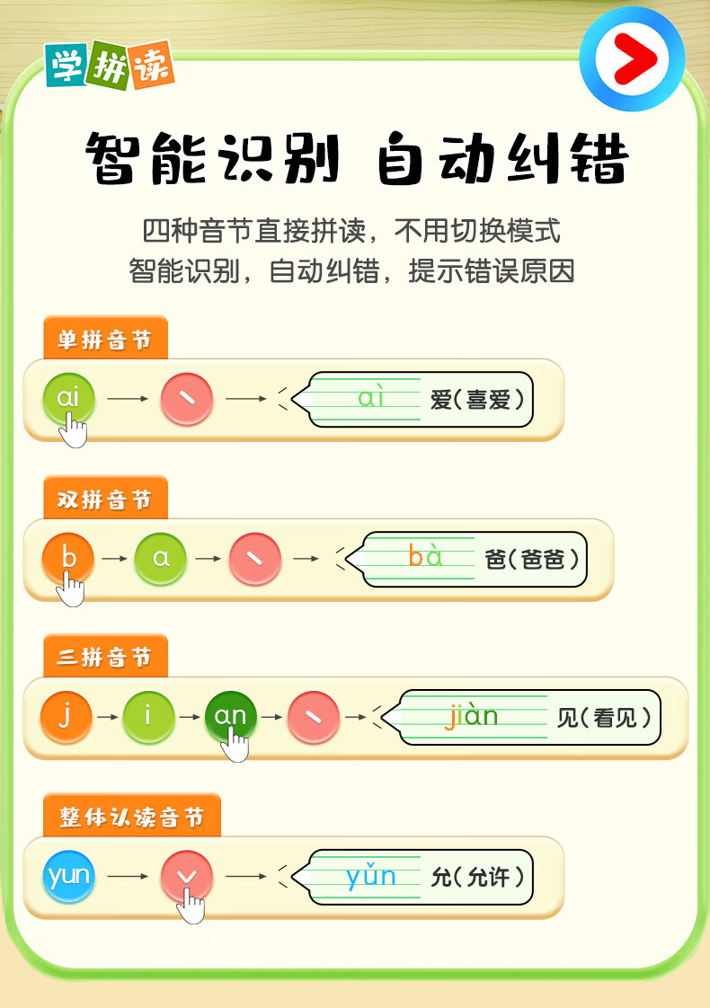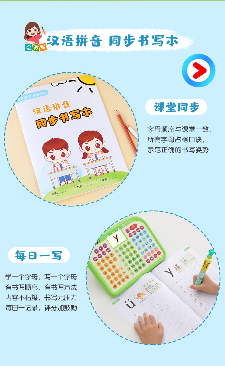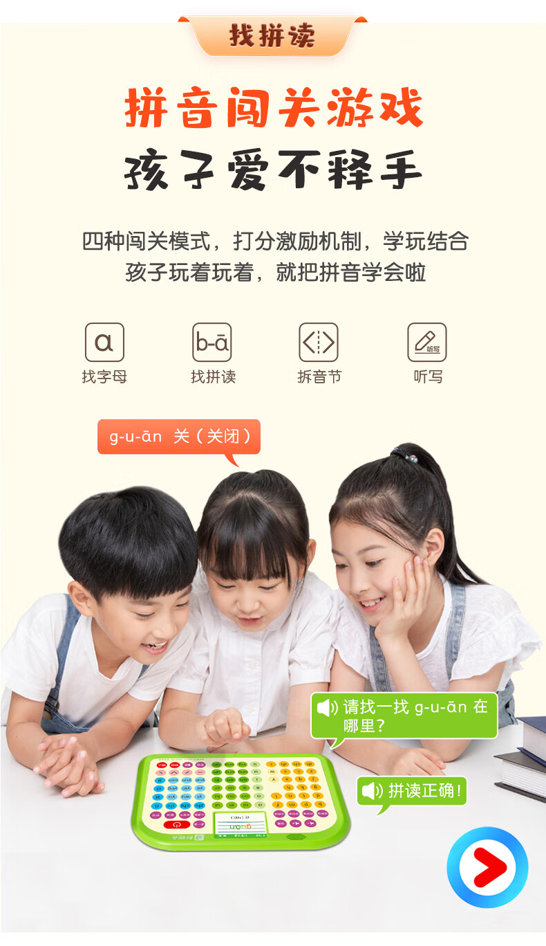 起跑点拼音学习机拼音拼读训练神器幼小衔接一年级同步新教材3-8岁儿童玩具识字早教点读机认读机学练机 【A1】拼音机(认读/拼读/听写)