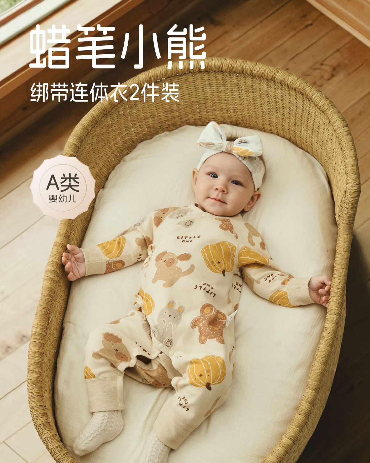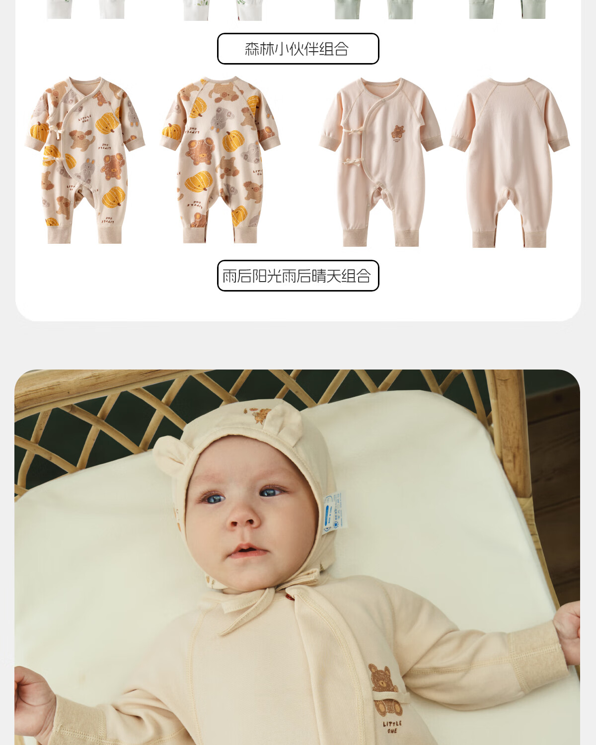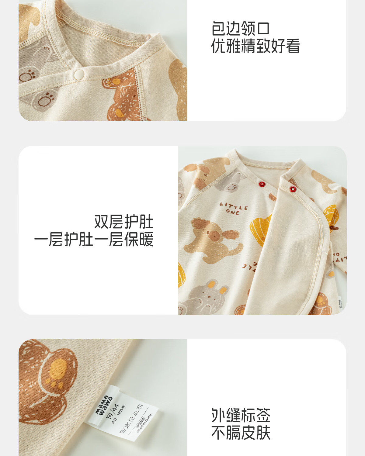 MAMAWAWA【aq.pa爱帕旗下】新生婴儿连体哈衣春秋纯棉衣服宝宝和尚服2件 春之泰迪组合 66cm