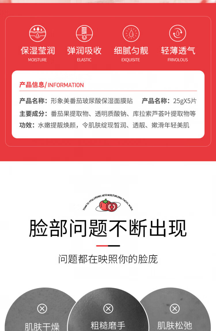 形象美【优选好物】番茄玻尿酸面膜贴片面膜SN0858 25g*3片