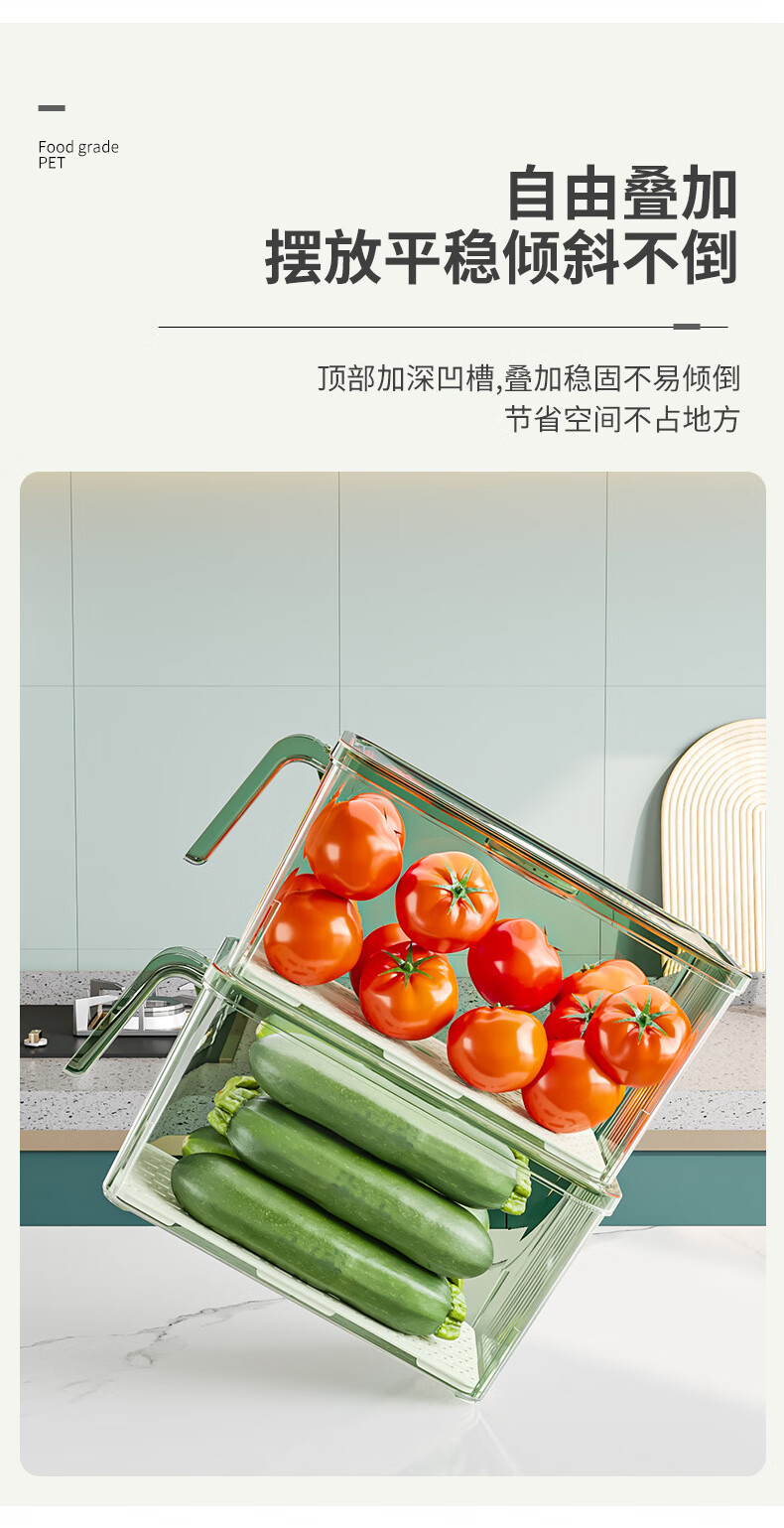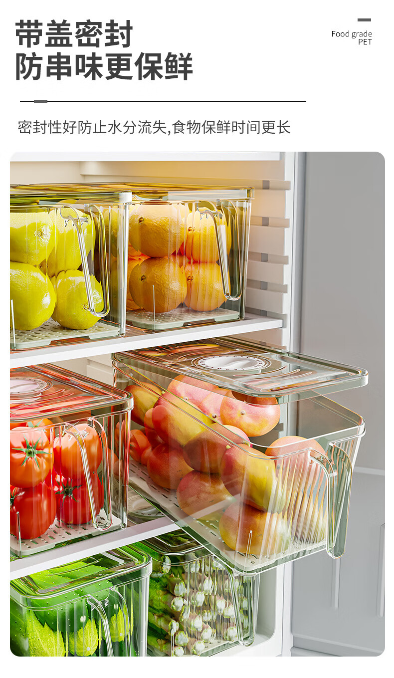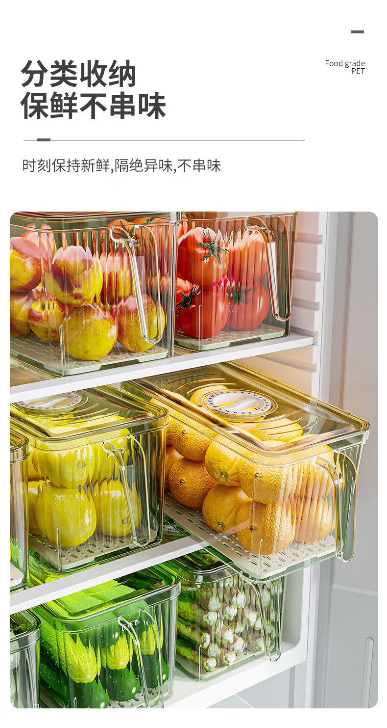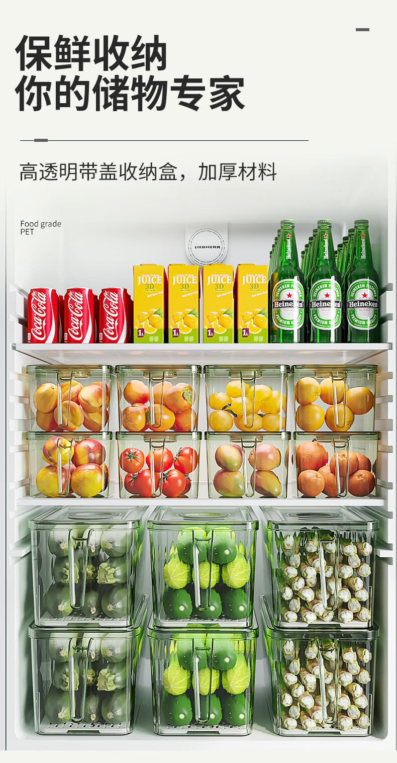 【精选厂家】带把手冰箱收纳盒保鲜盒专用厨房蔬菜鸡蛋冷冻 大号透明