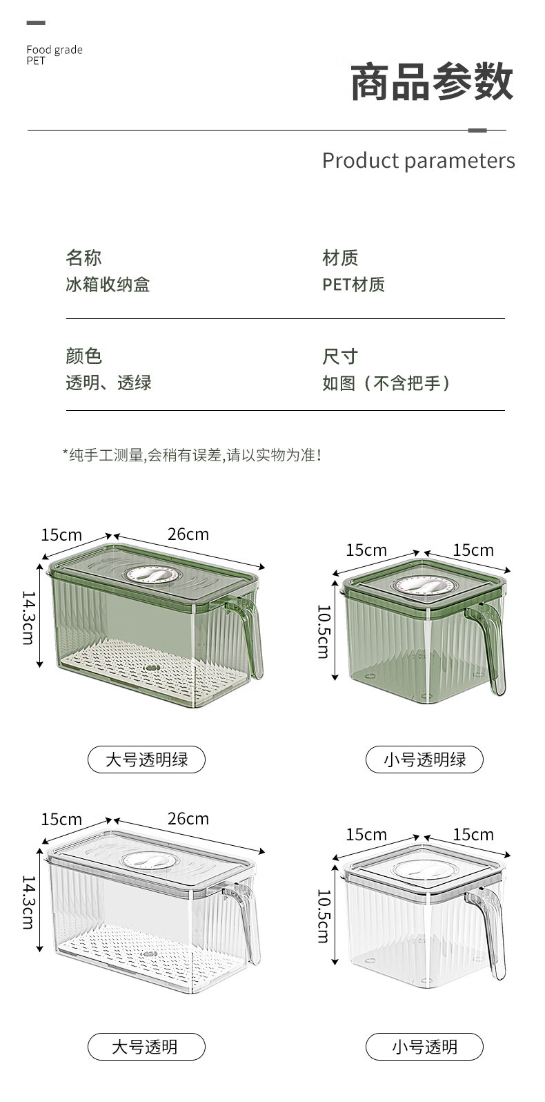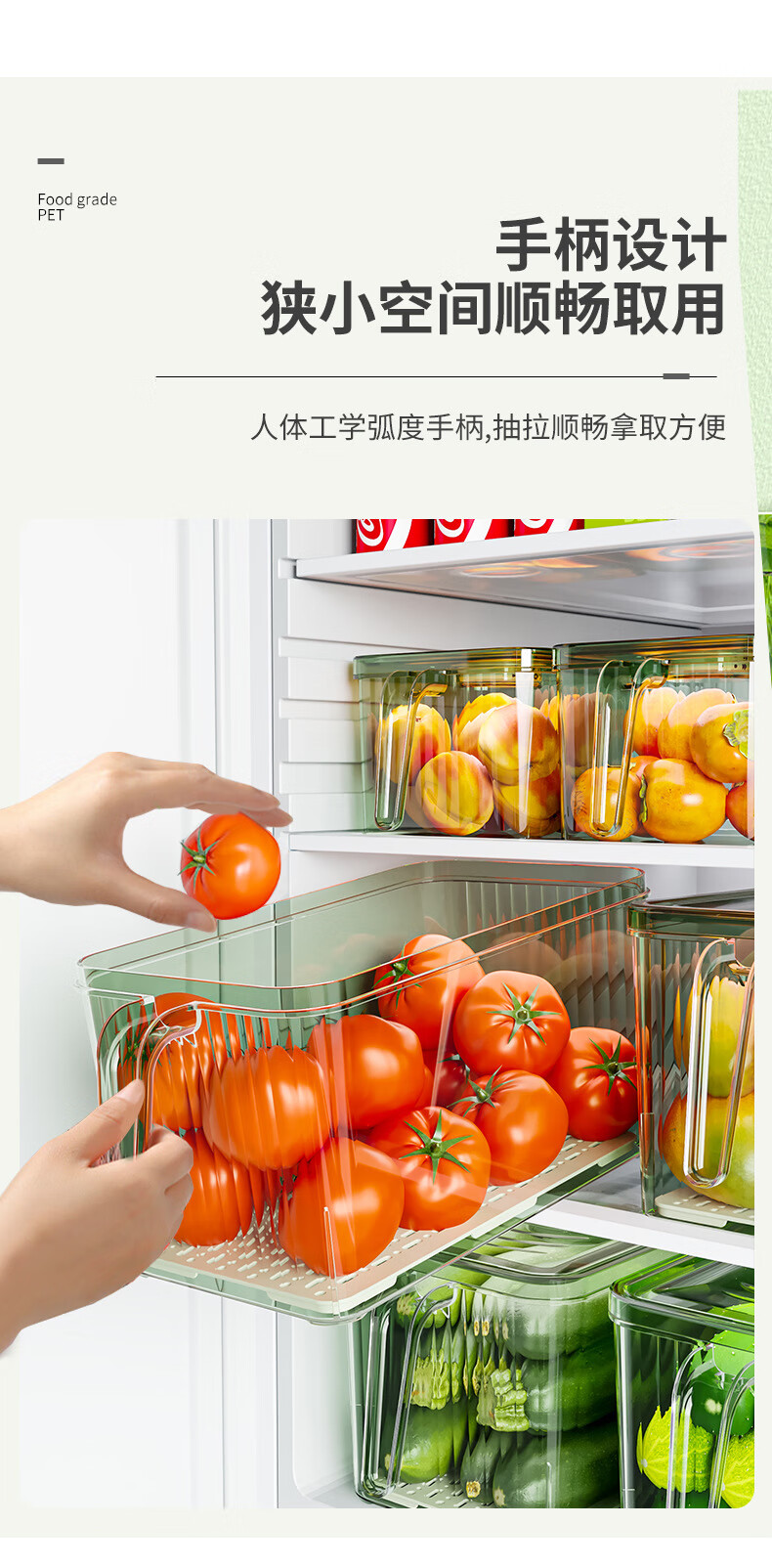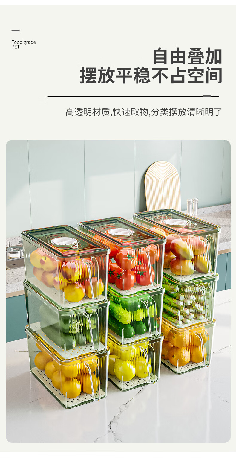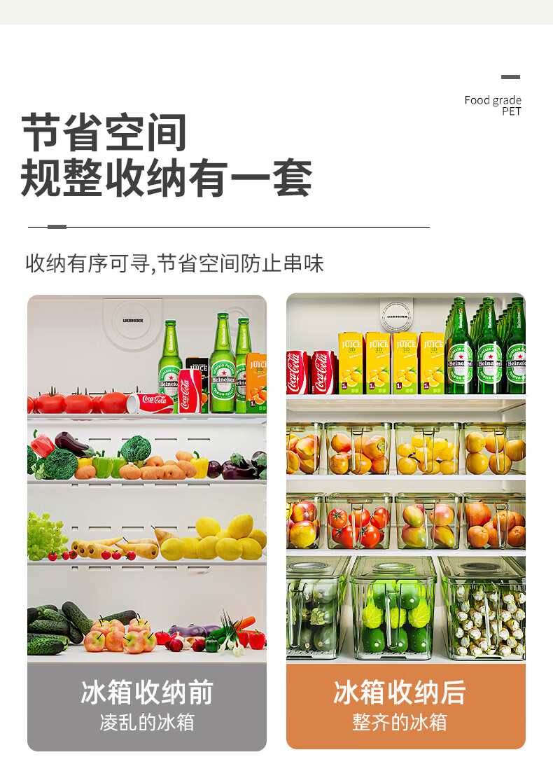 【精选厂家】带把手冰箱收纳盒保鲜盒专用厨房蔬菜鸡蛋冷冻 大号透明