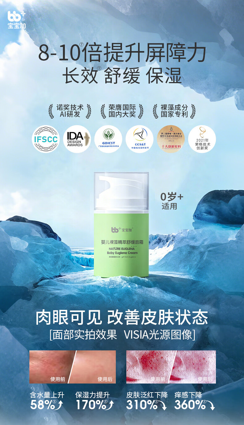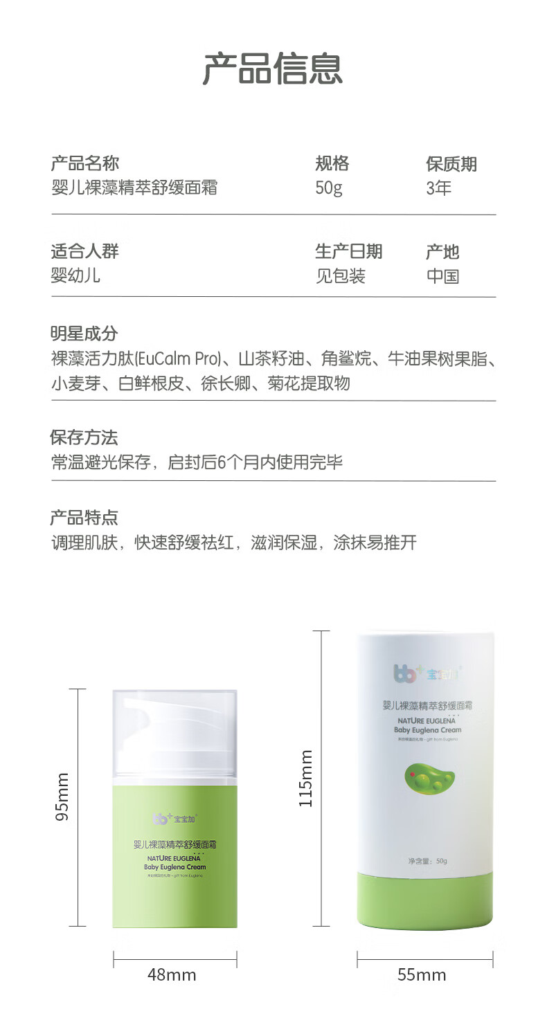 宝宝加婴幼儿高保湿面霜春夏四季儿童滋润保湿裸藻精萃舒缓面霜 【单支装】高保湿面霜50g
